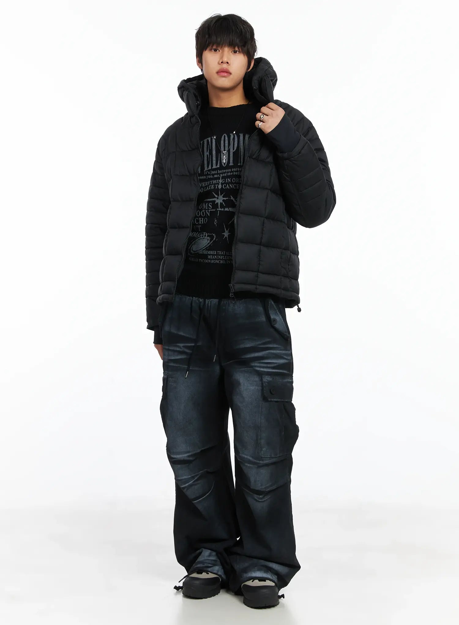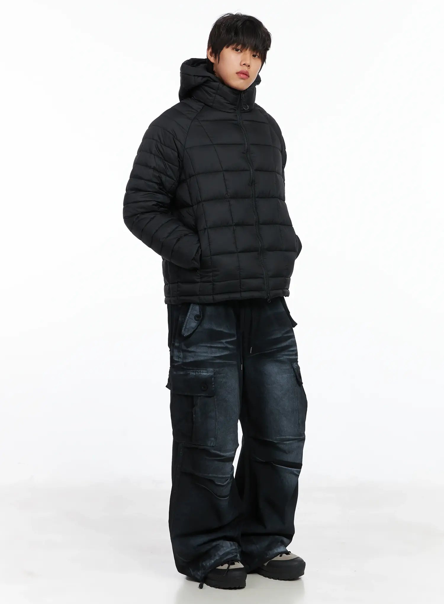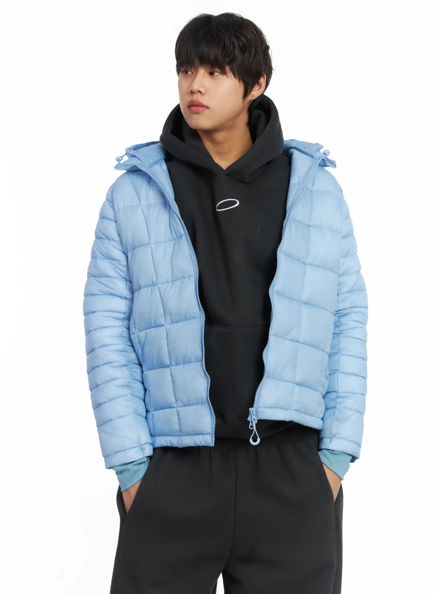 Men's Square Quilted Hooded Puffer Jacket IJ512