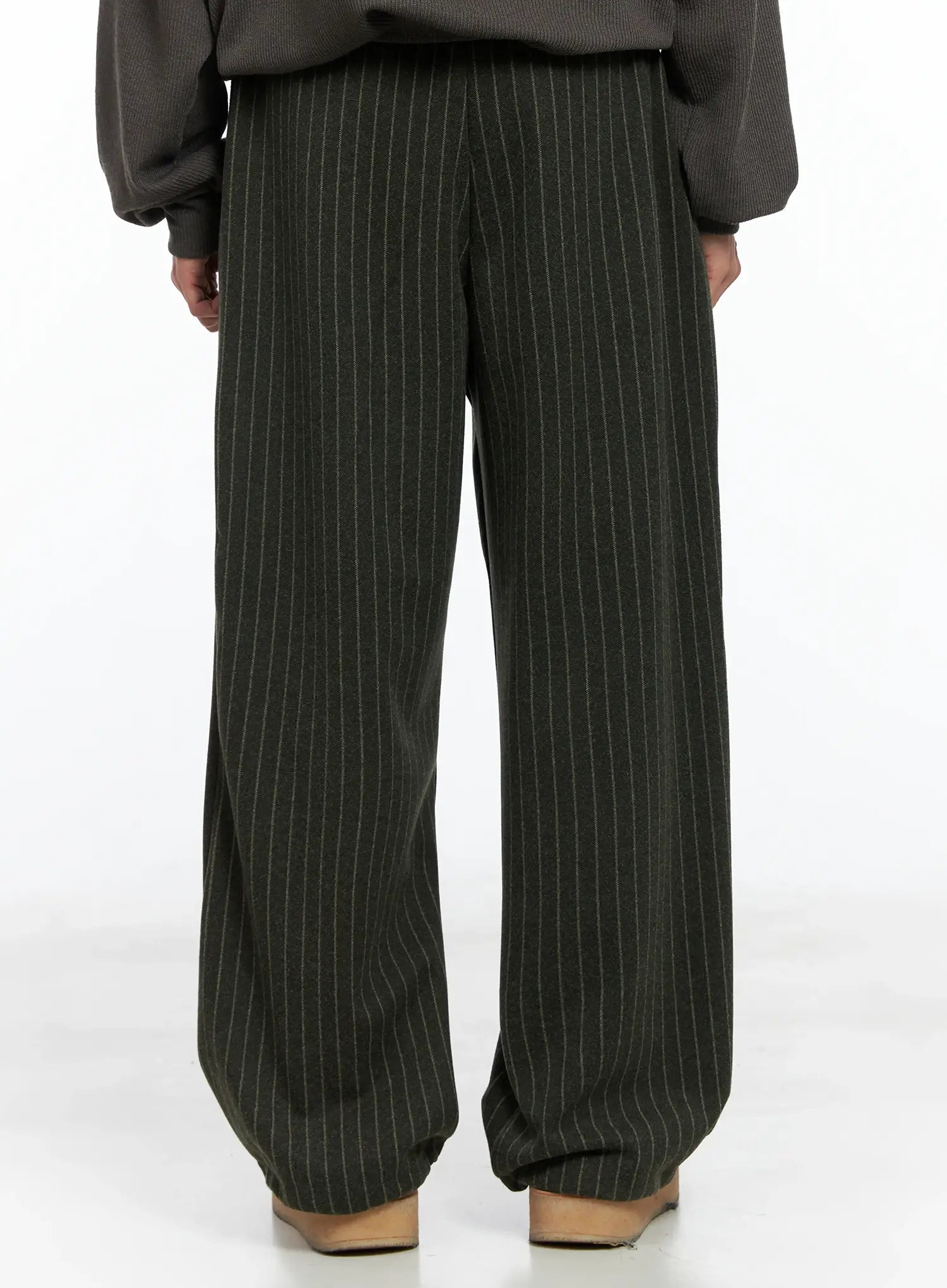 Men's Stripe Wide Leg Pants (Dark Green) IN518