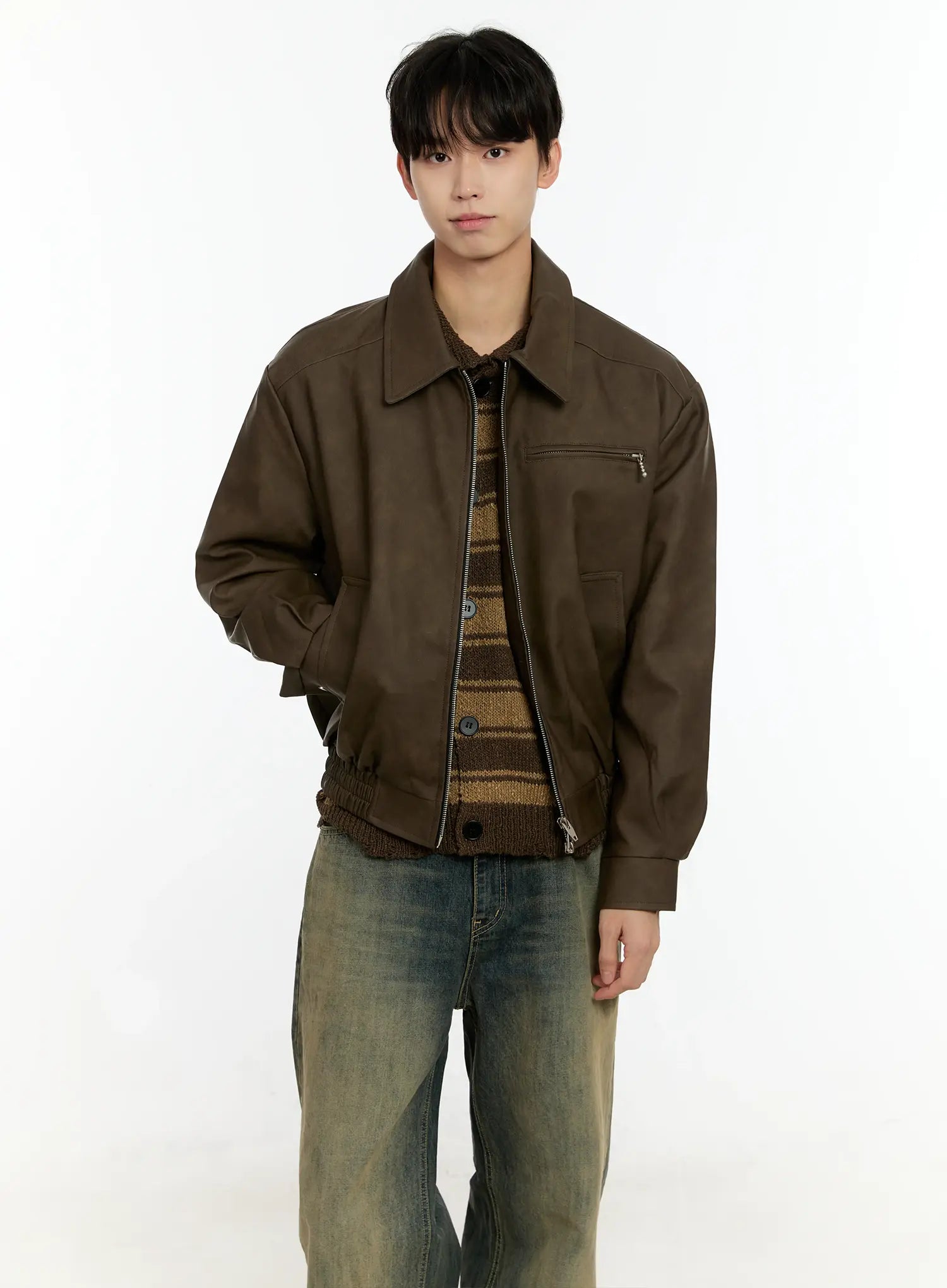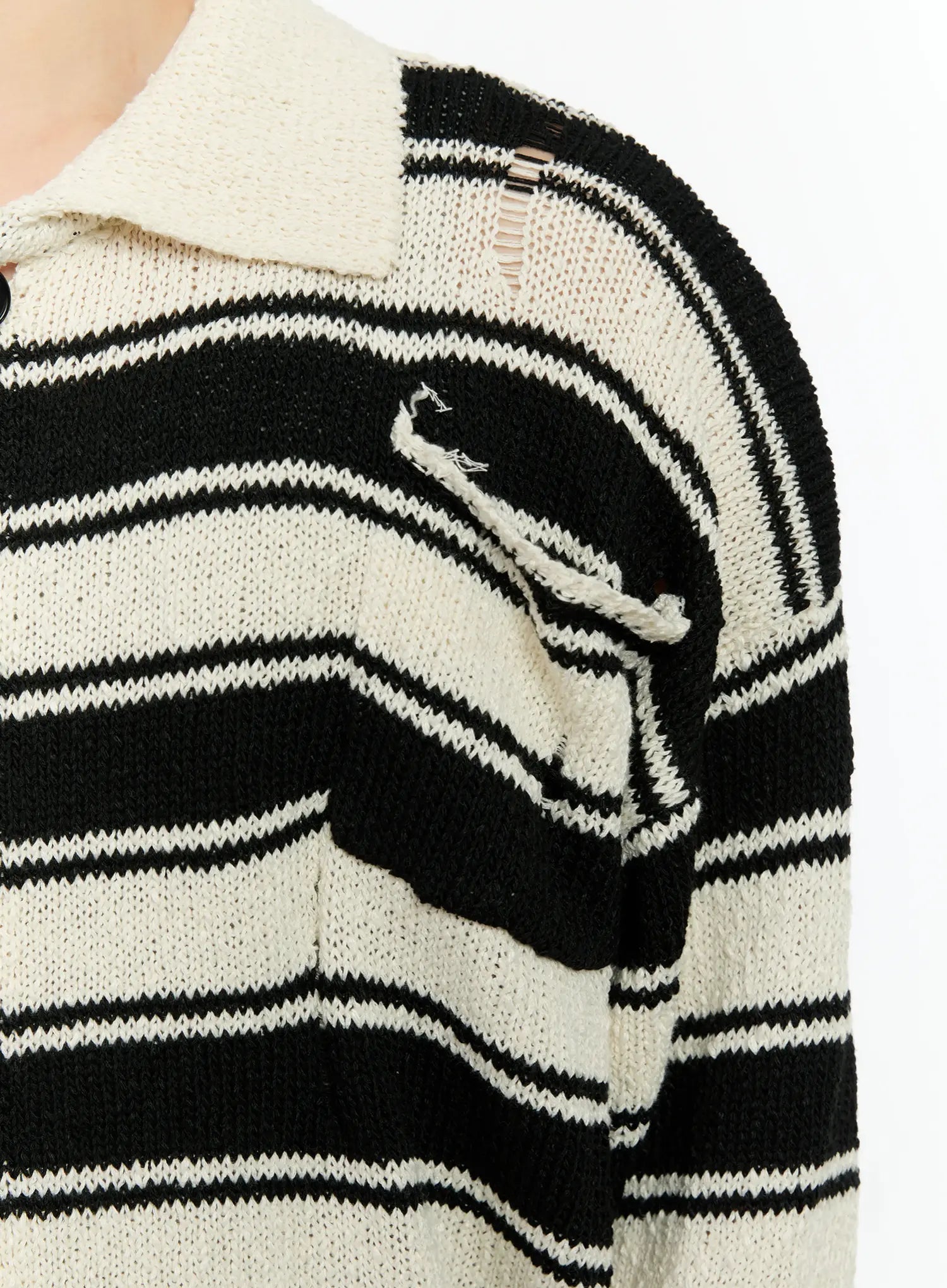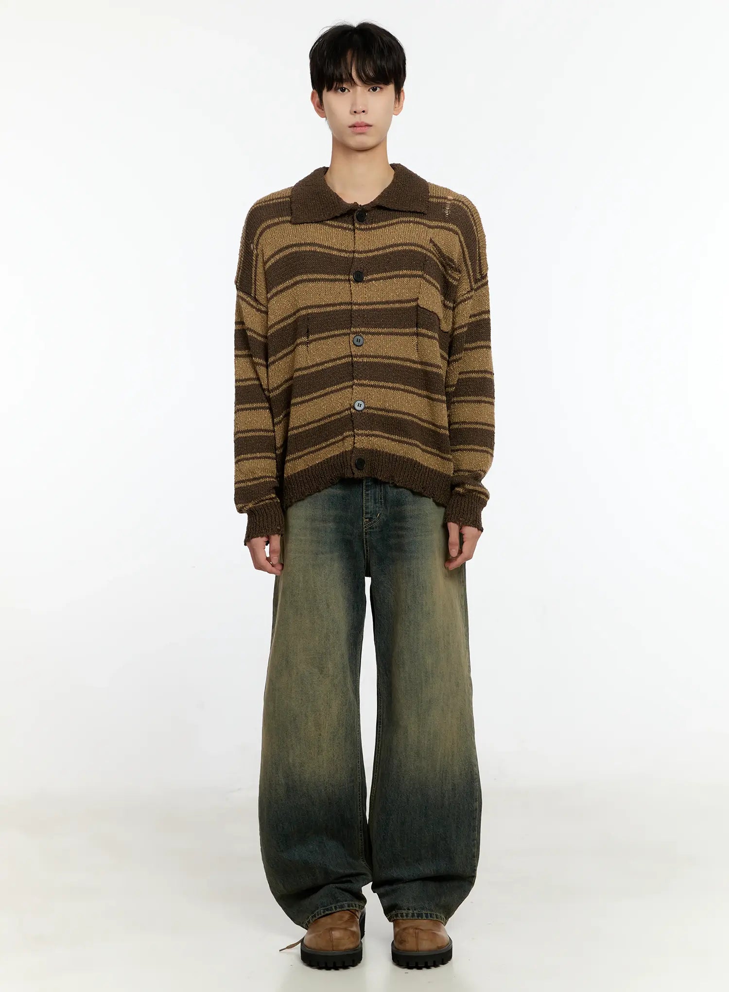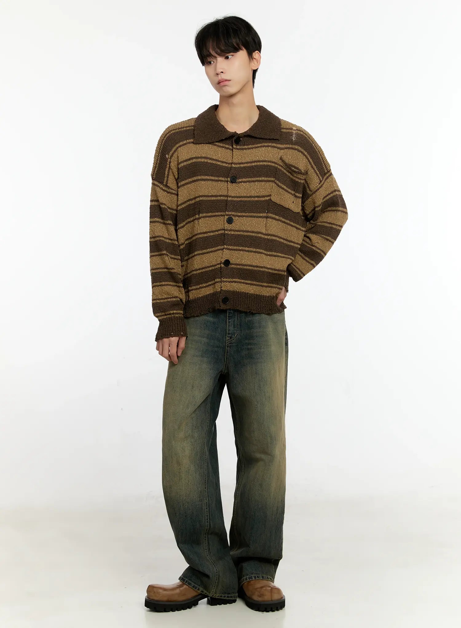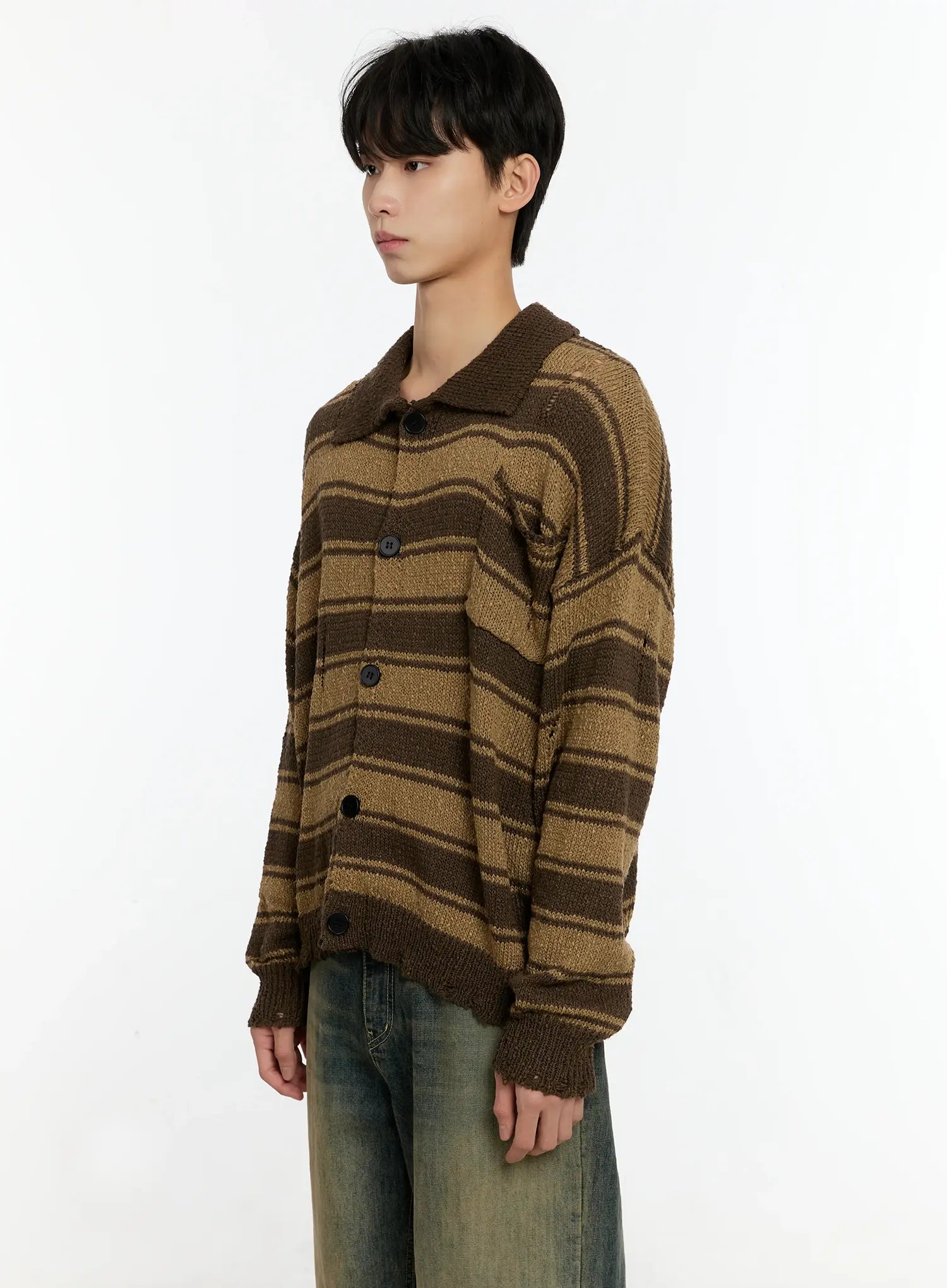 Men's Striped Distressed Collared Cardigan IN503