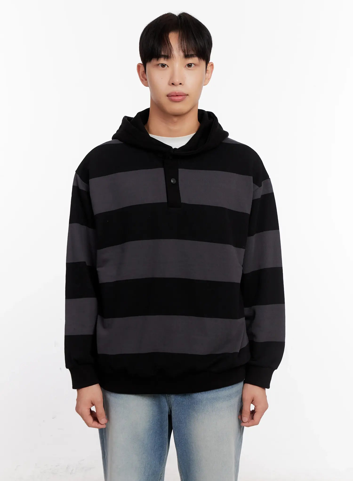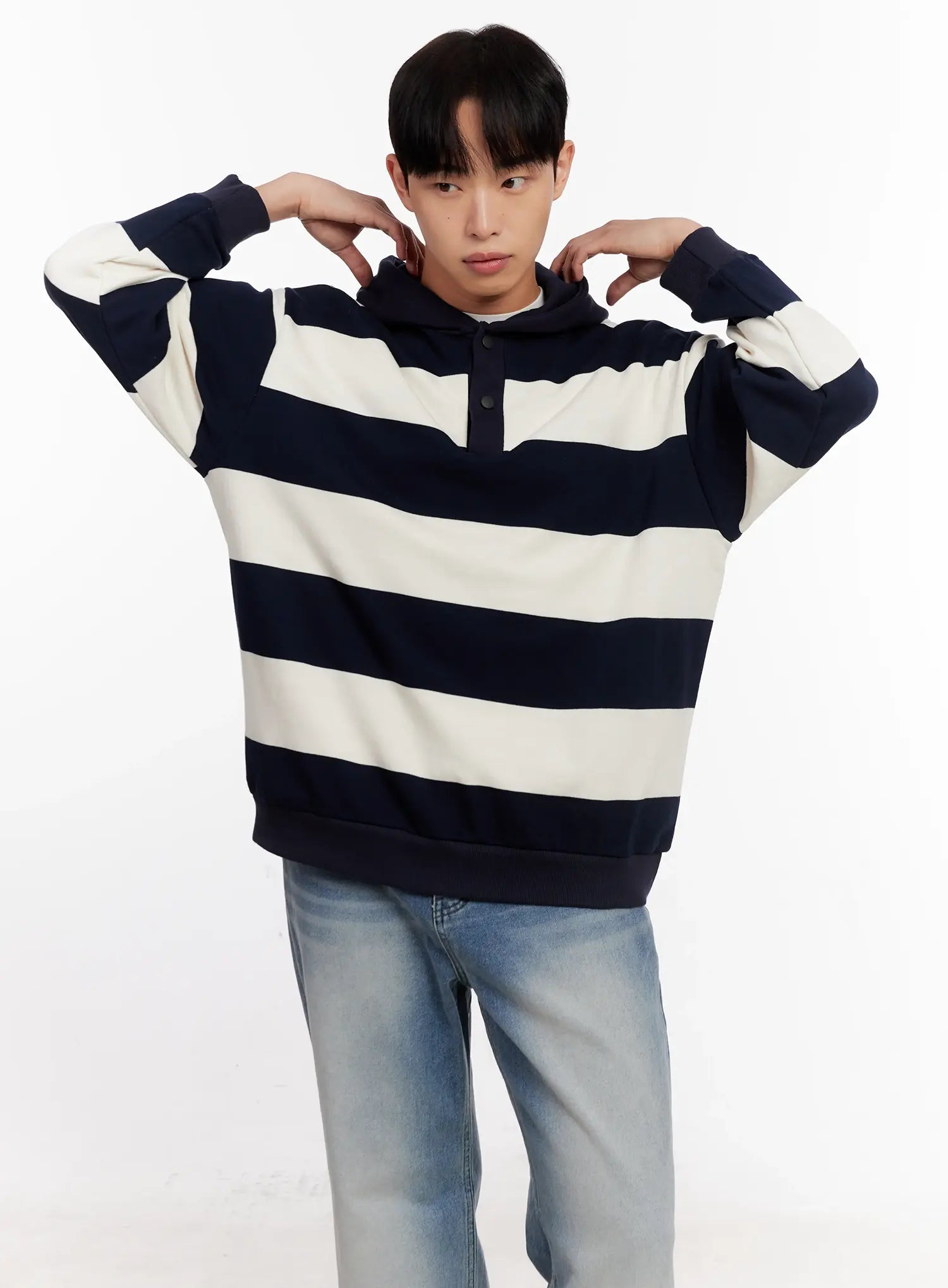 Men's Striped Rugby Hoodie IO523