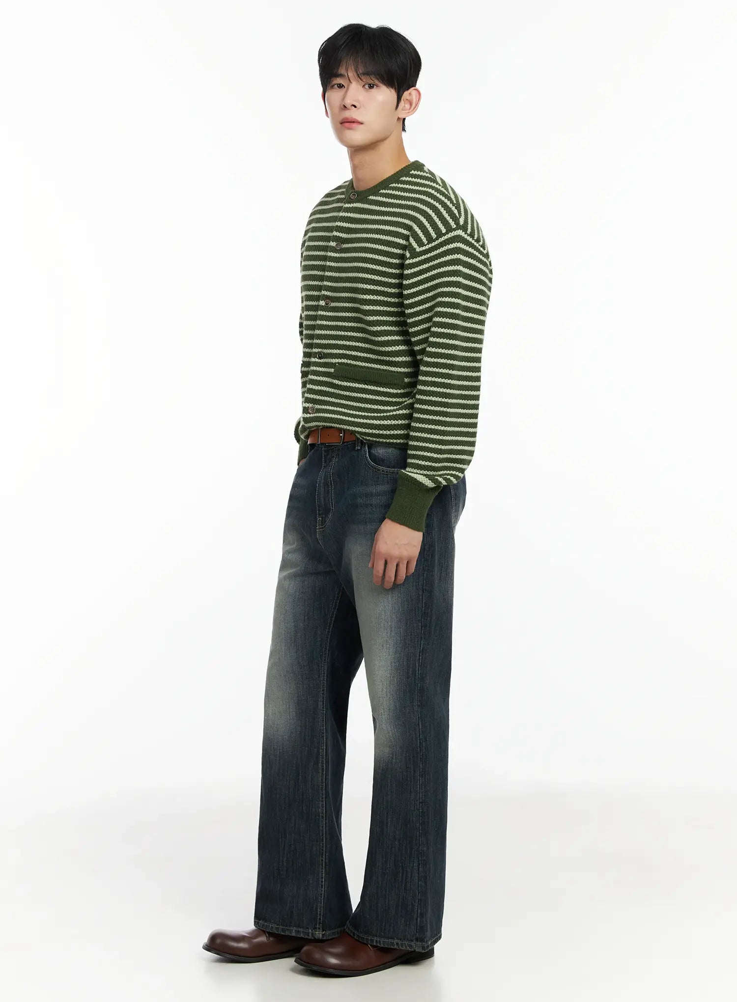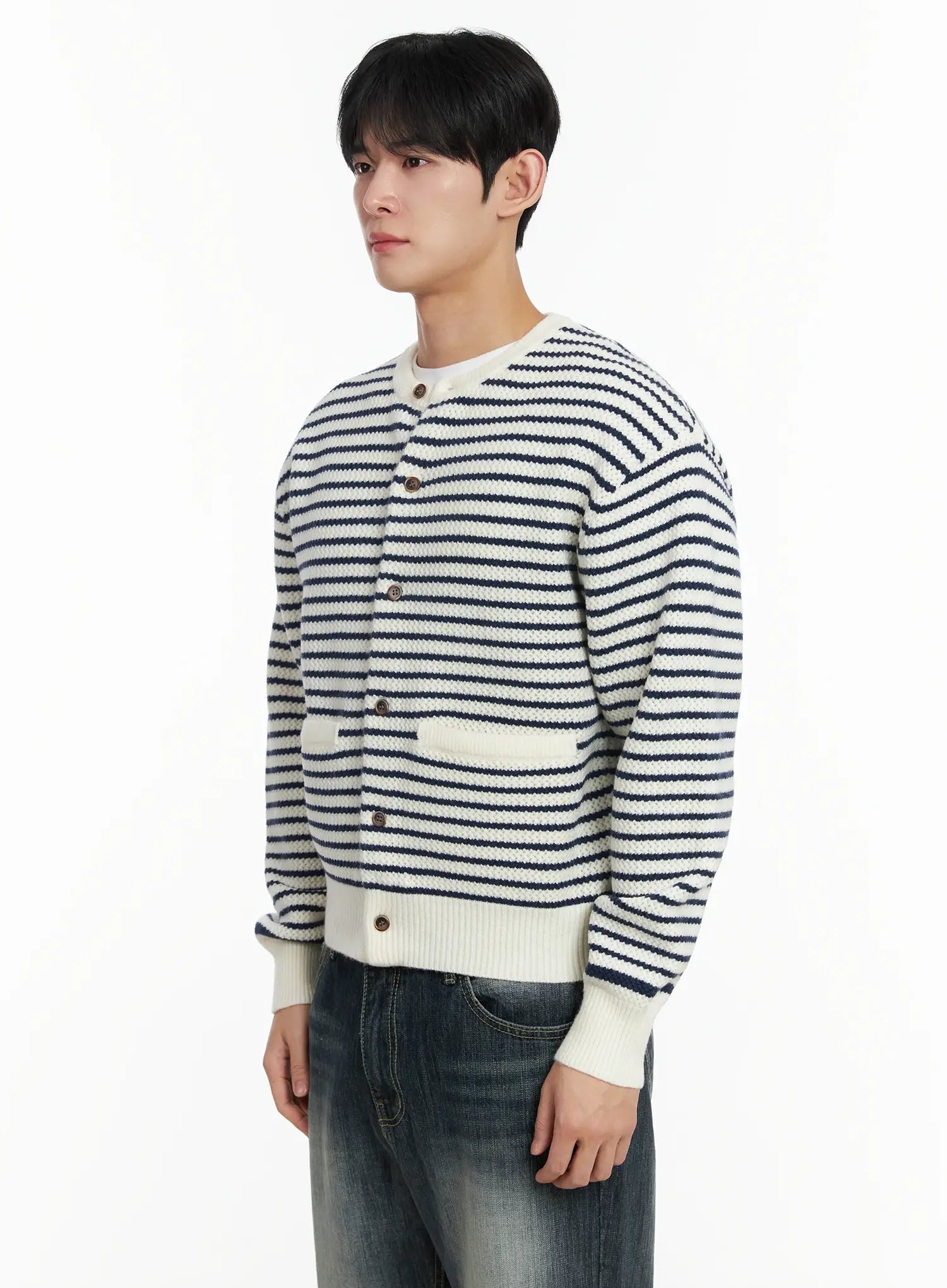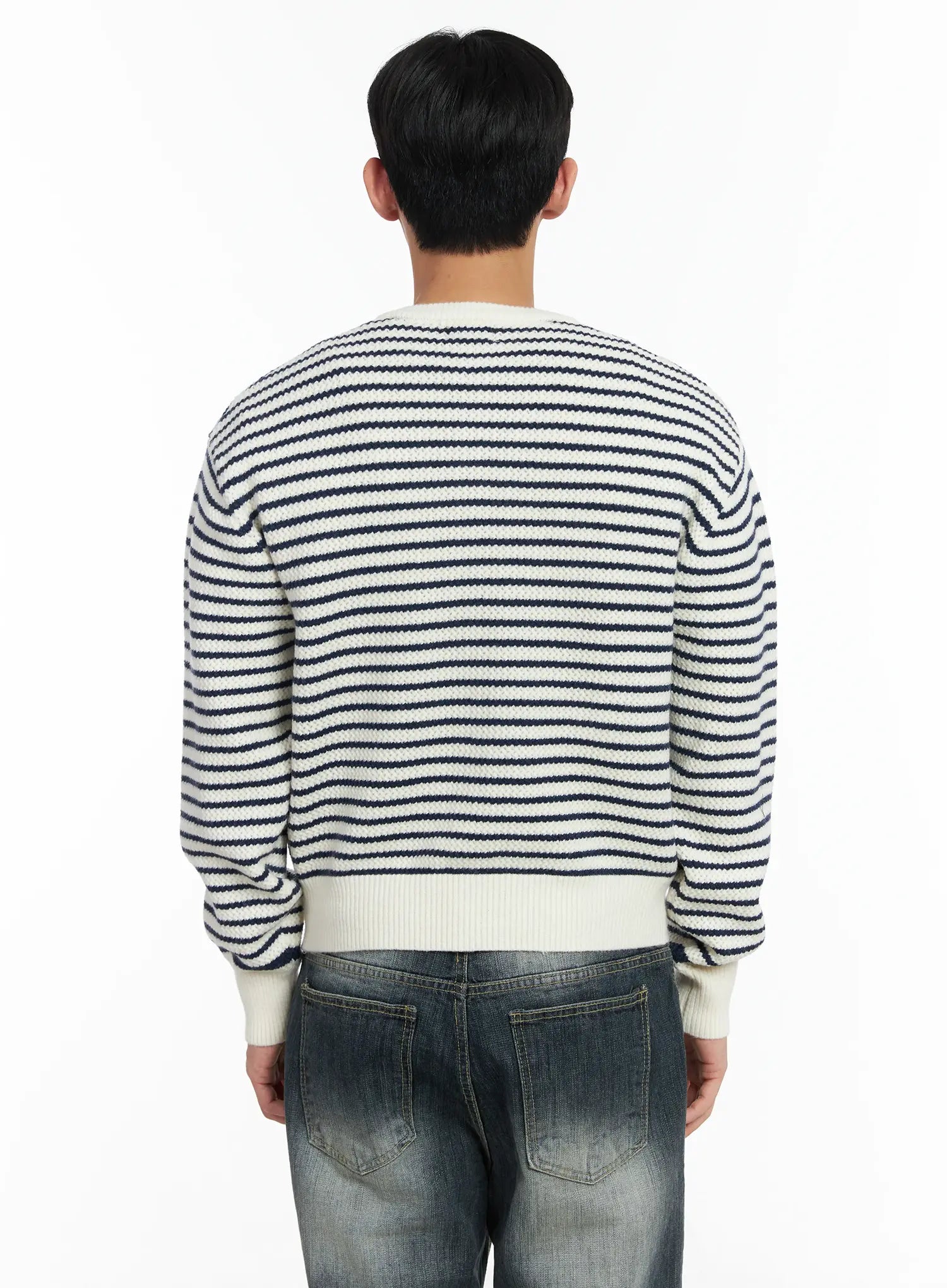 Men's Striped Waffle Knit Cardigan IF517