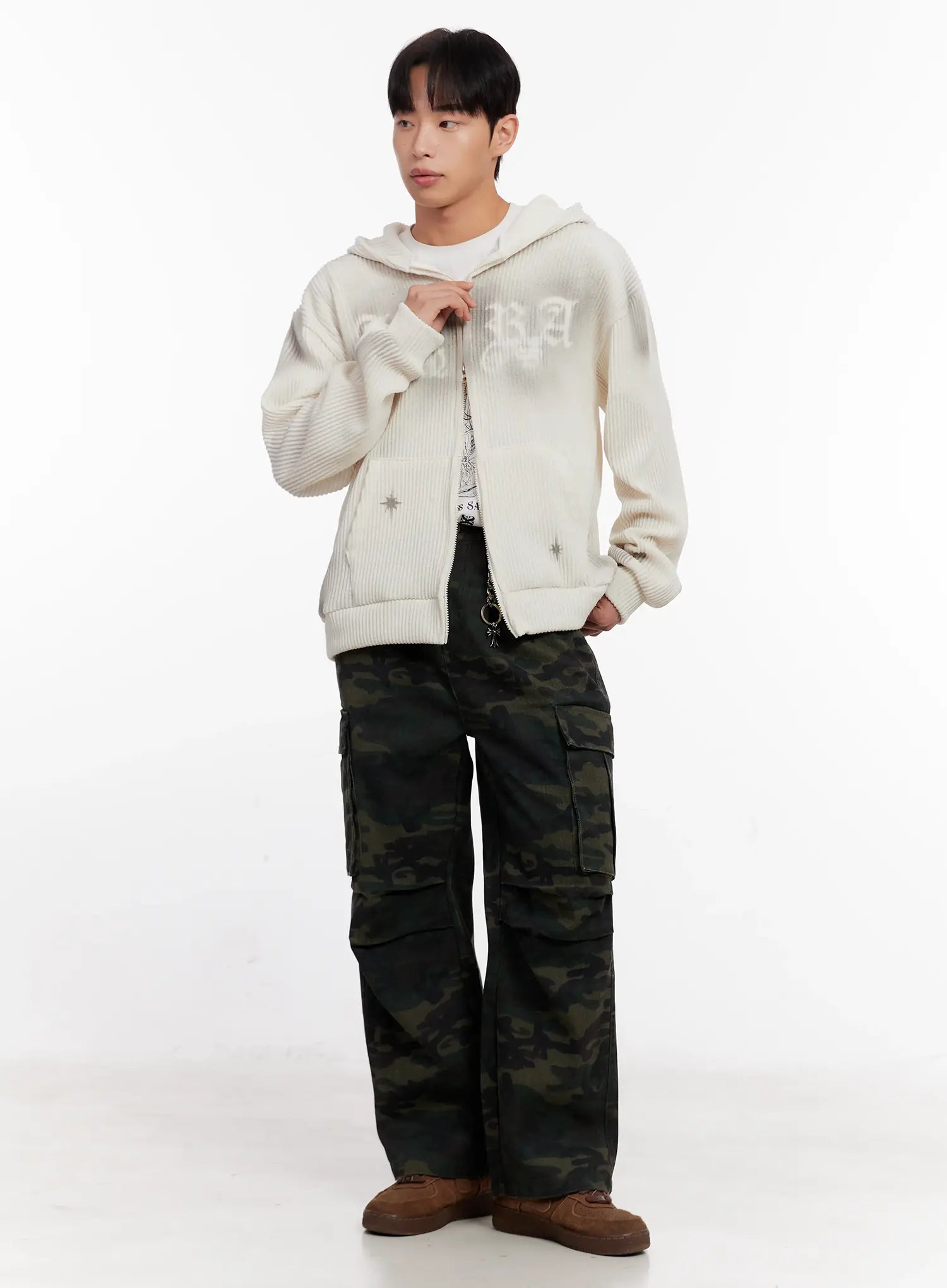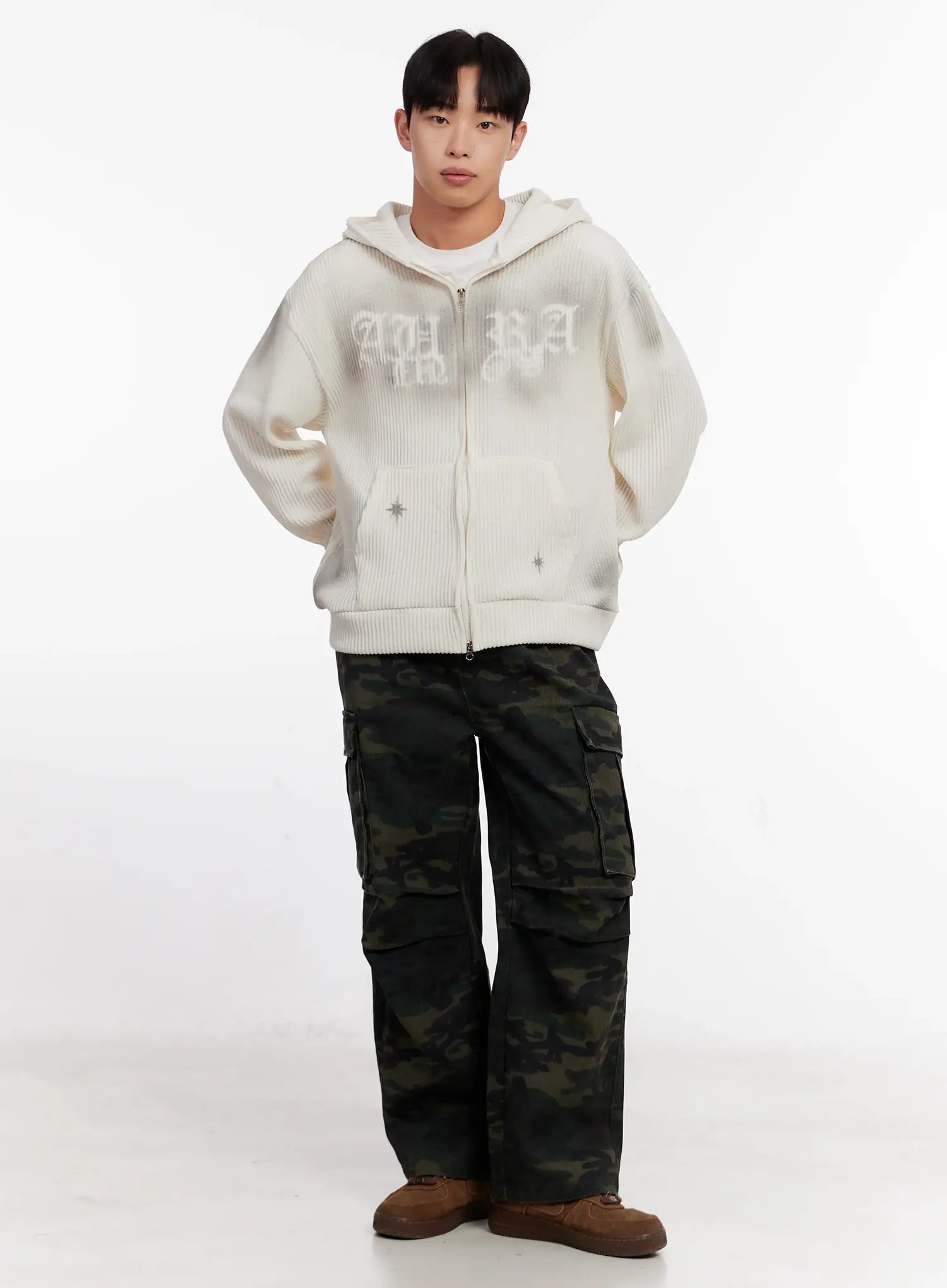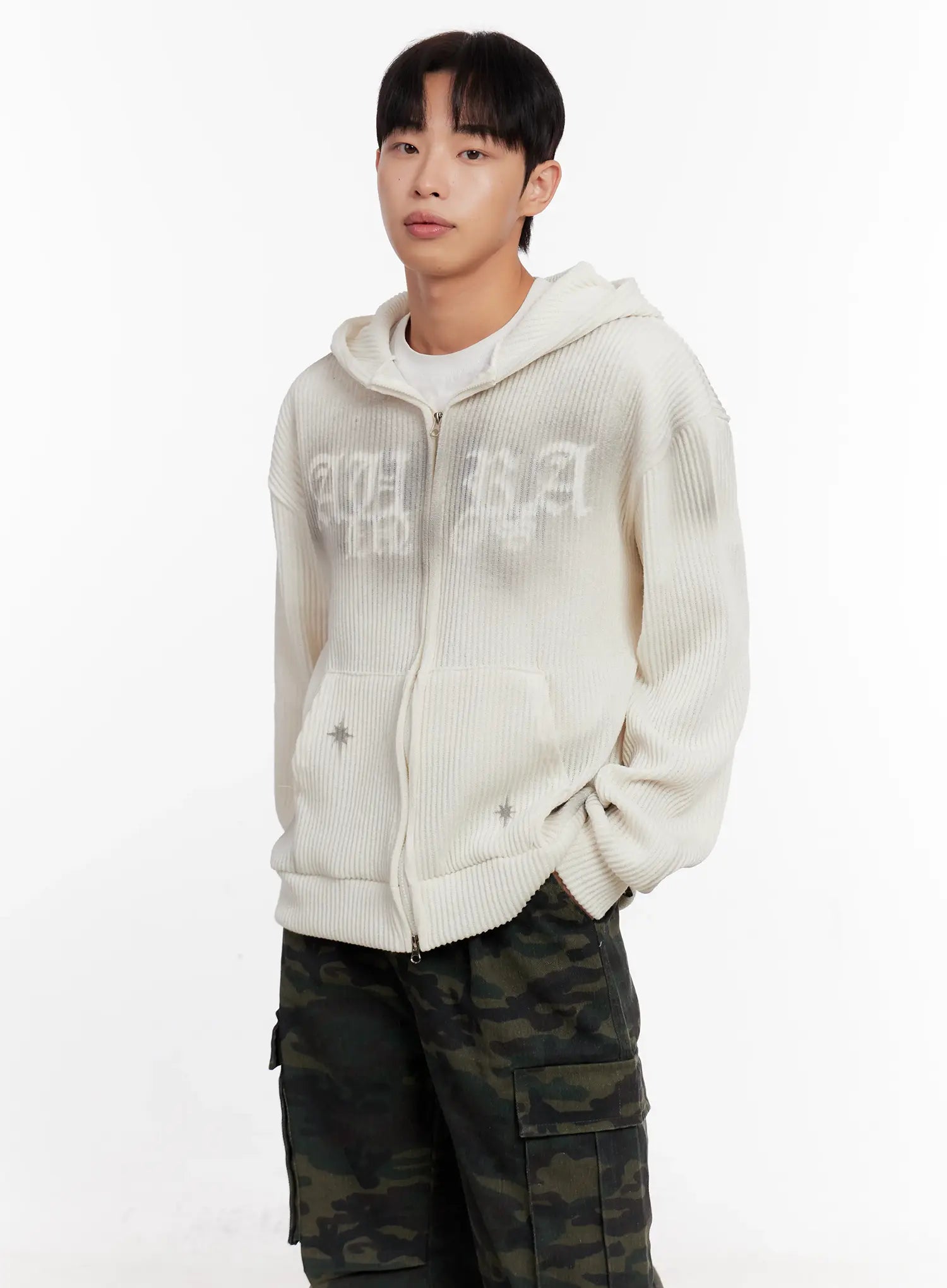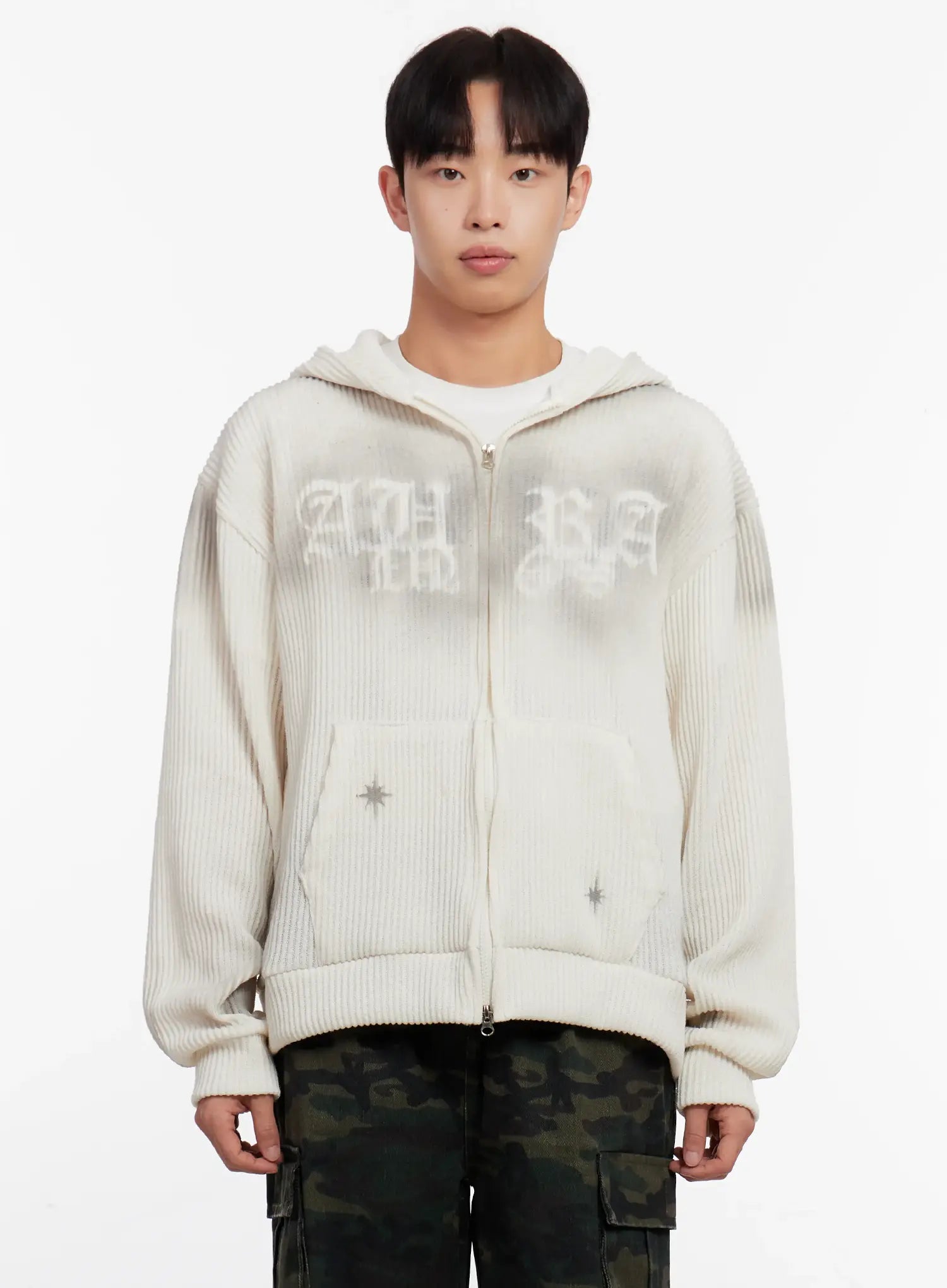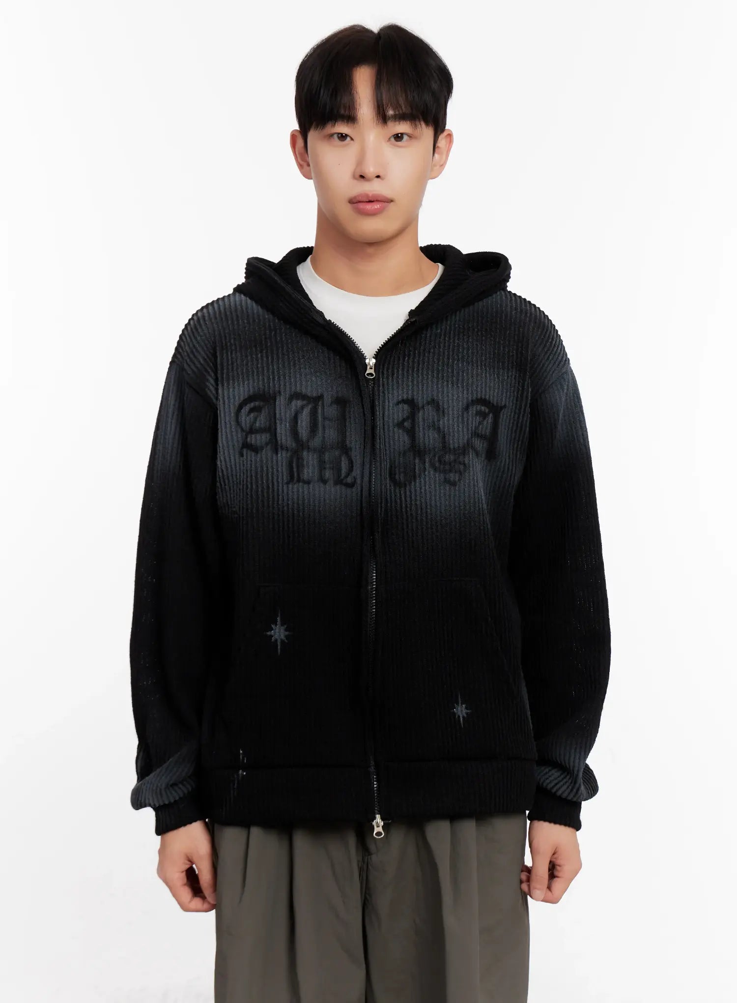 Men's Two-Way Ribbed Zip-Up Hoodie IO523