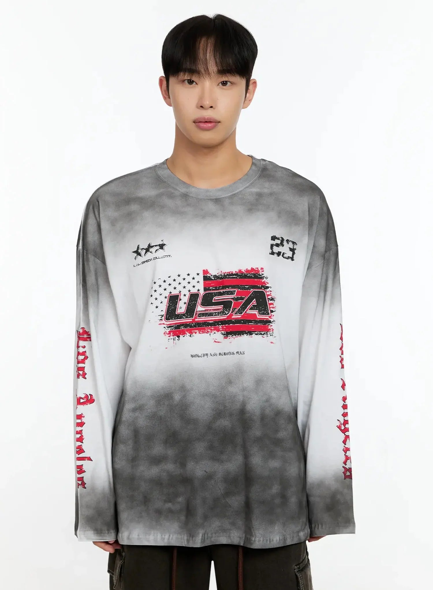 Men's Vintage Graphic Gradient Long Sleeve Tee IN525