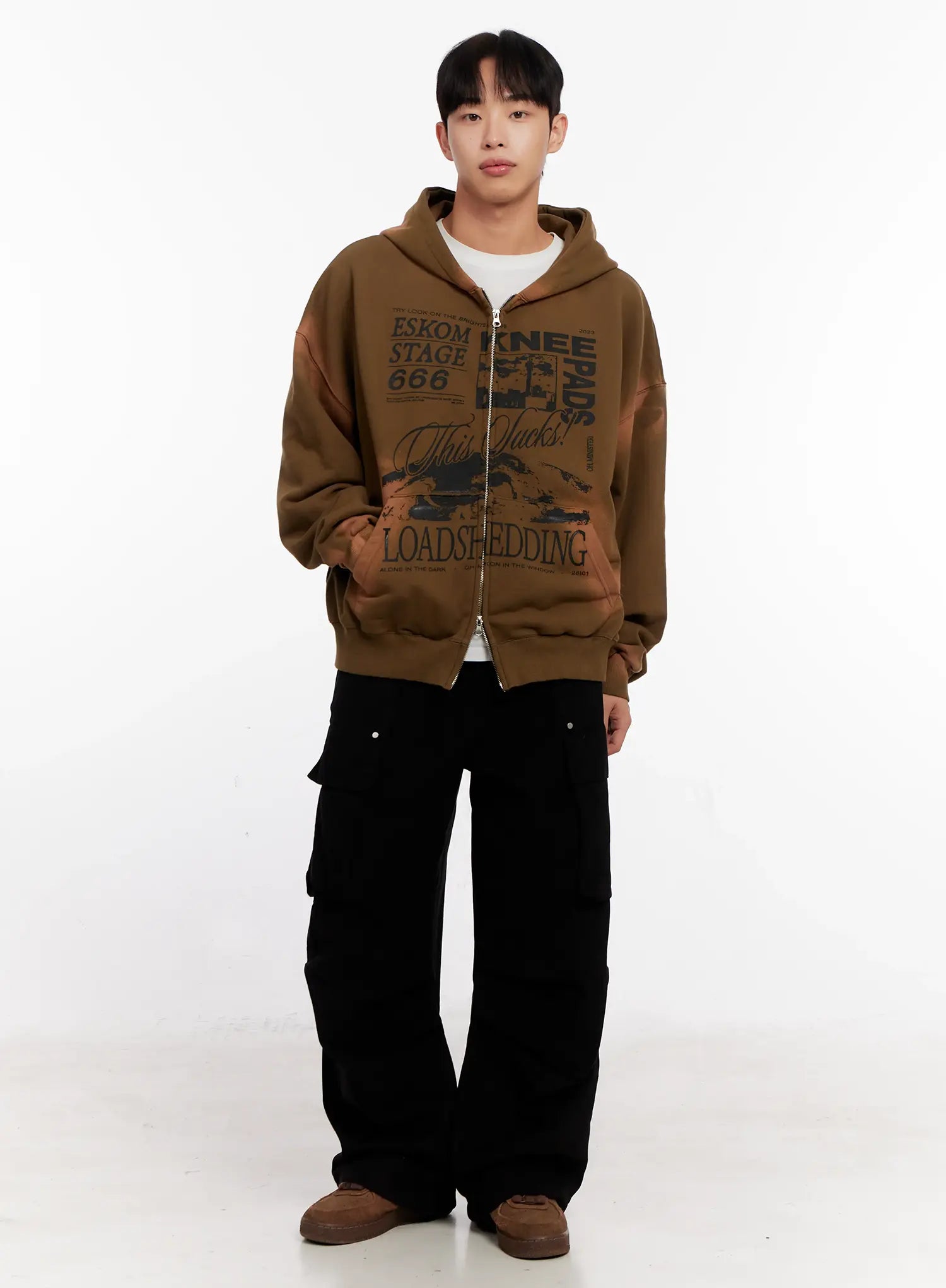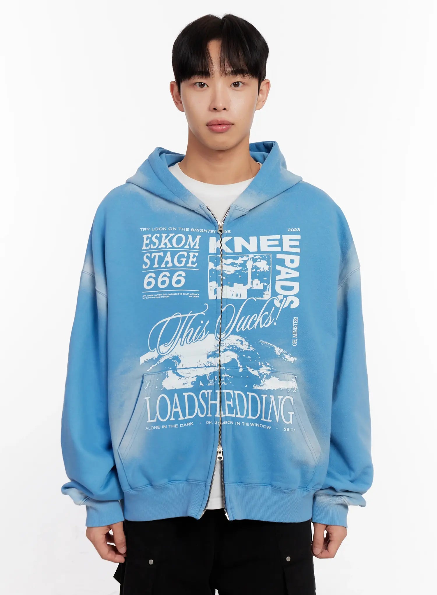 Men's Vintage Wash Graphic Zip-Up Hoodie IO523