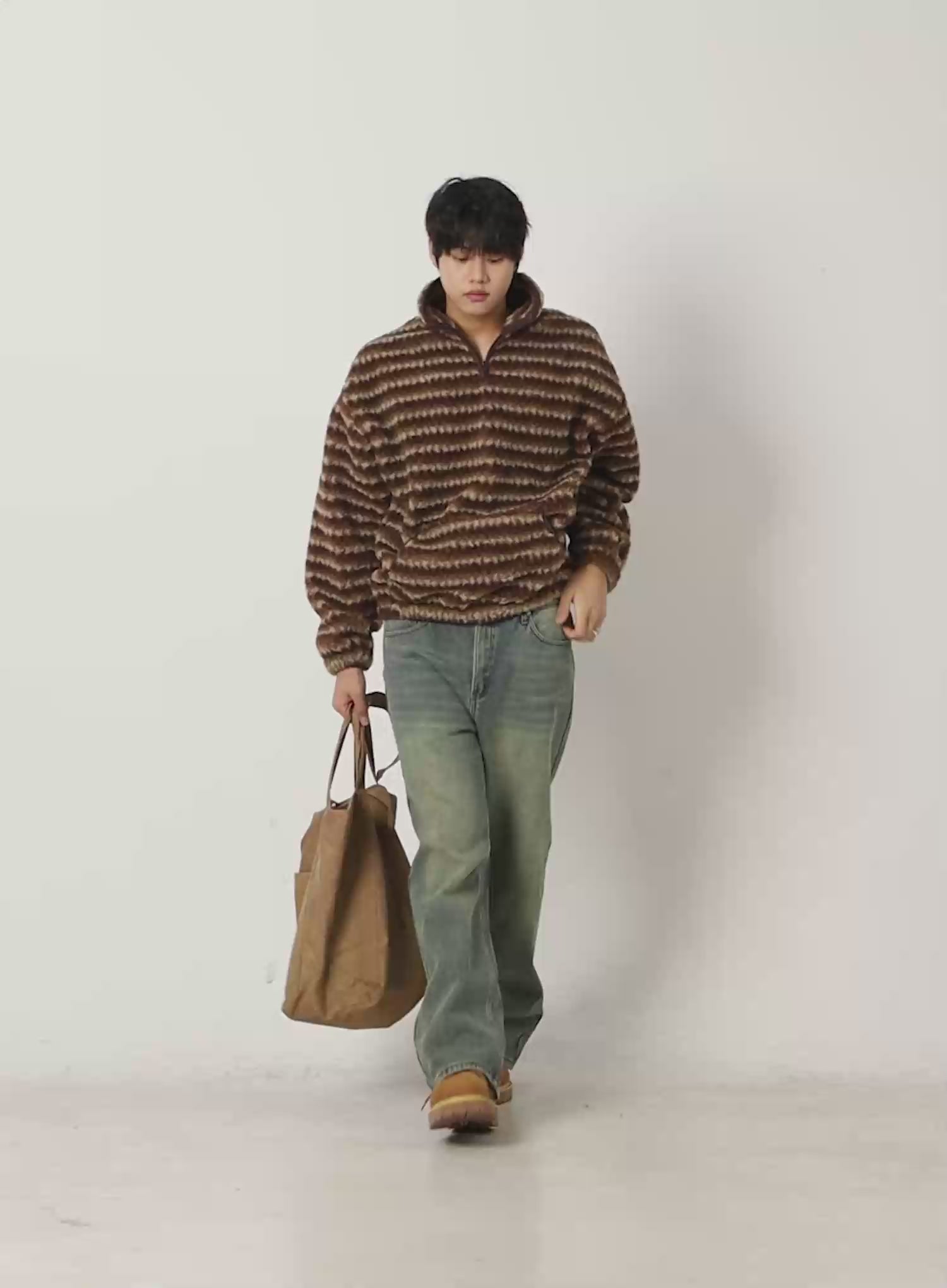 Men's Warm Fleece Striped Quarter Zip-Up IJ512