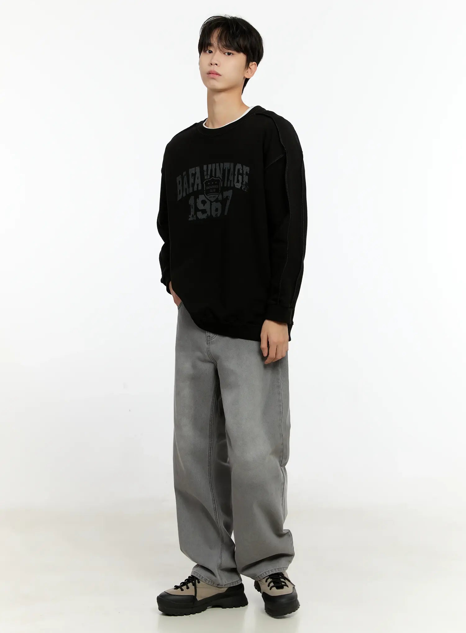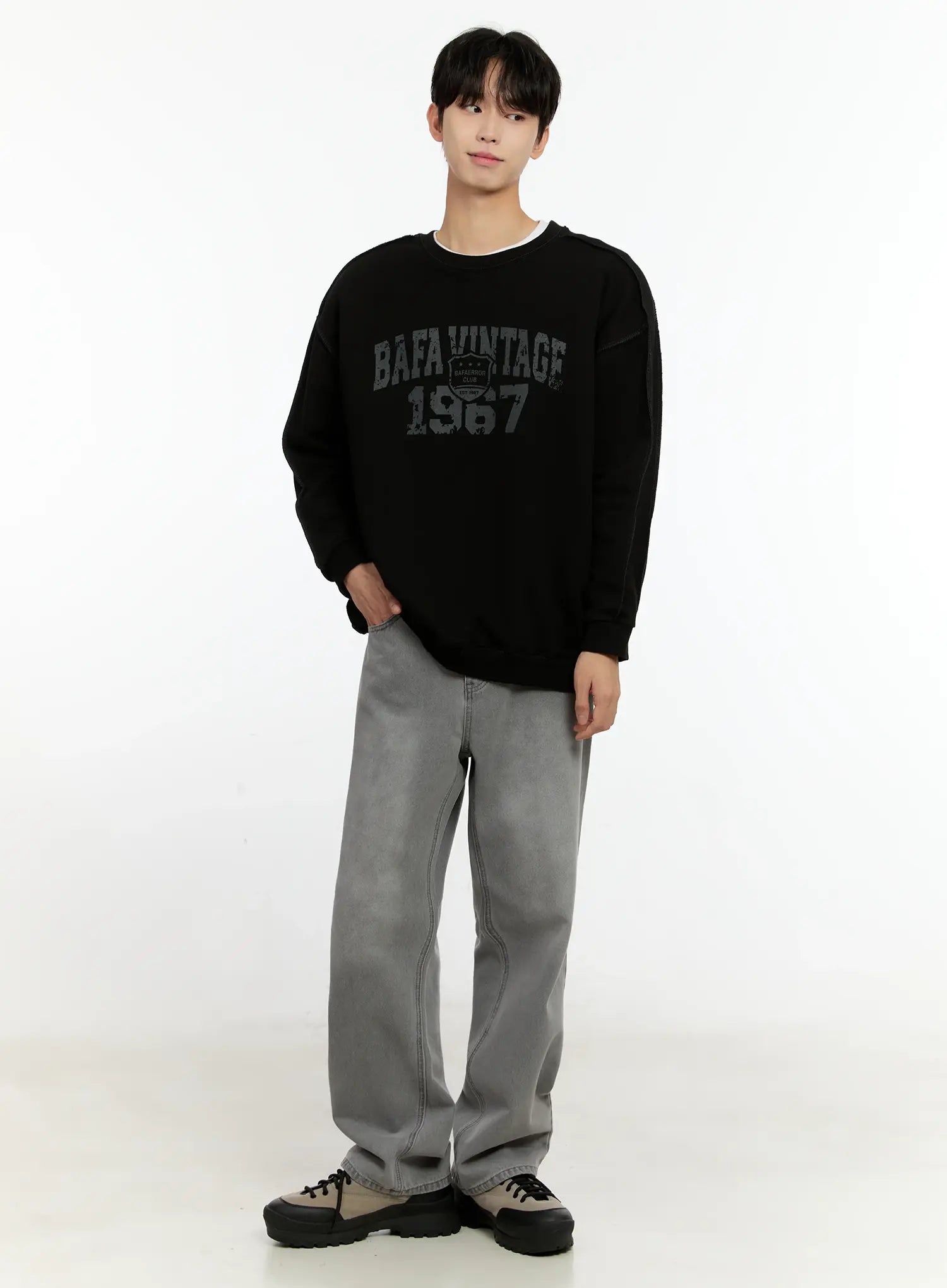Men's Wide-Leg Denim Jeans (Gray) IO531