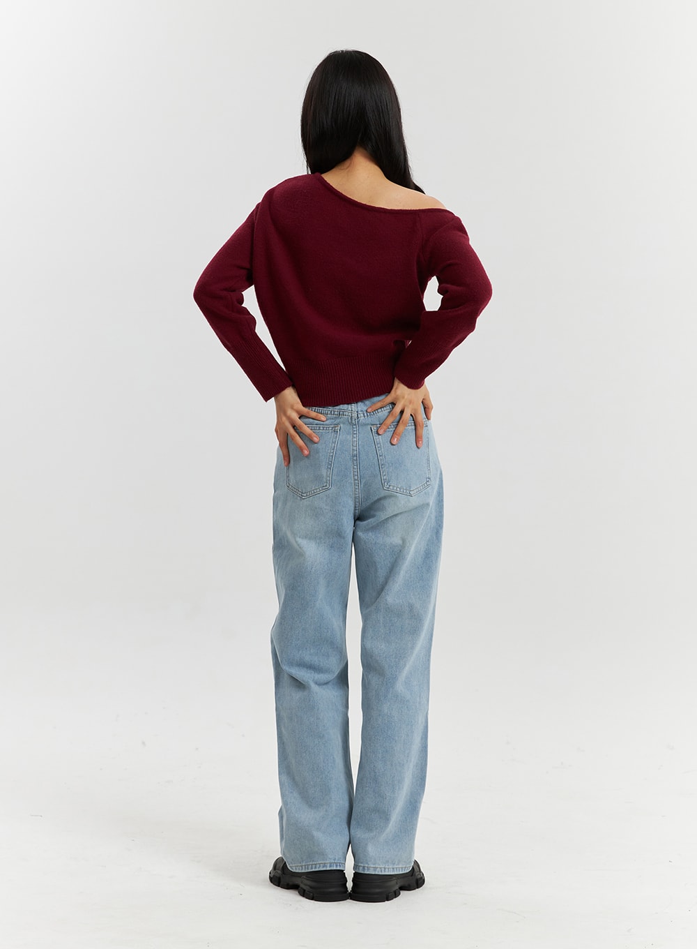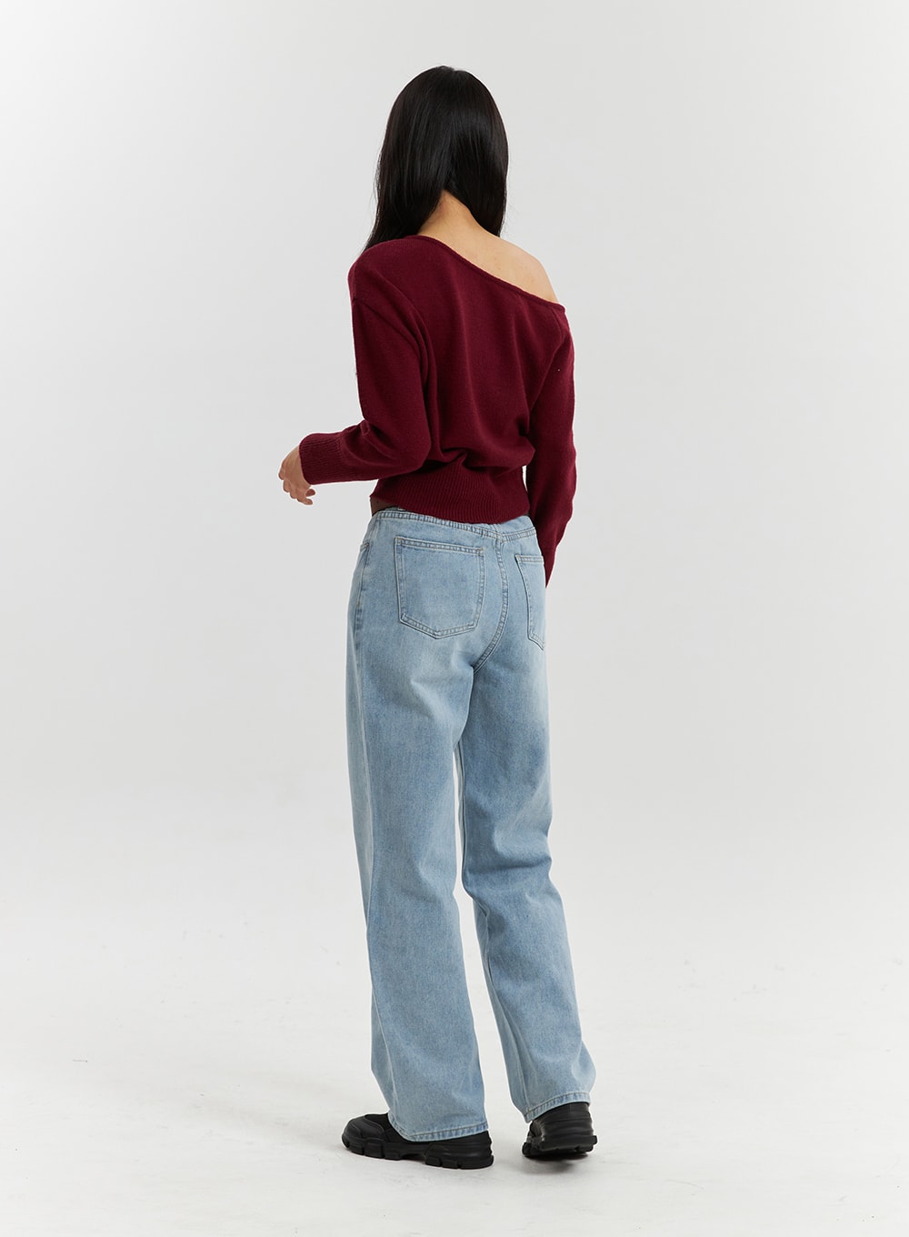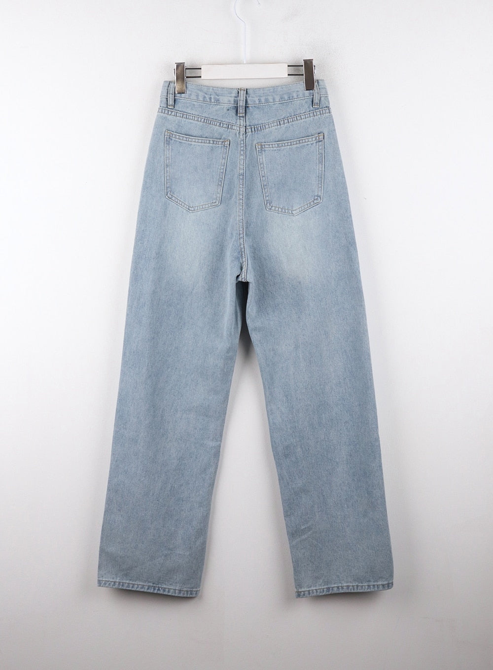 Mid-Waist Light Washed Button Wide Leg Jeans OD320