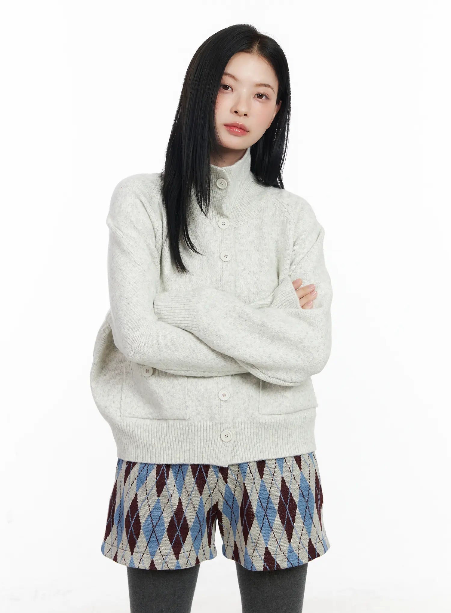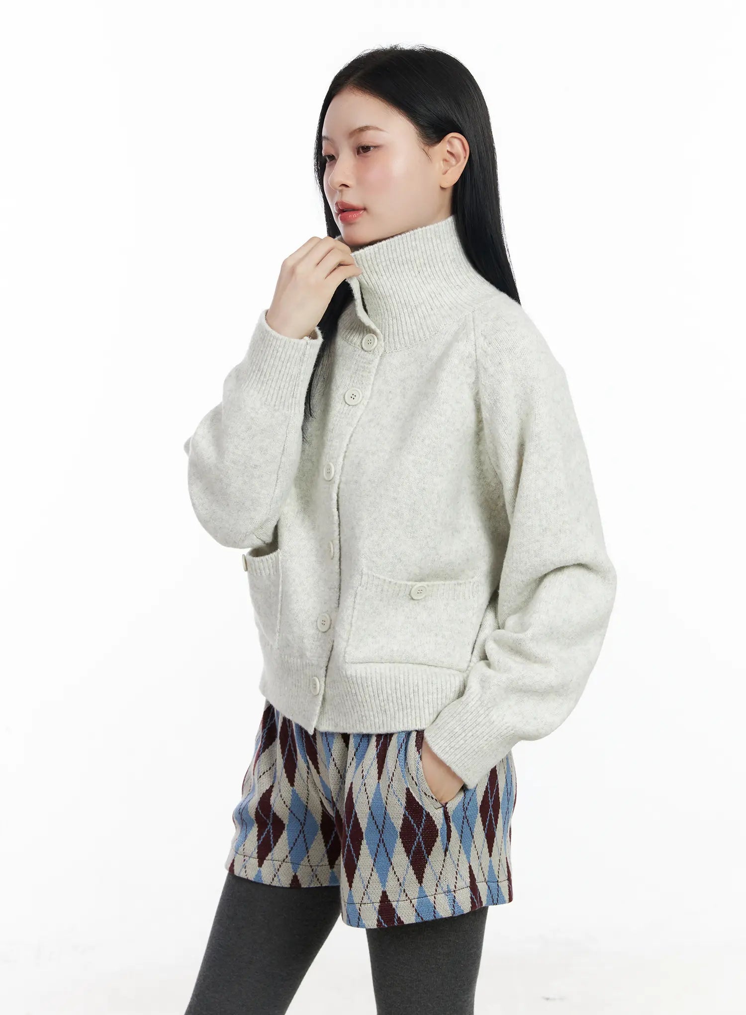 Mock Neck Buttoned Knit Cardigan CJ520