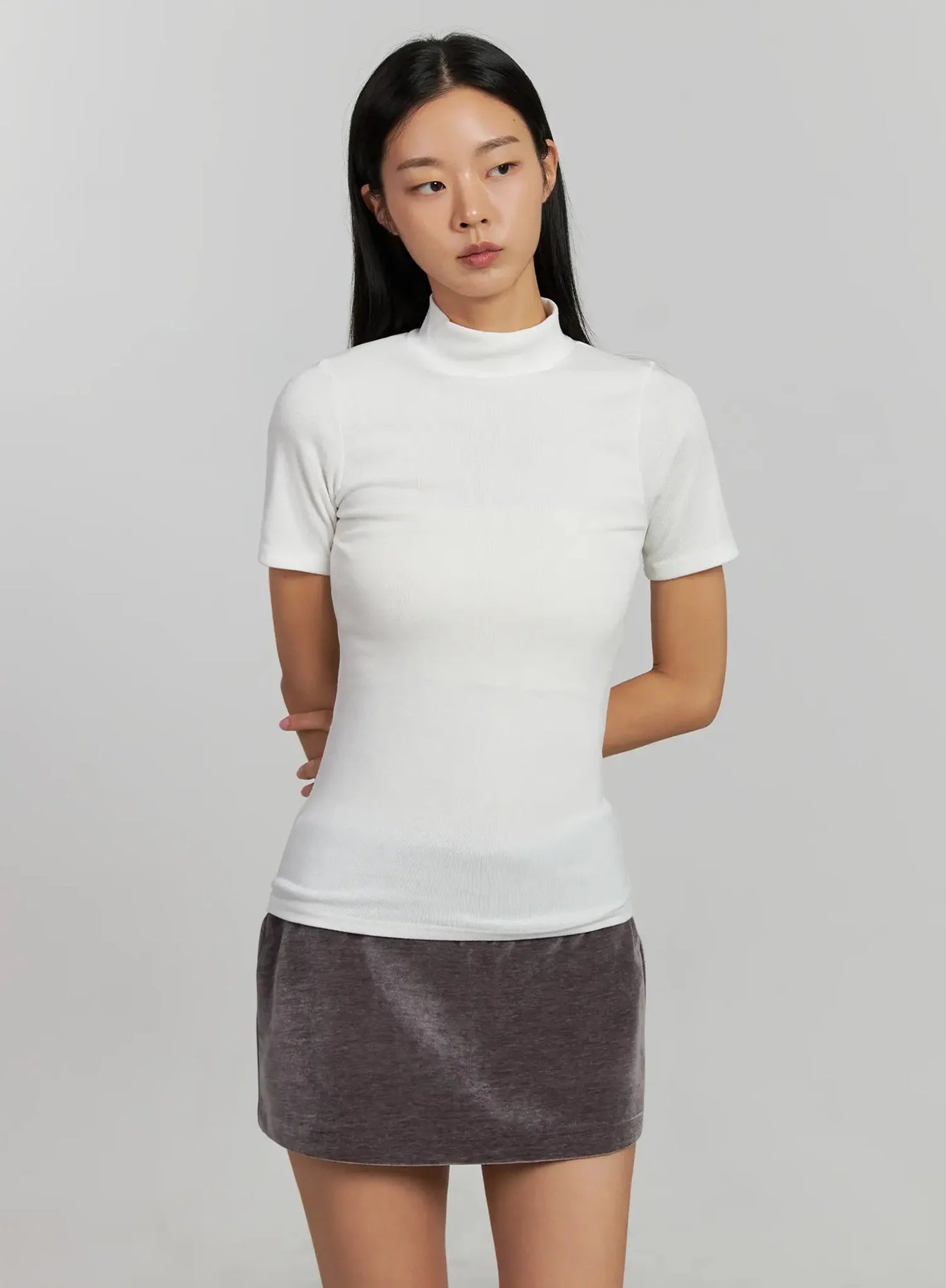 Mock Neck Short Sleeve Top IJ502
