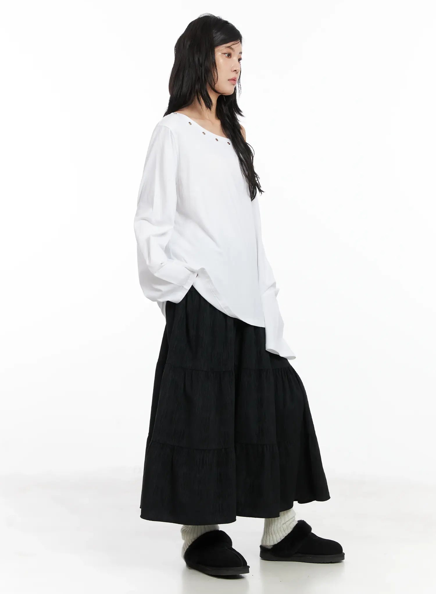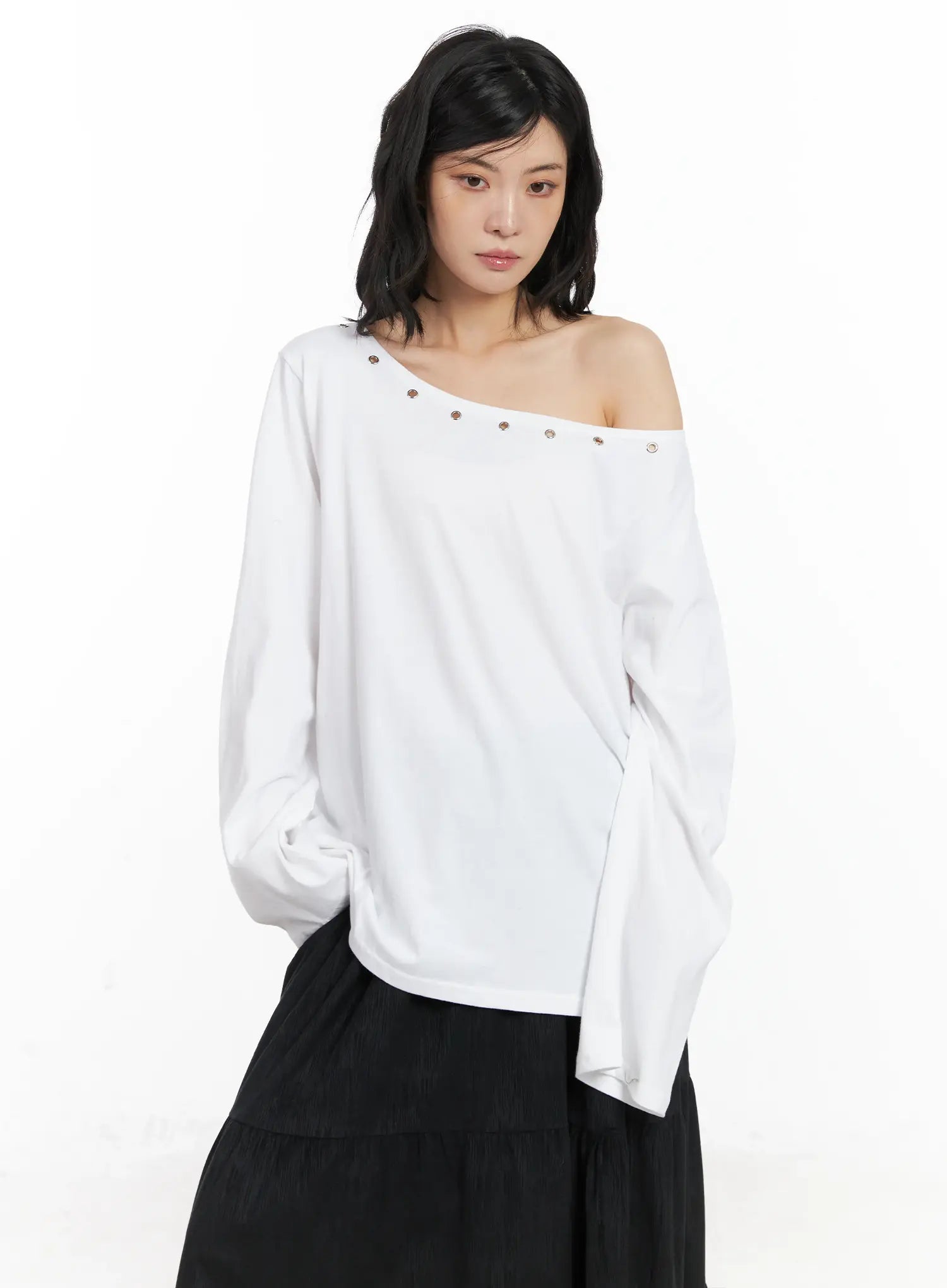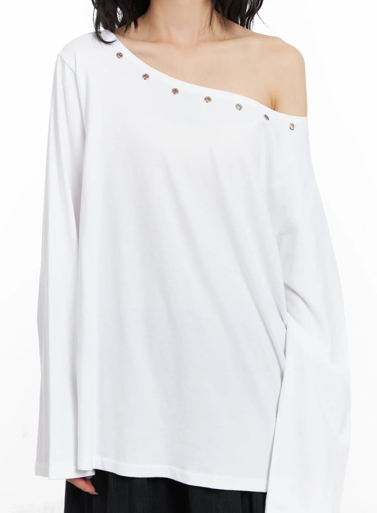 Off-Shoulder Grommet Long Sleeve Top CD502