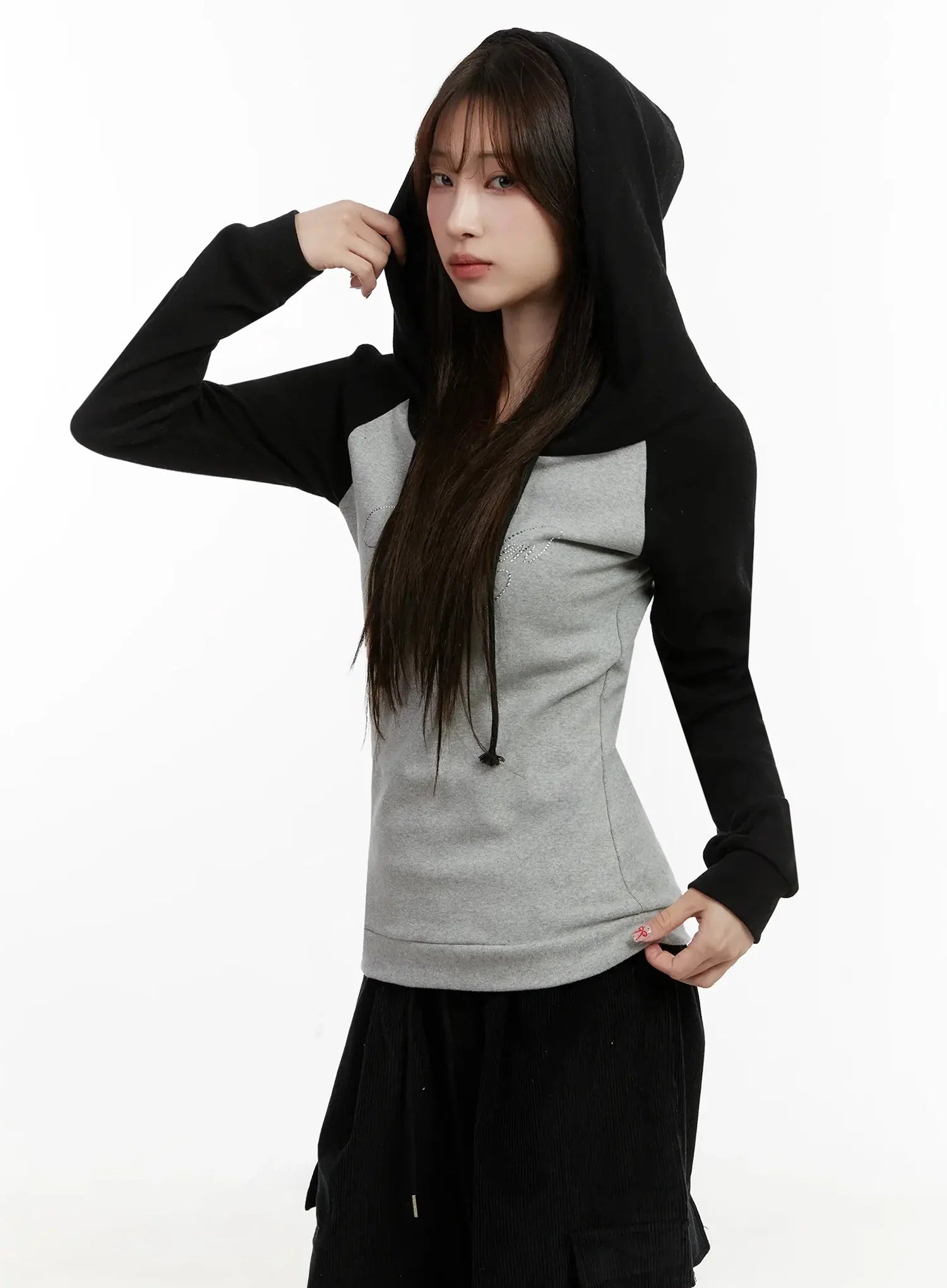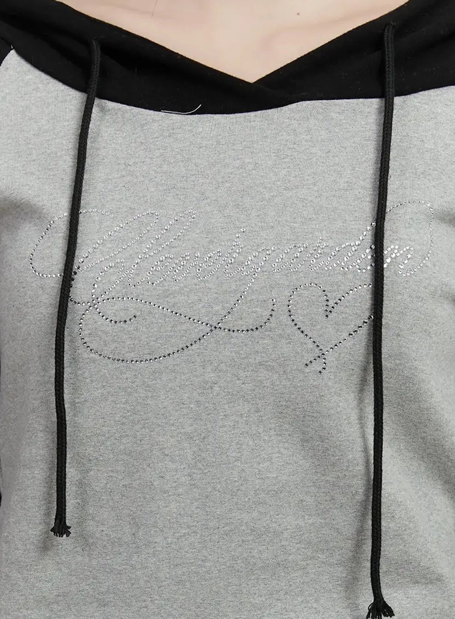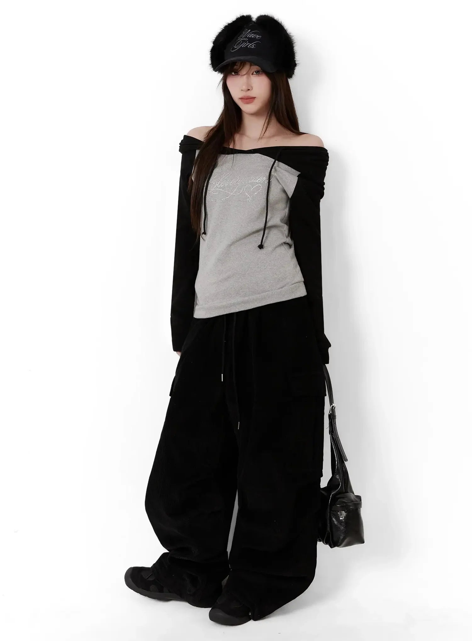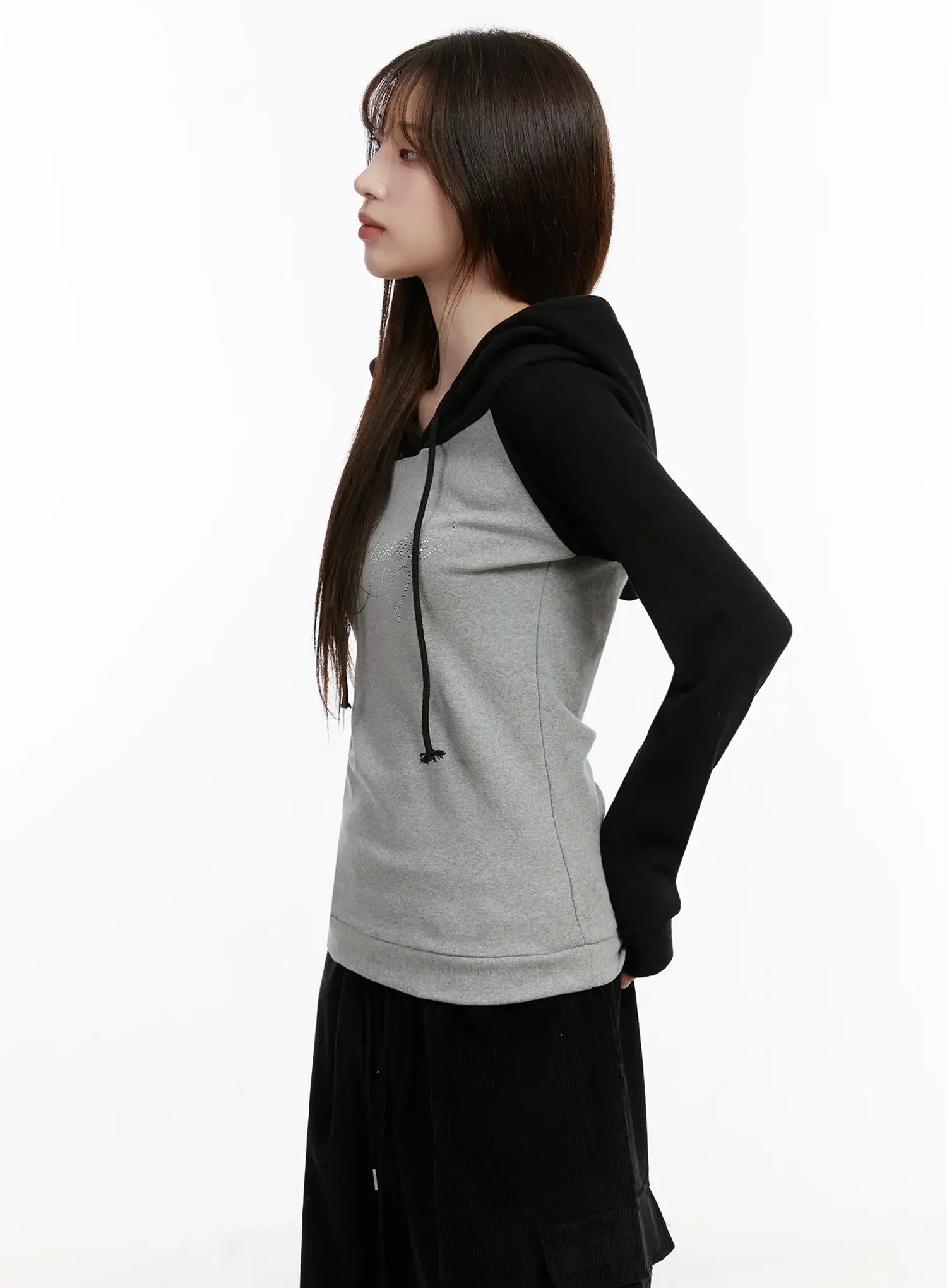 Off-Shoulder Hooded Lettering Top IJ521