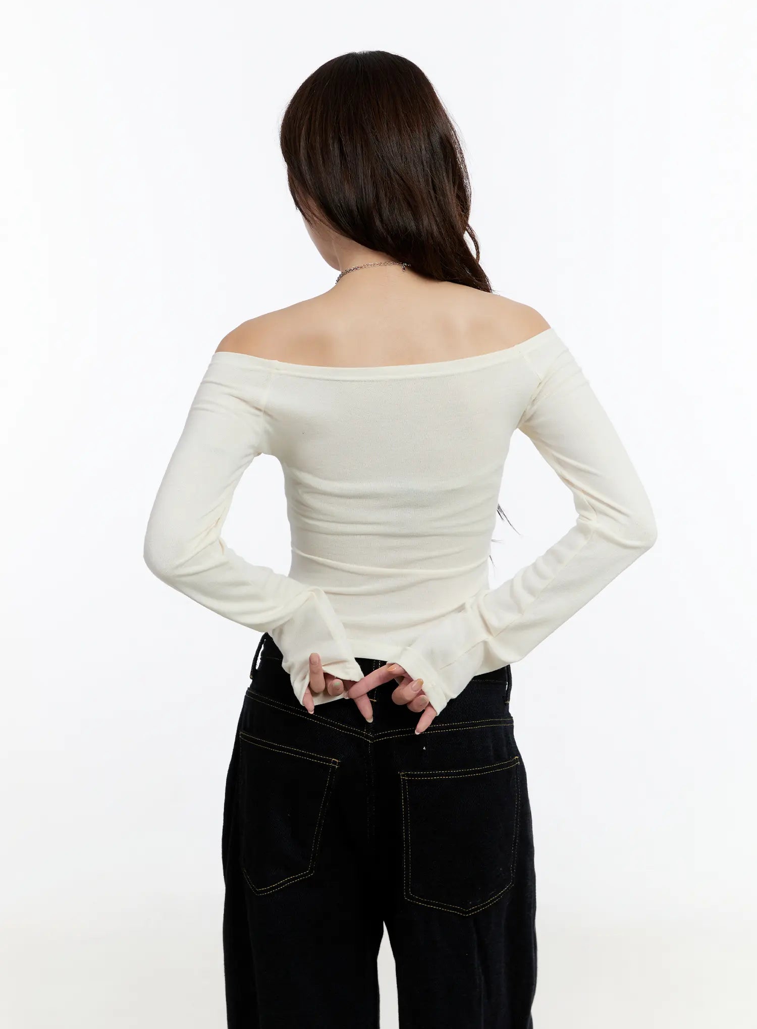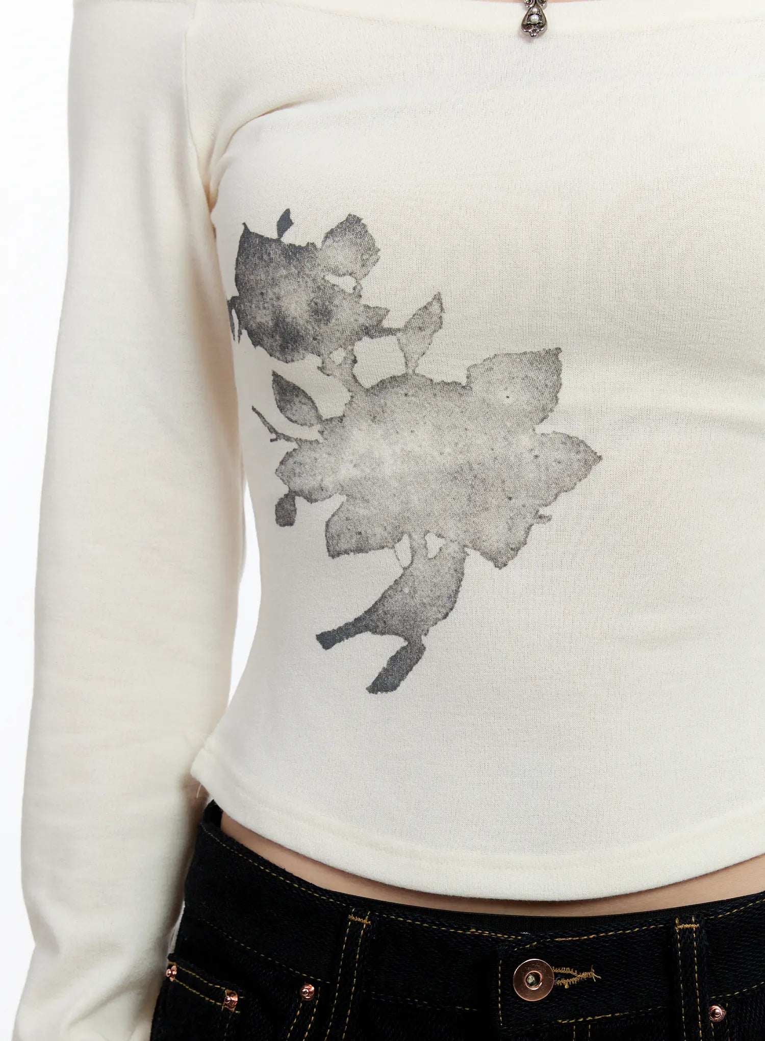 Off-Shoulder Printed Long Sleeve Top CN524