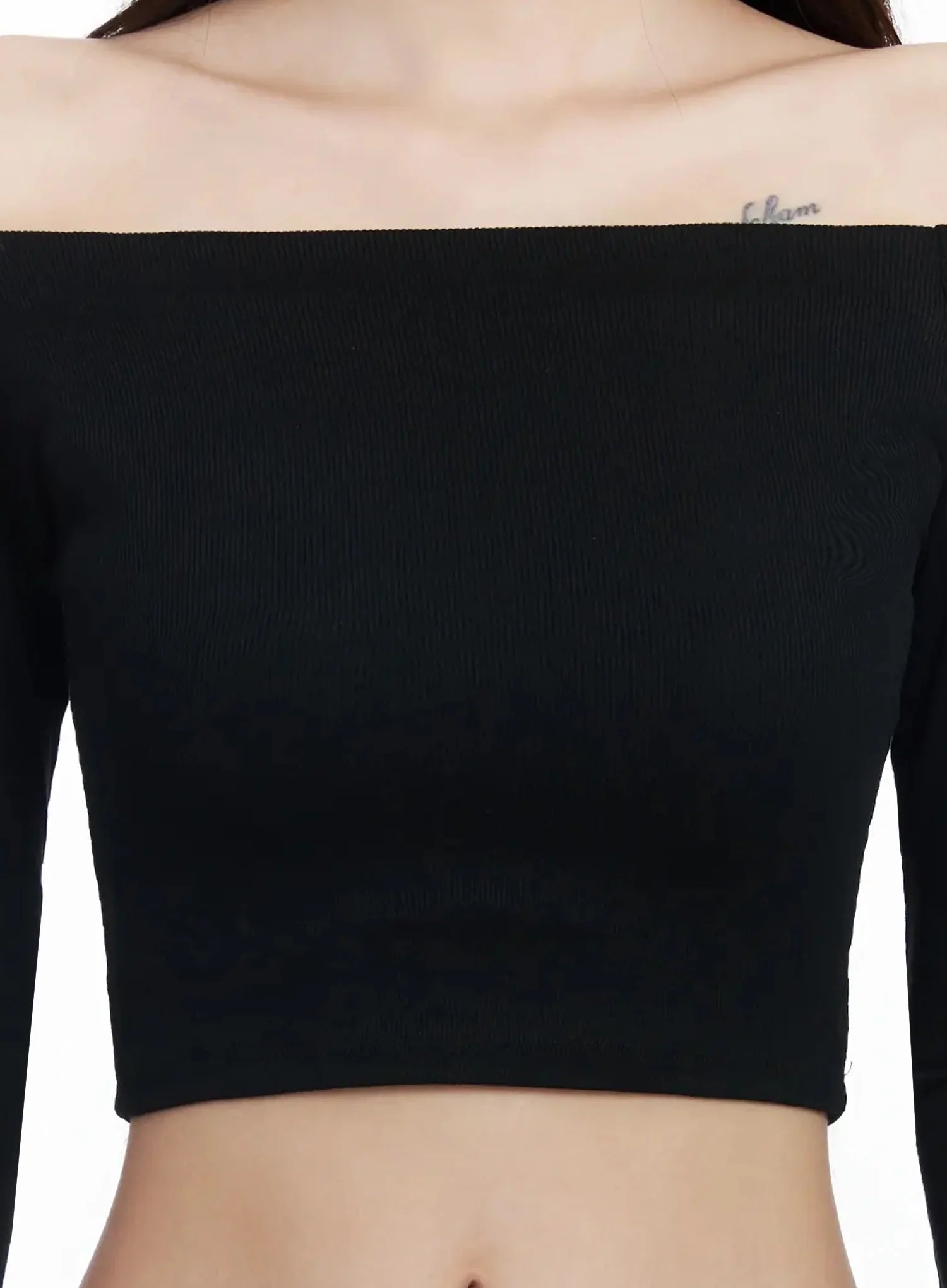 Off-Shoulder Ribbed Crop Top IM503