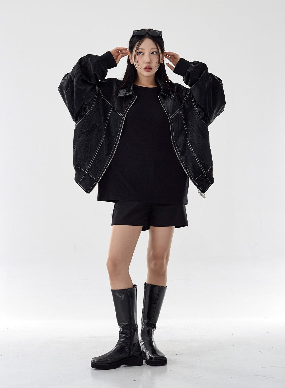 Over Fit Stitch Faux Leather Jacket Unisex CG16