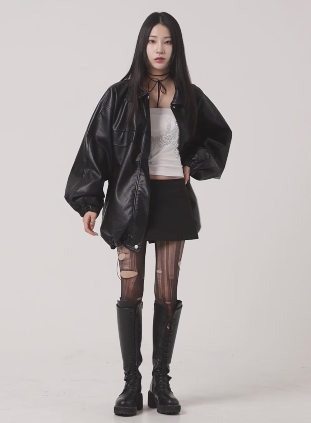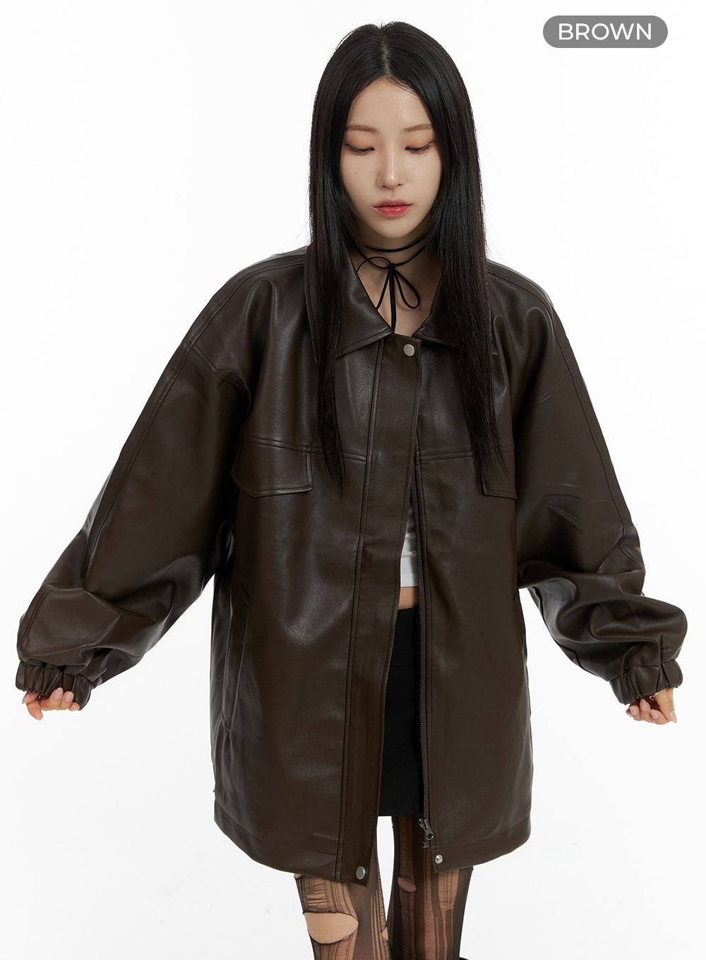 Oversized Faux Leather Jacket CF428