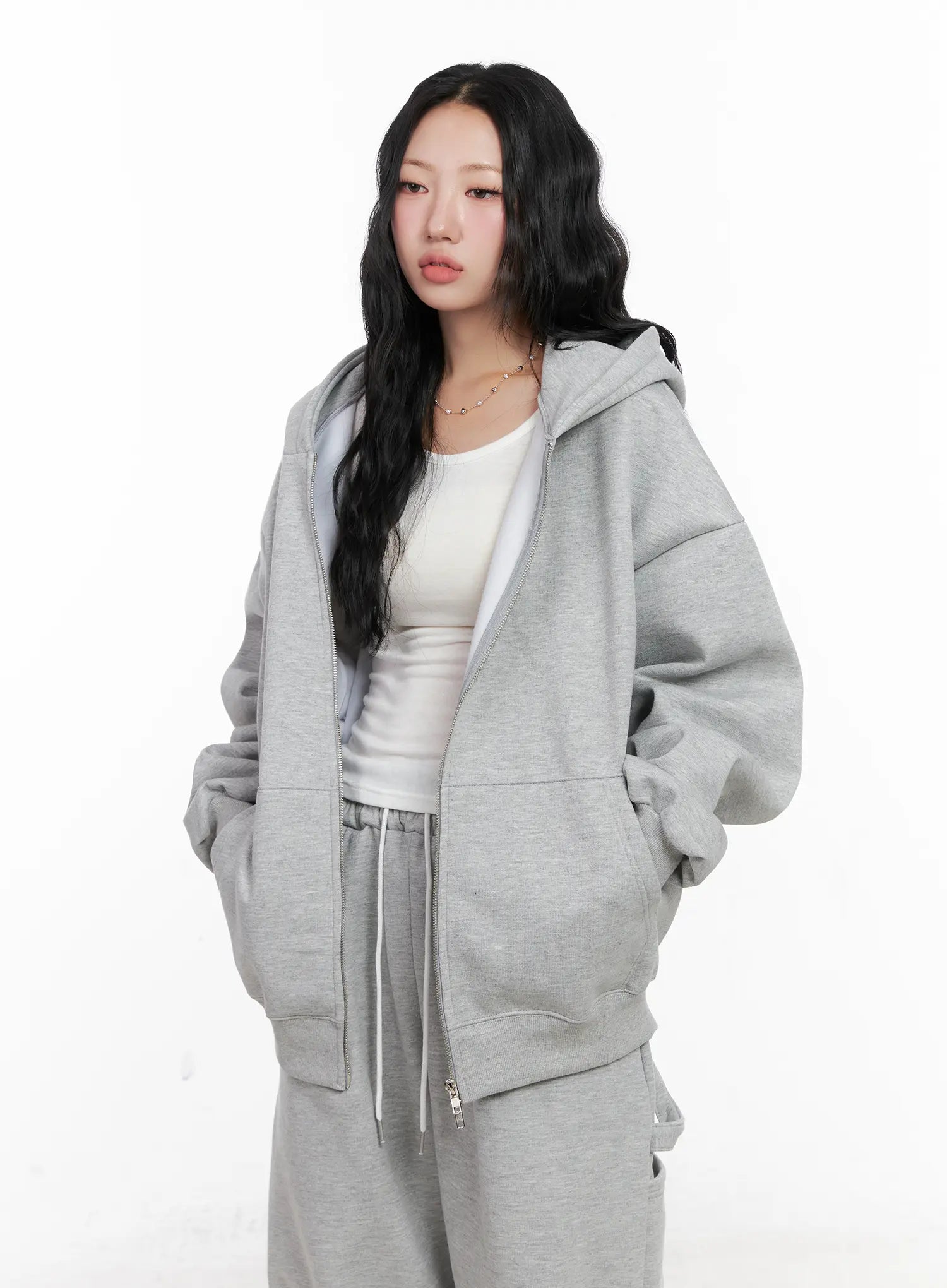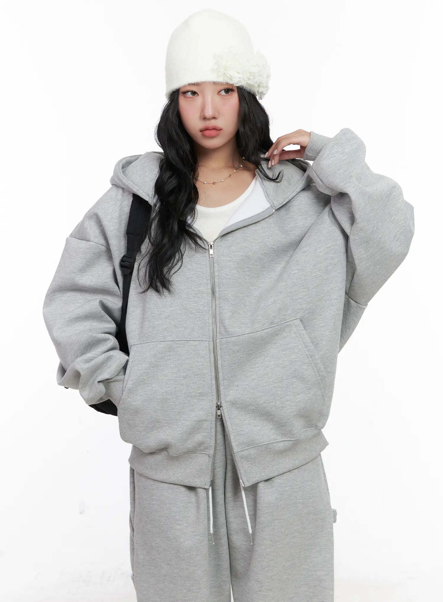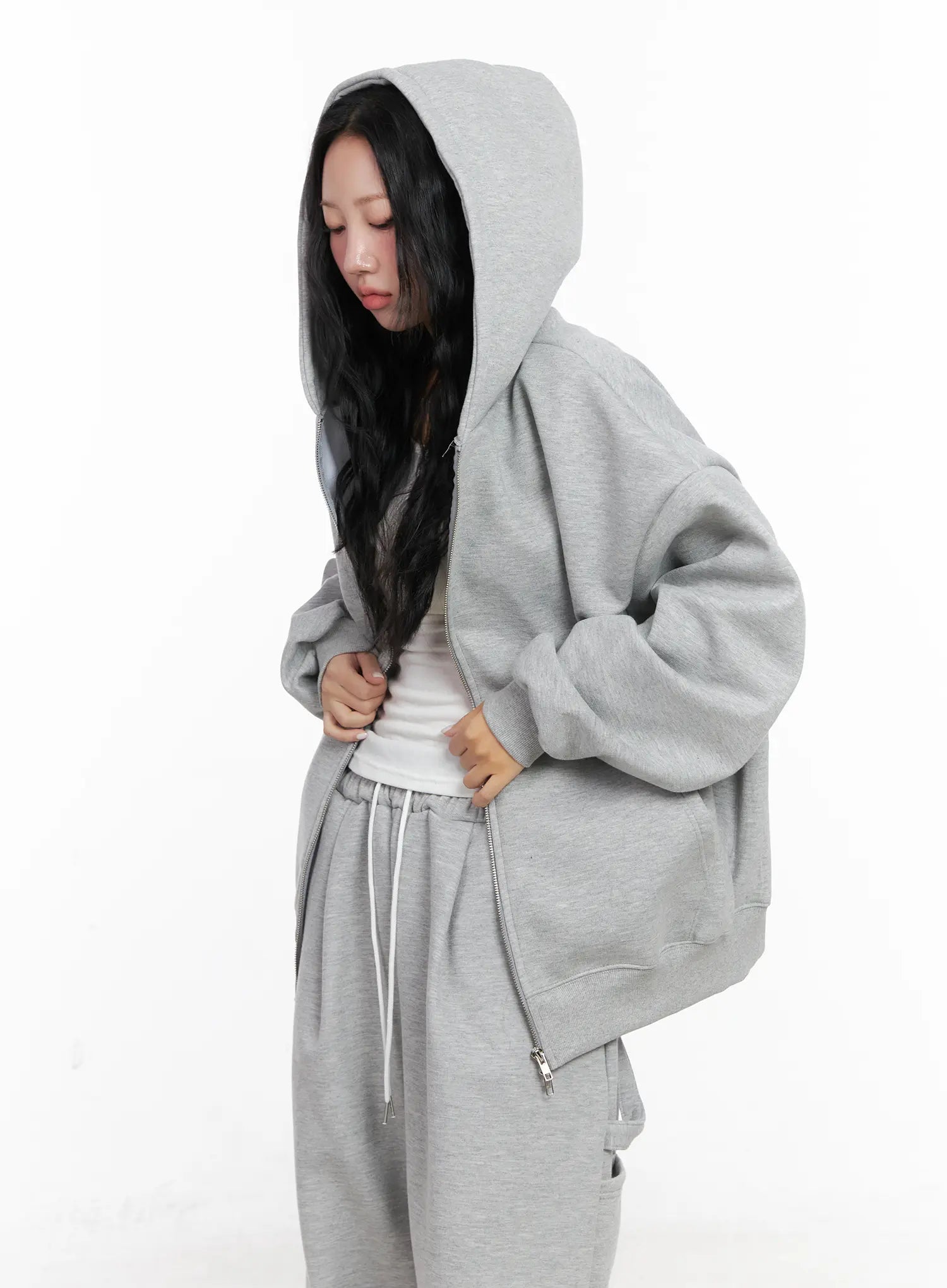 Oversized Fleece Zip-Up Hoodie CN514