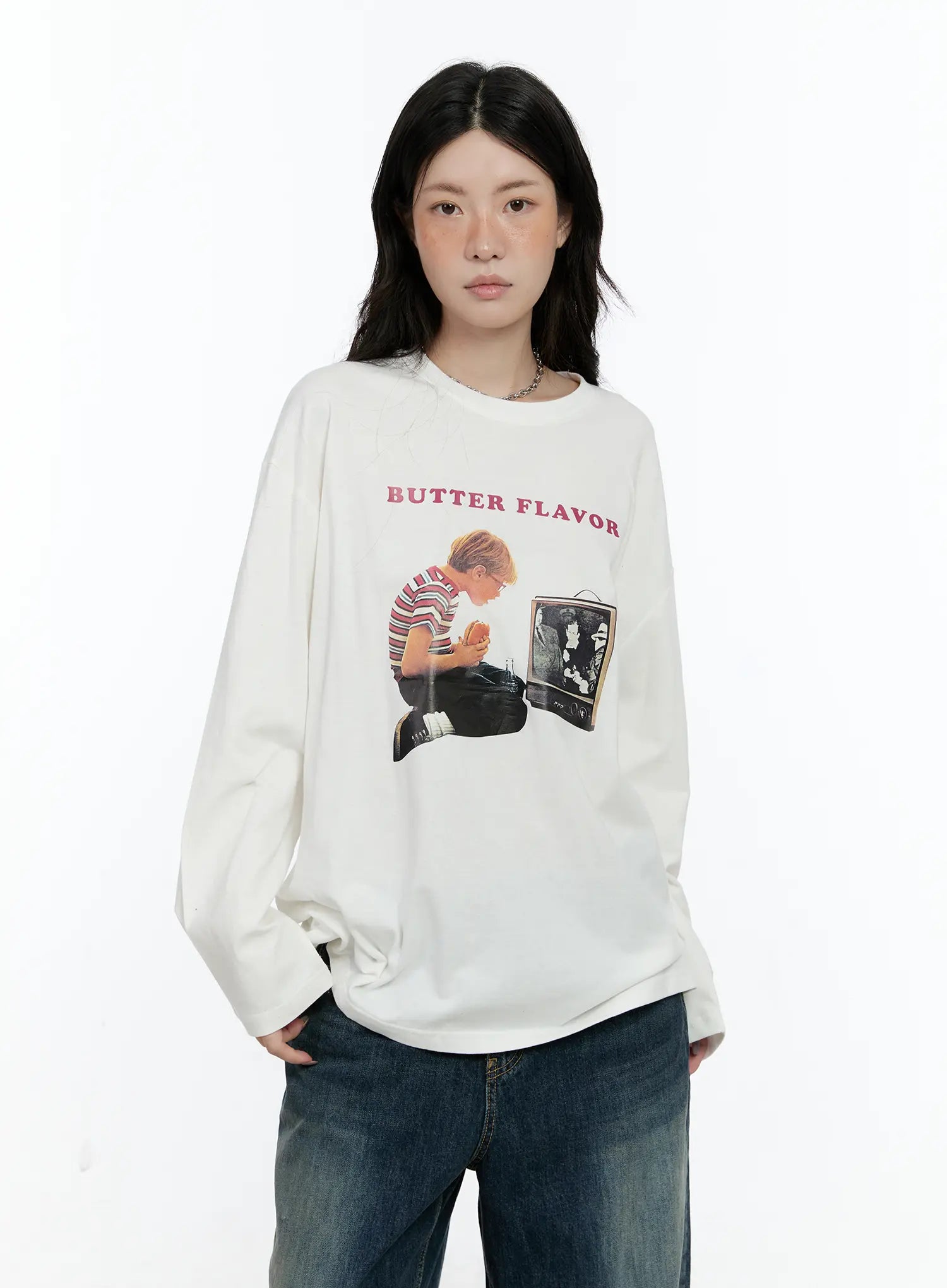 Oversized Graphic Long Sleeve Top CN517