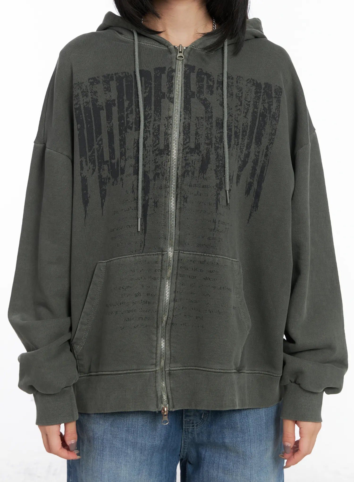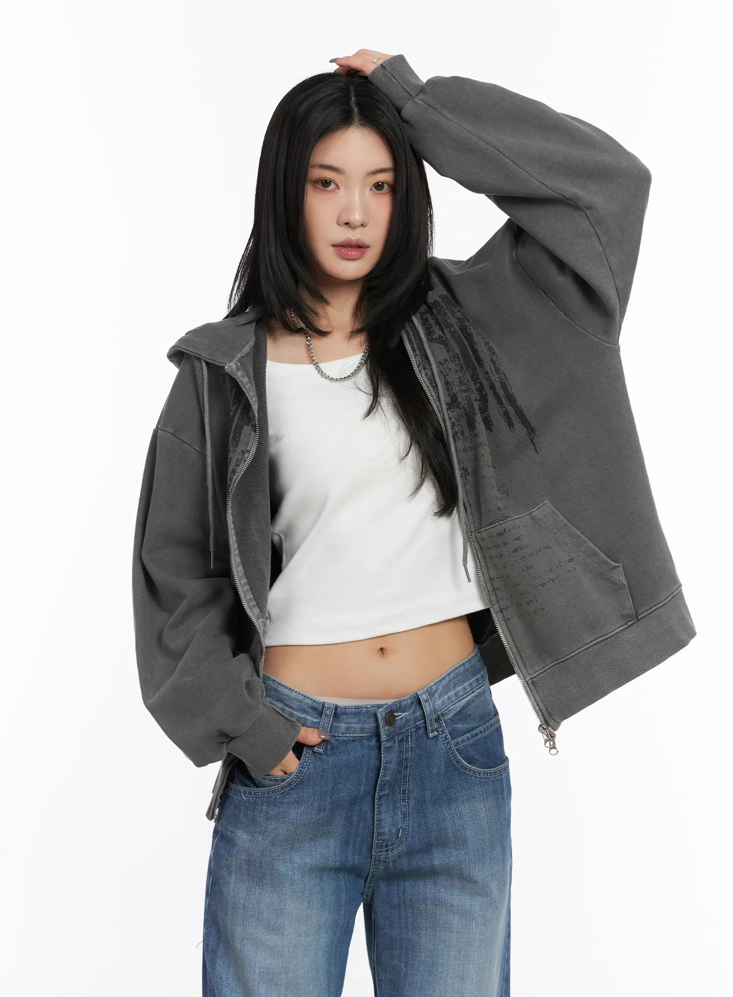 Oversized Pigment Print Zip-Up Hoodie CD505