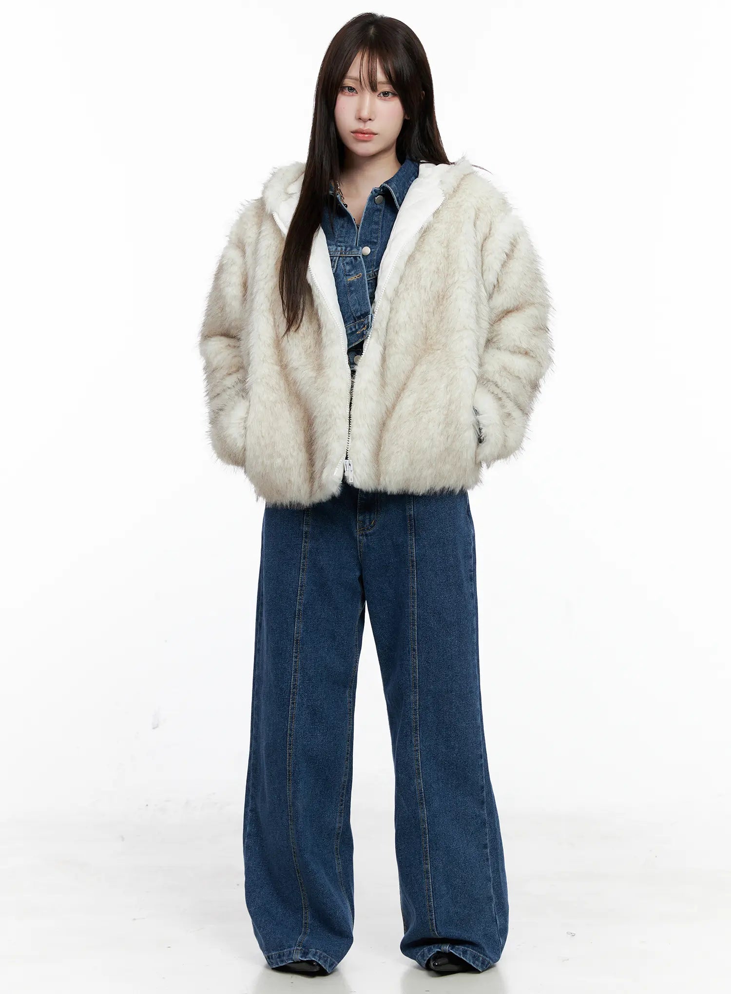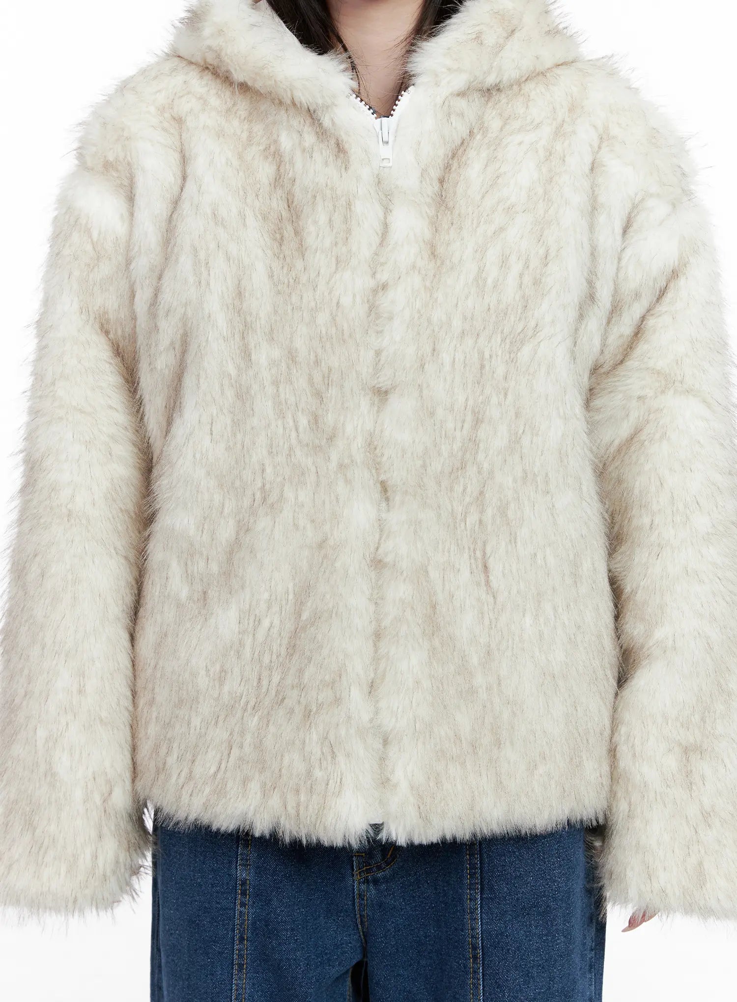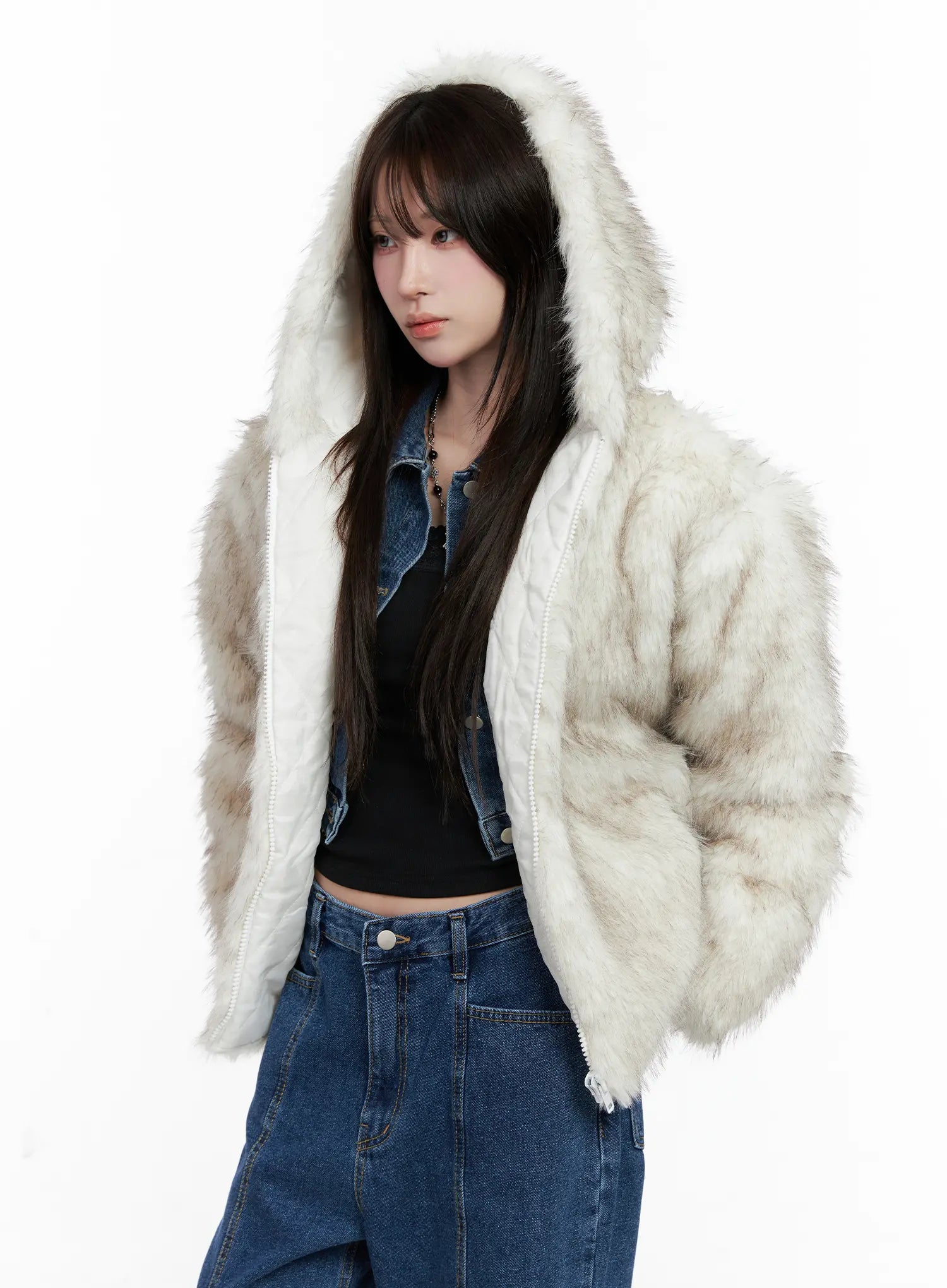 Oversized Quilted Faux Fur Hooded Jacket CO521