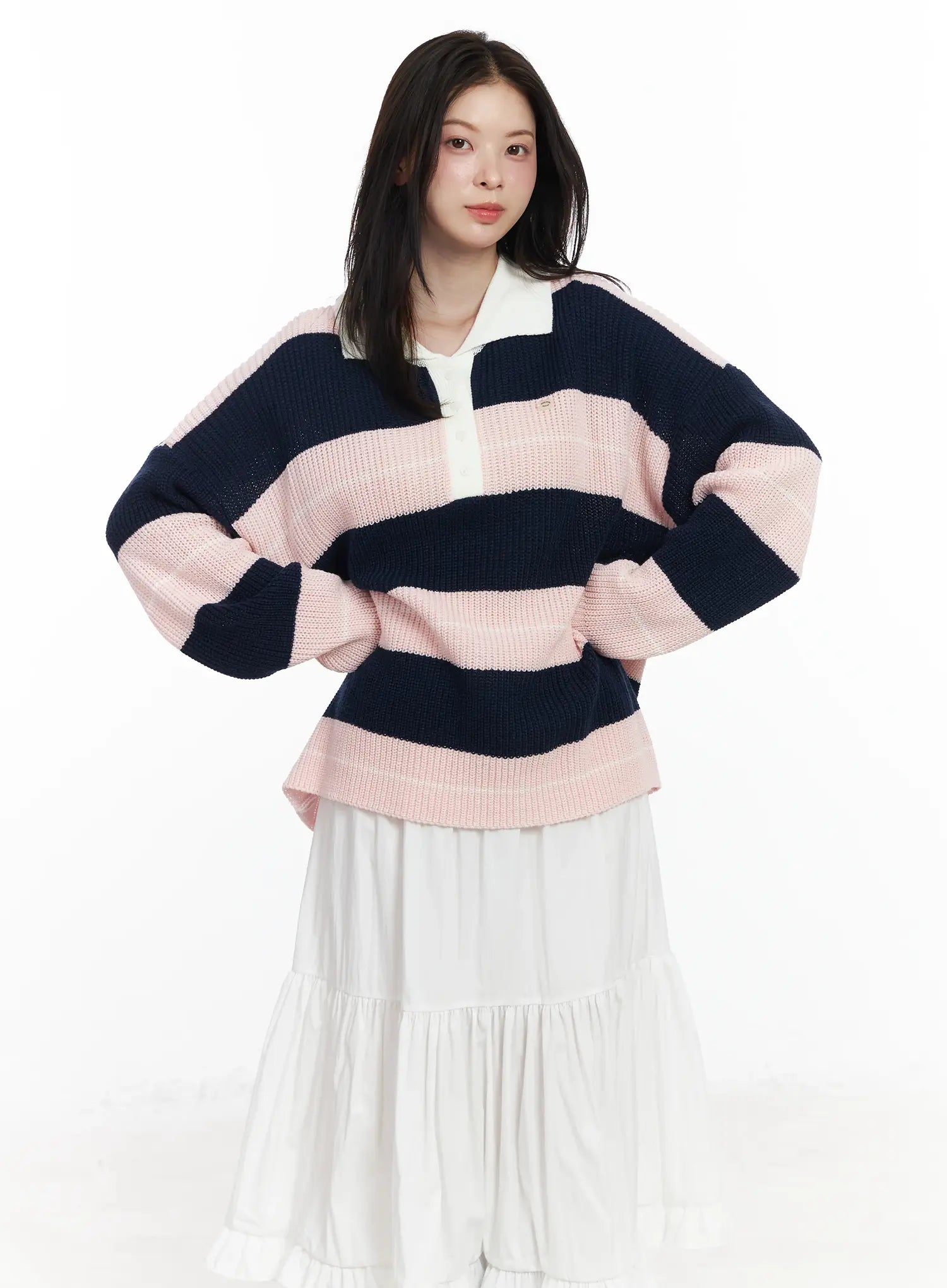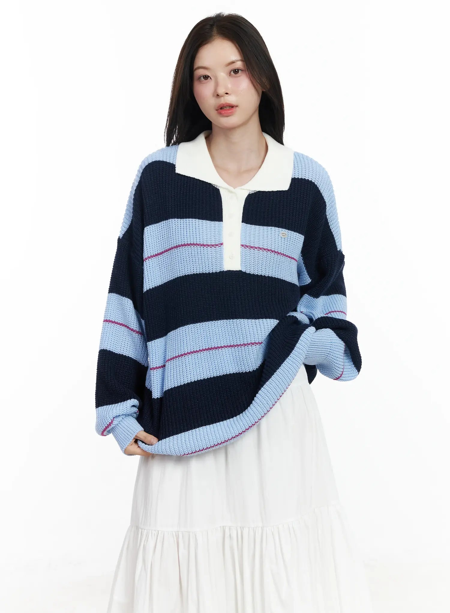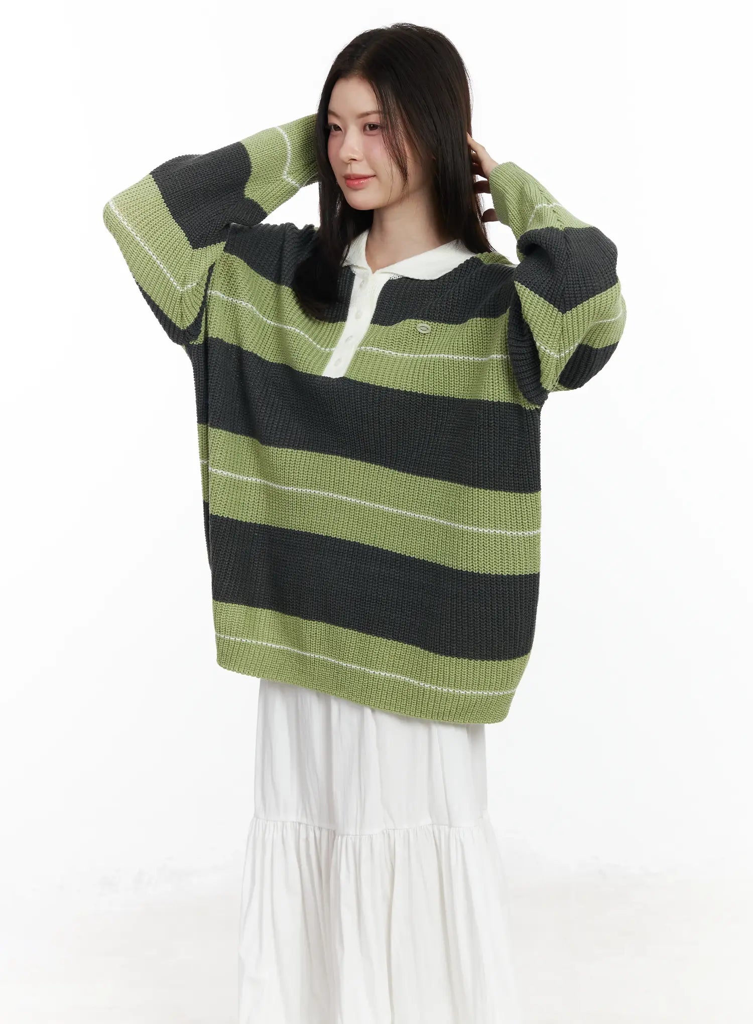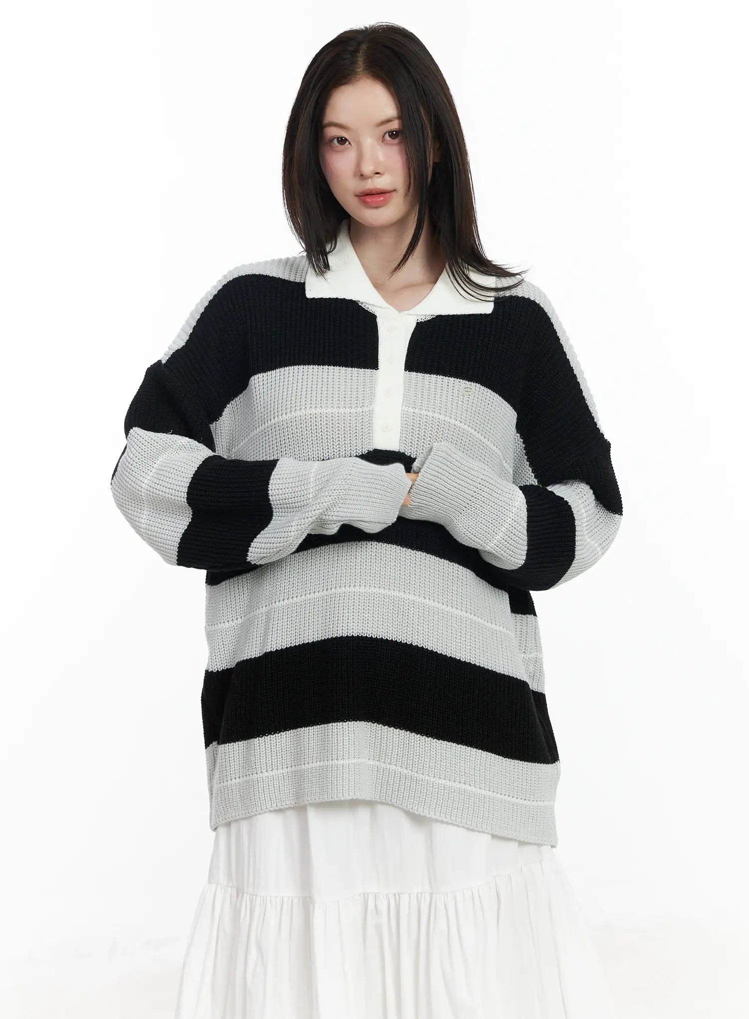 Oversized Striped Knit Pullover Sweater IF520