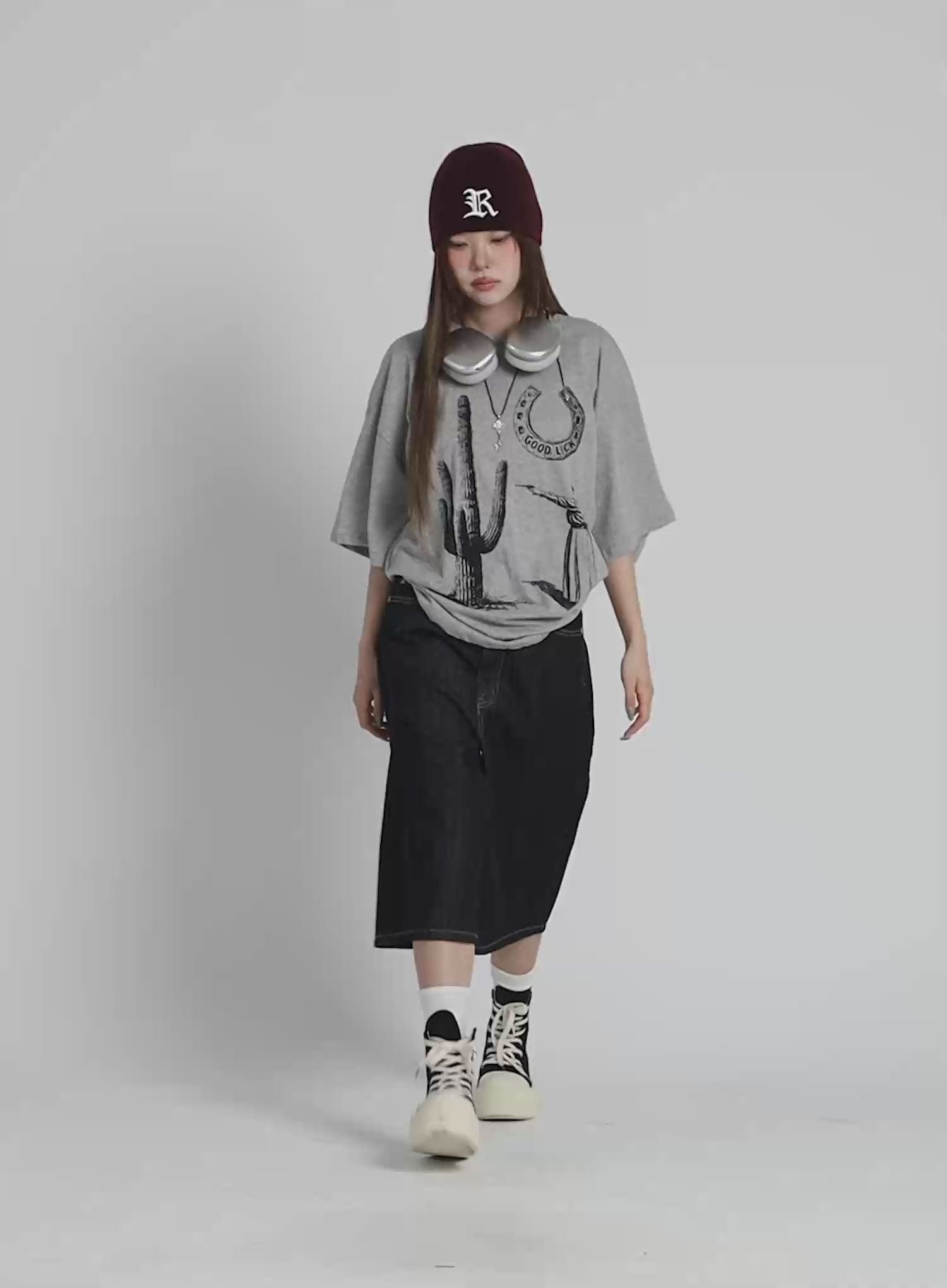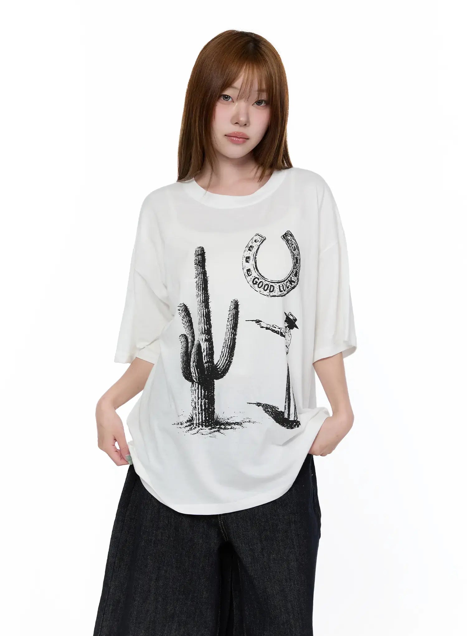 Oversized Western Print Tee CA521