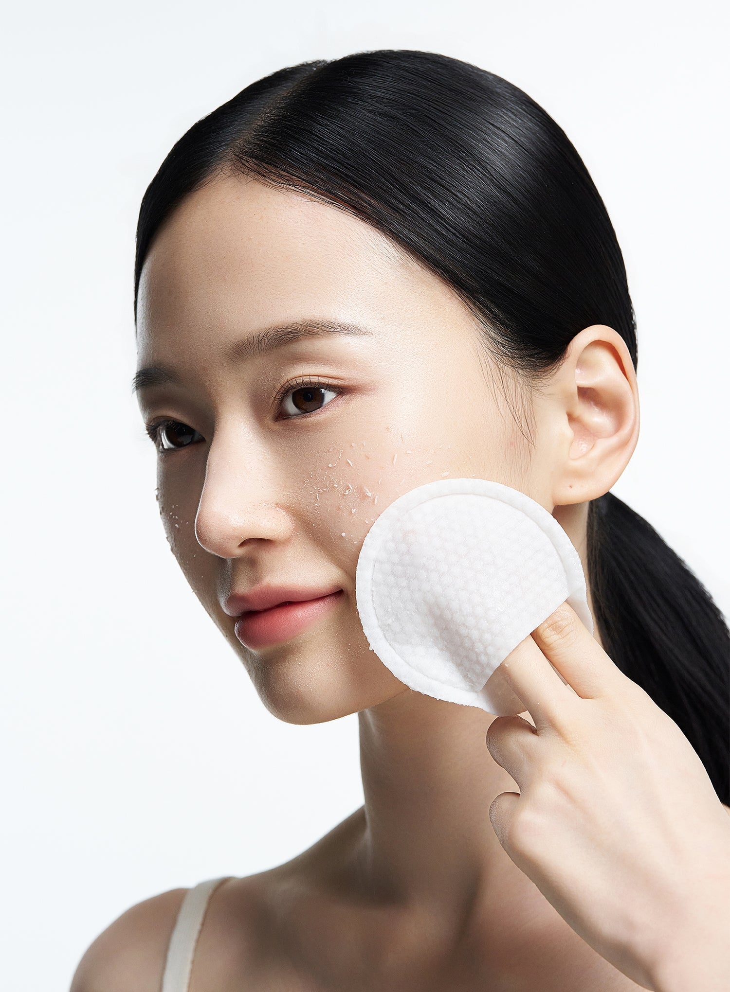 On a dry face, roll the pad to remove impurities and dead skin cells. If wearing makeup, cleanse first, then rinse thoroughly with lukewarm water.