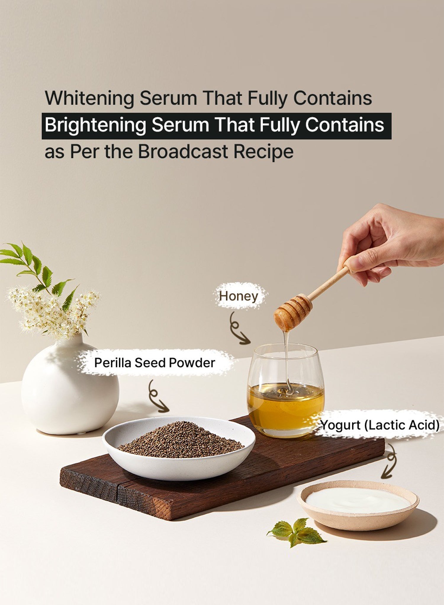 Water, Disodium EDTA, Arbutin, Glutathione, Lactic Acid, Tranexamic Acid, Niacinamide, Adenosine, Butylene Glycol, Glycerin, 1,2-Hexanediol, Ammonium Acryloyldimethyltaurate/VP Copolymer, Sodium Polyacryloyldimethyl Taurate, Polyacrylate Crosspolymer-6, Xanthan Gum, Polyglyceryl-10 Laurate, Caprylyl Glycol, Ethylhexylglycerin, Dextrin, Caramel, Theobroma Cacao (Cocoa) Fruit Powder, Perilla Ocymoides Seed Extract, Thymus Serpyllum Extract, Stellaria Media (Chickweed) Extract, Lactobacillus Ferment, Lactococcus Ferment, Aspergillus Ferment, Honey Extract