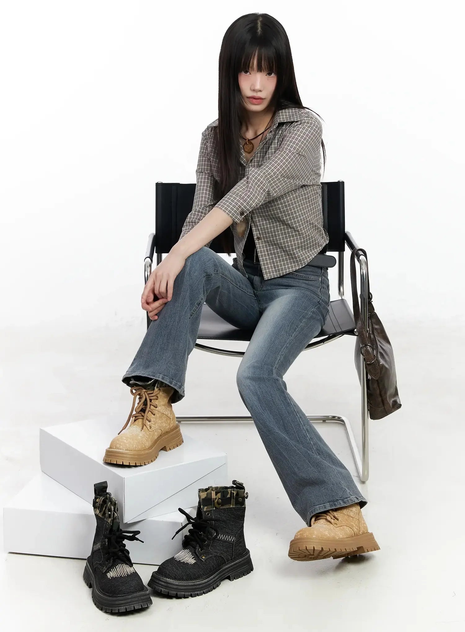 Plaid 3/4 Sleeve Shirt IM523