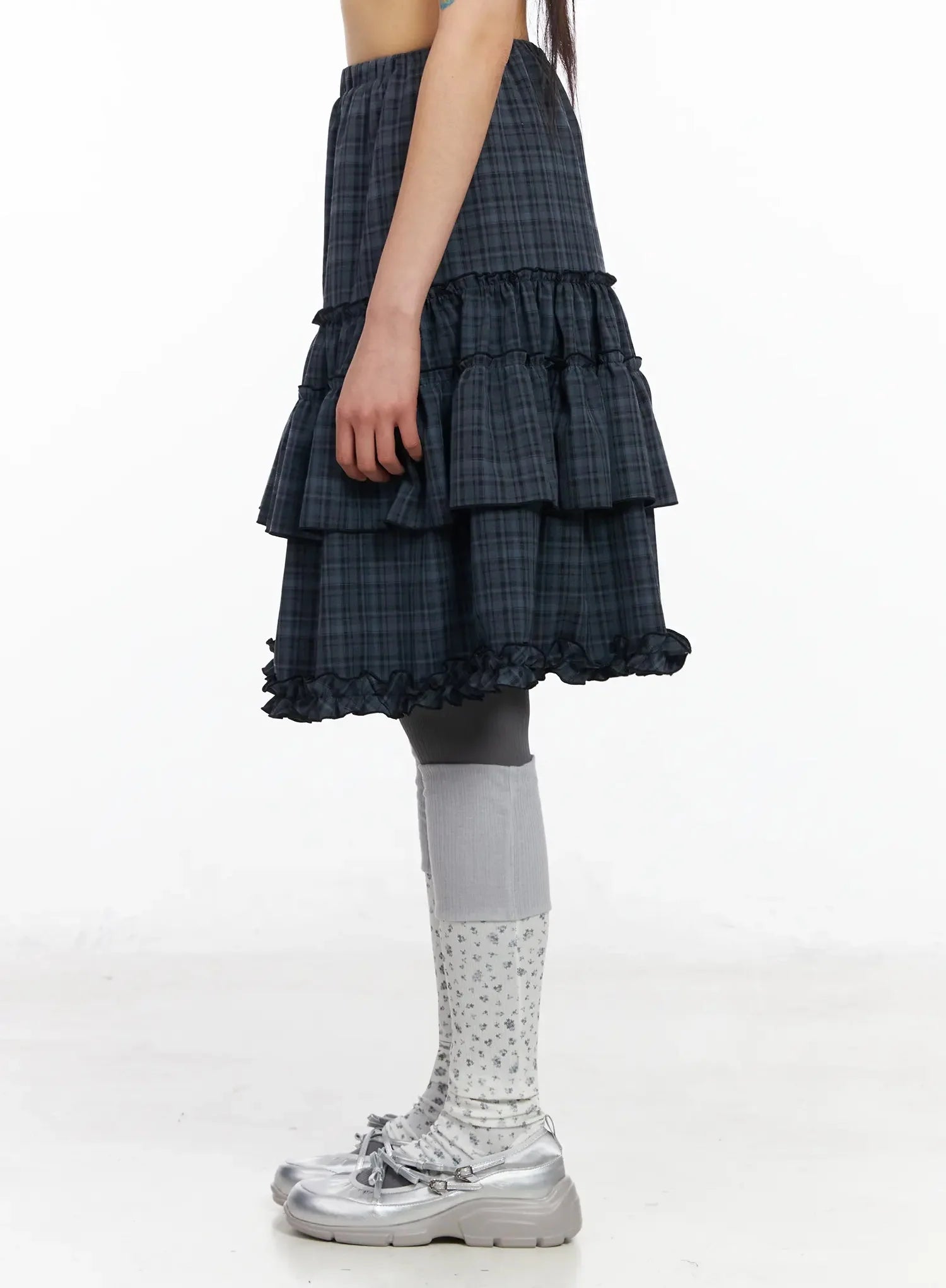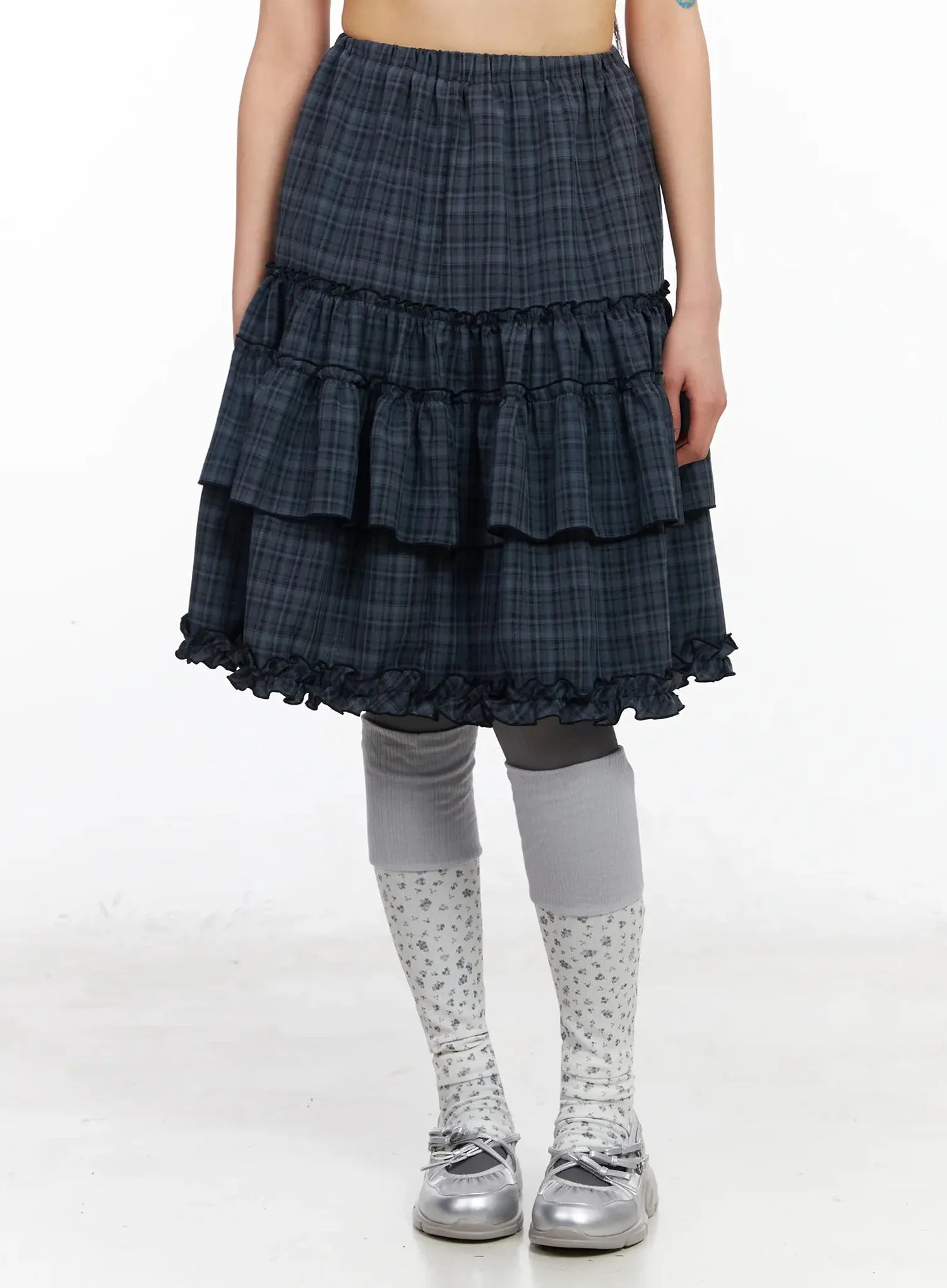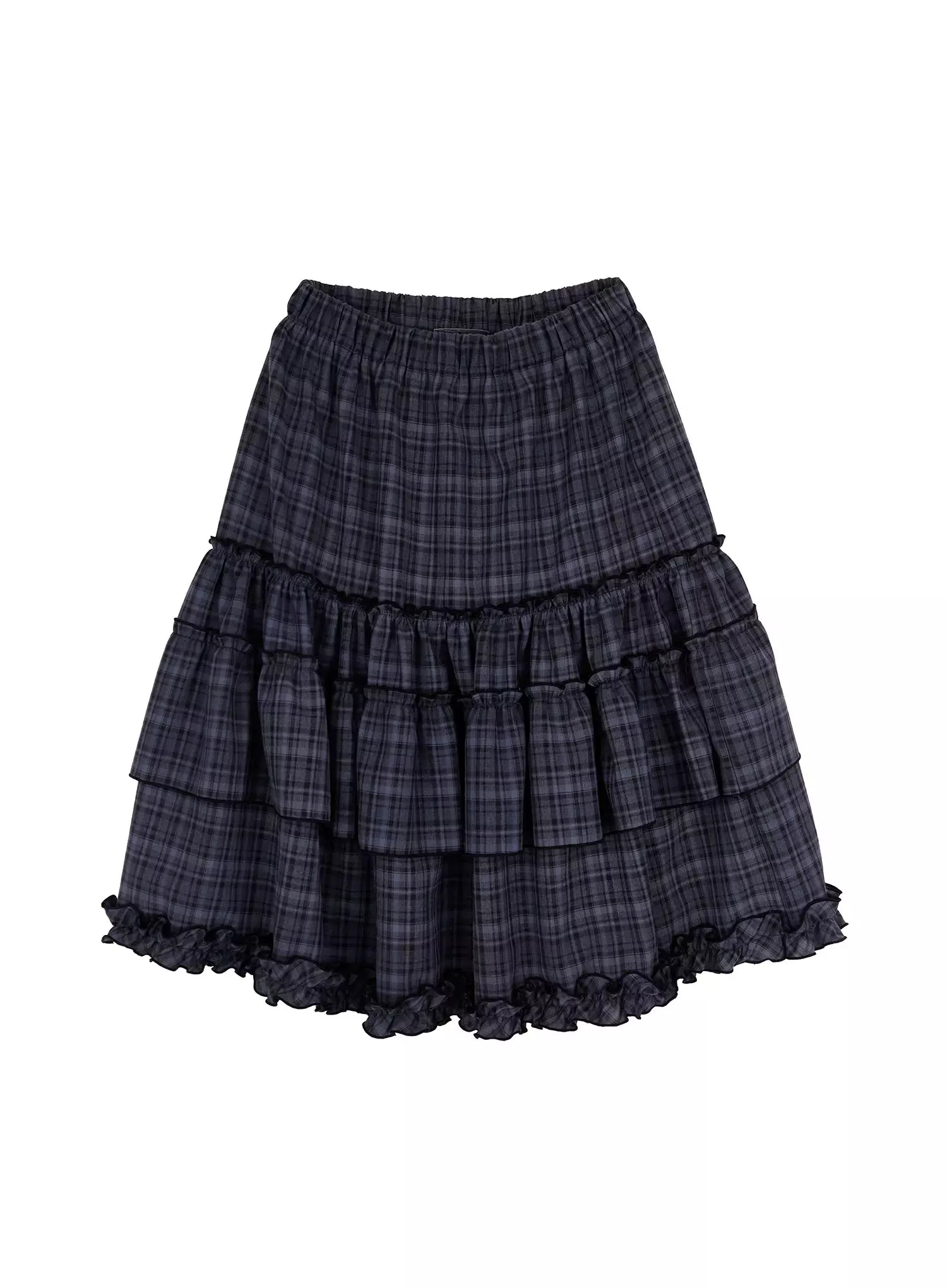 Plaid Frill Tiered Midi Skirt IA523
