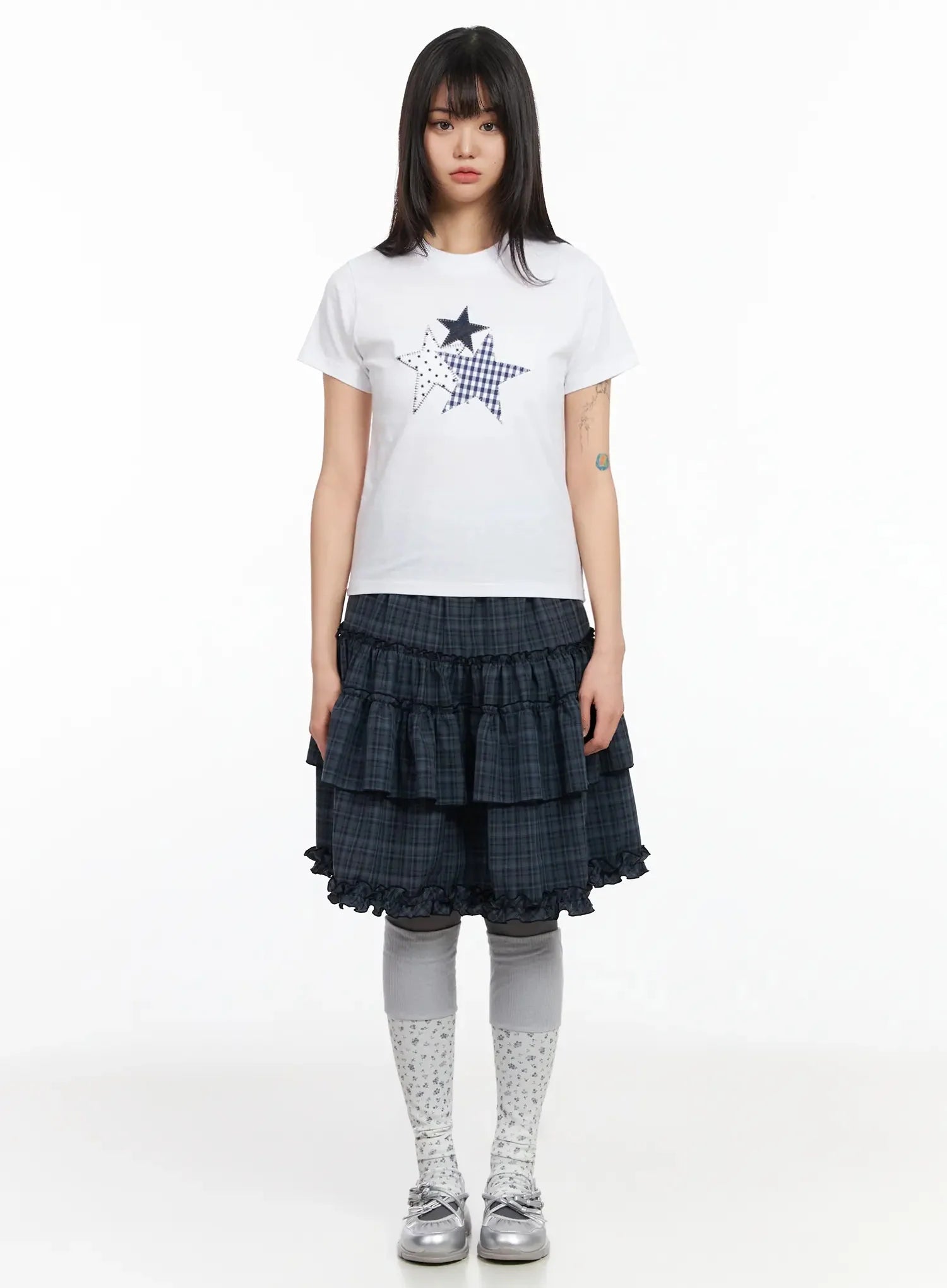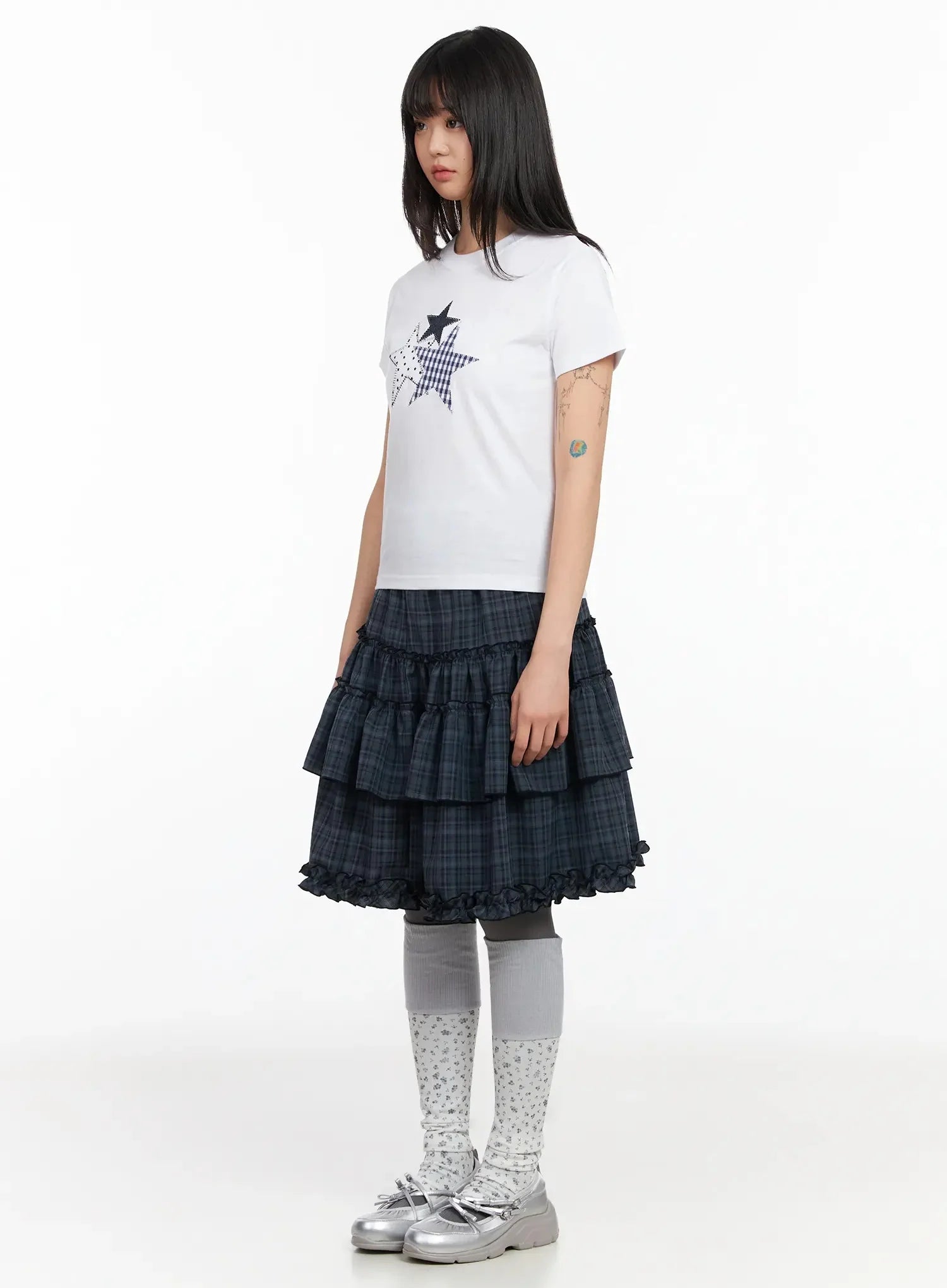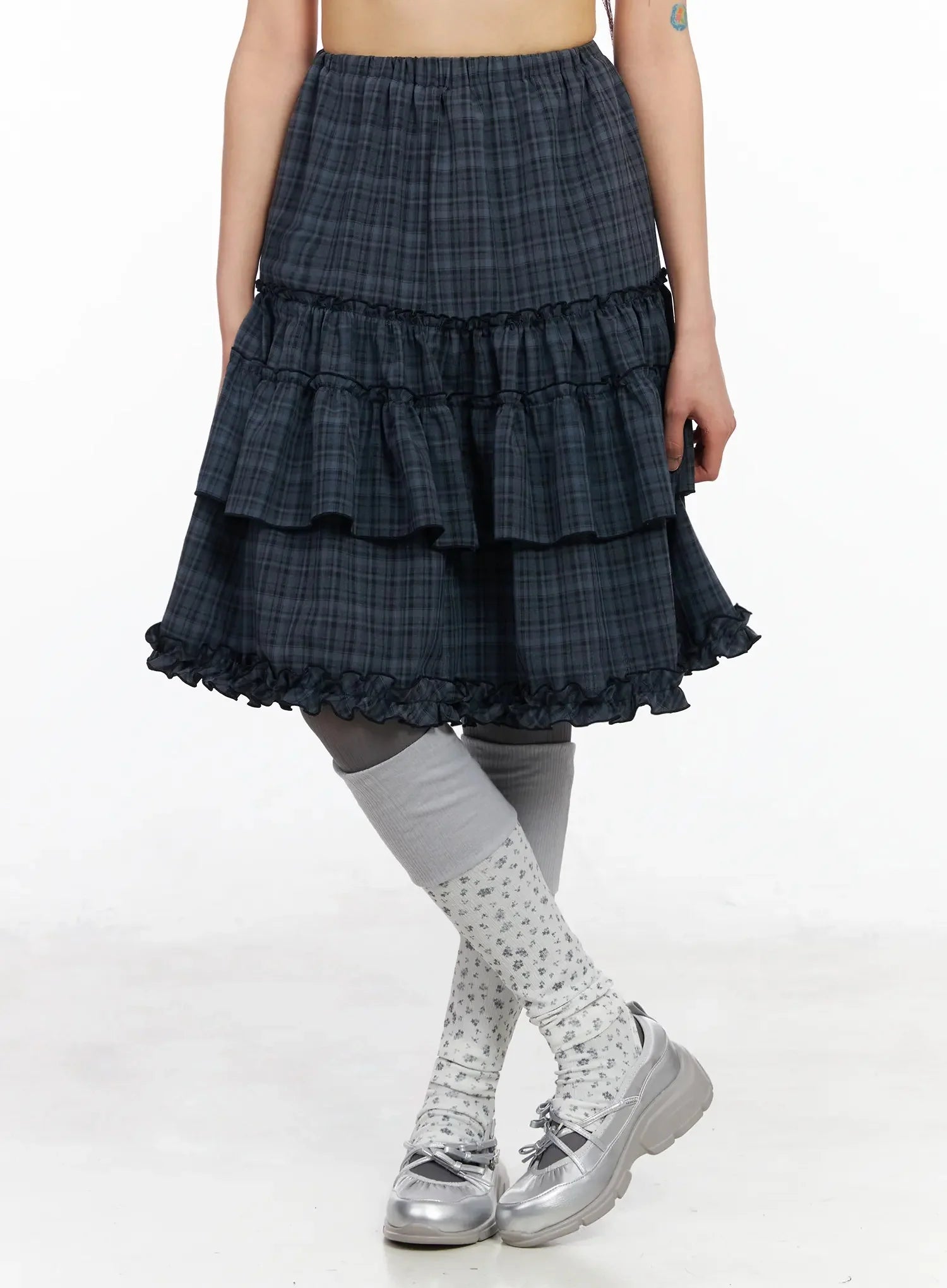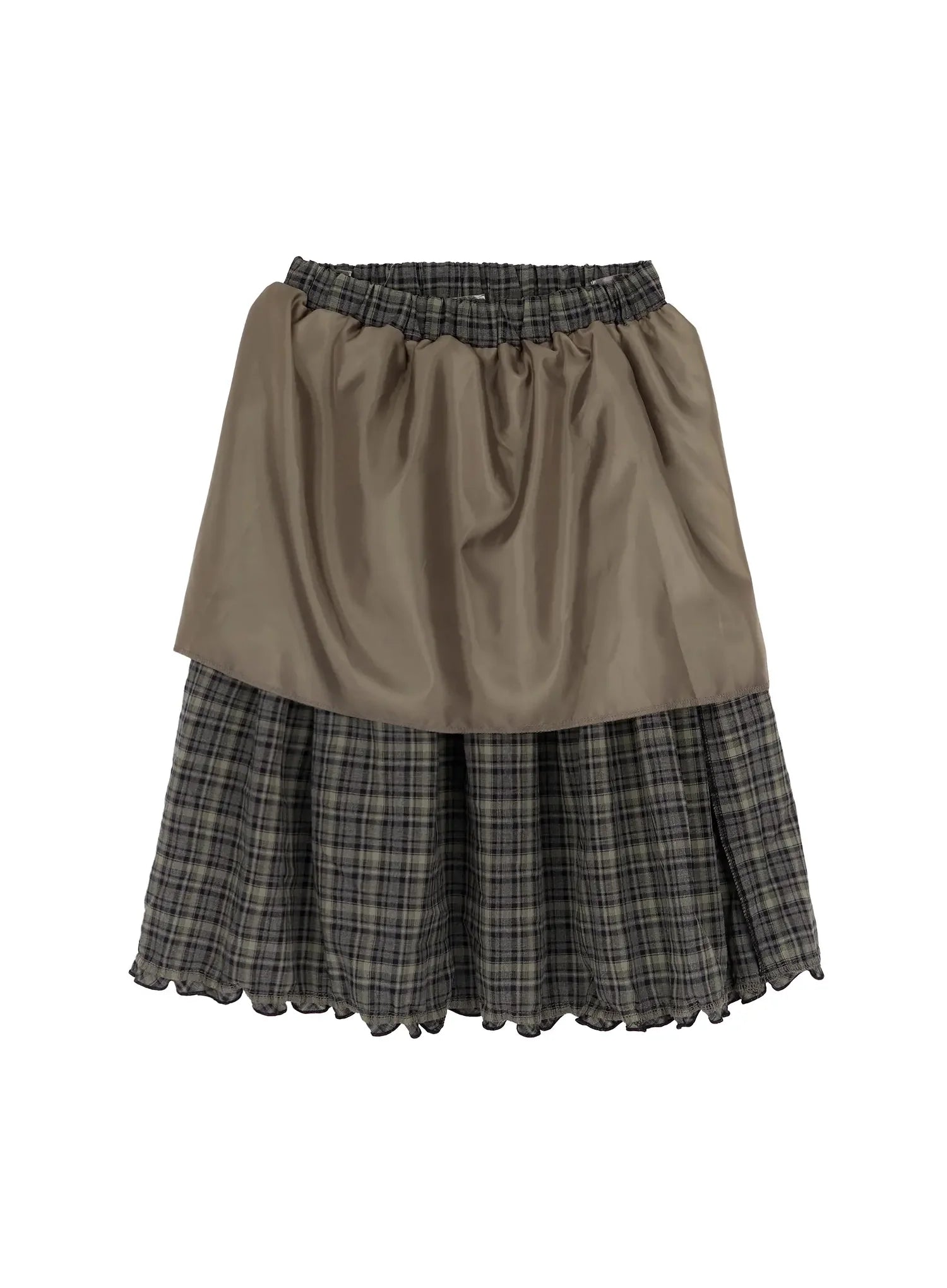 Plaid Frill Tiered Midi Skirt IA523