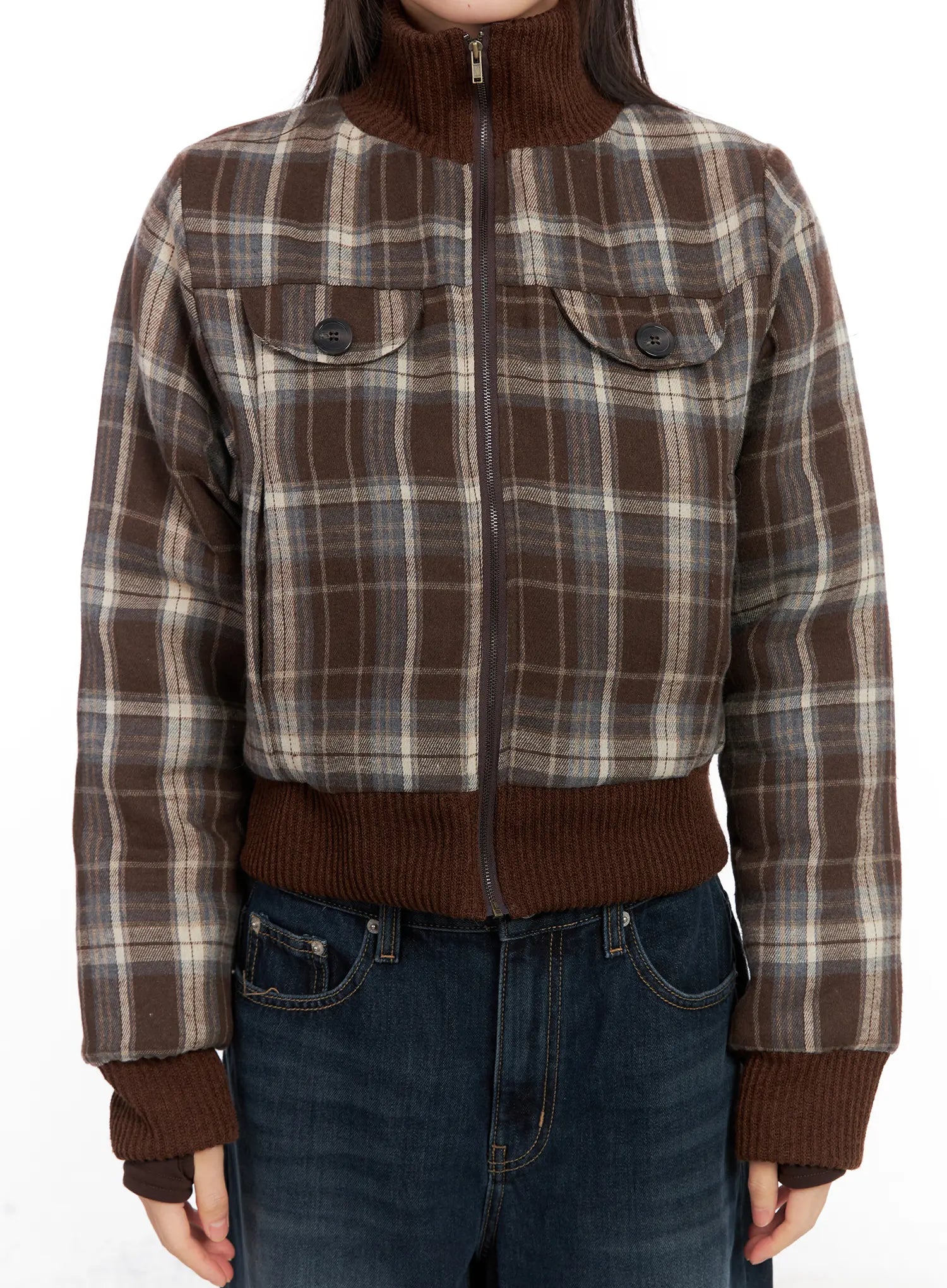 Plaid Quilted Bomber Jacket CN520