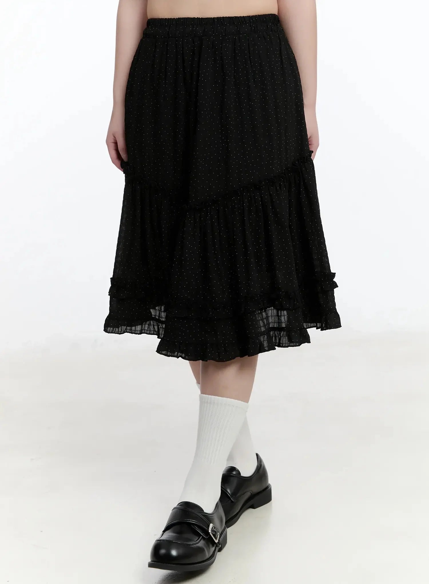 Polka Dot Ruffle Hem Midi Skirt IM513