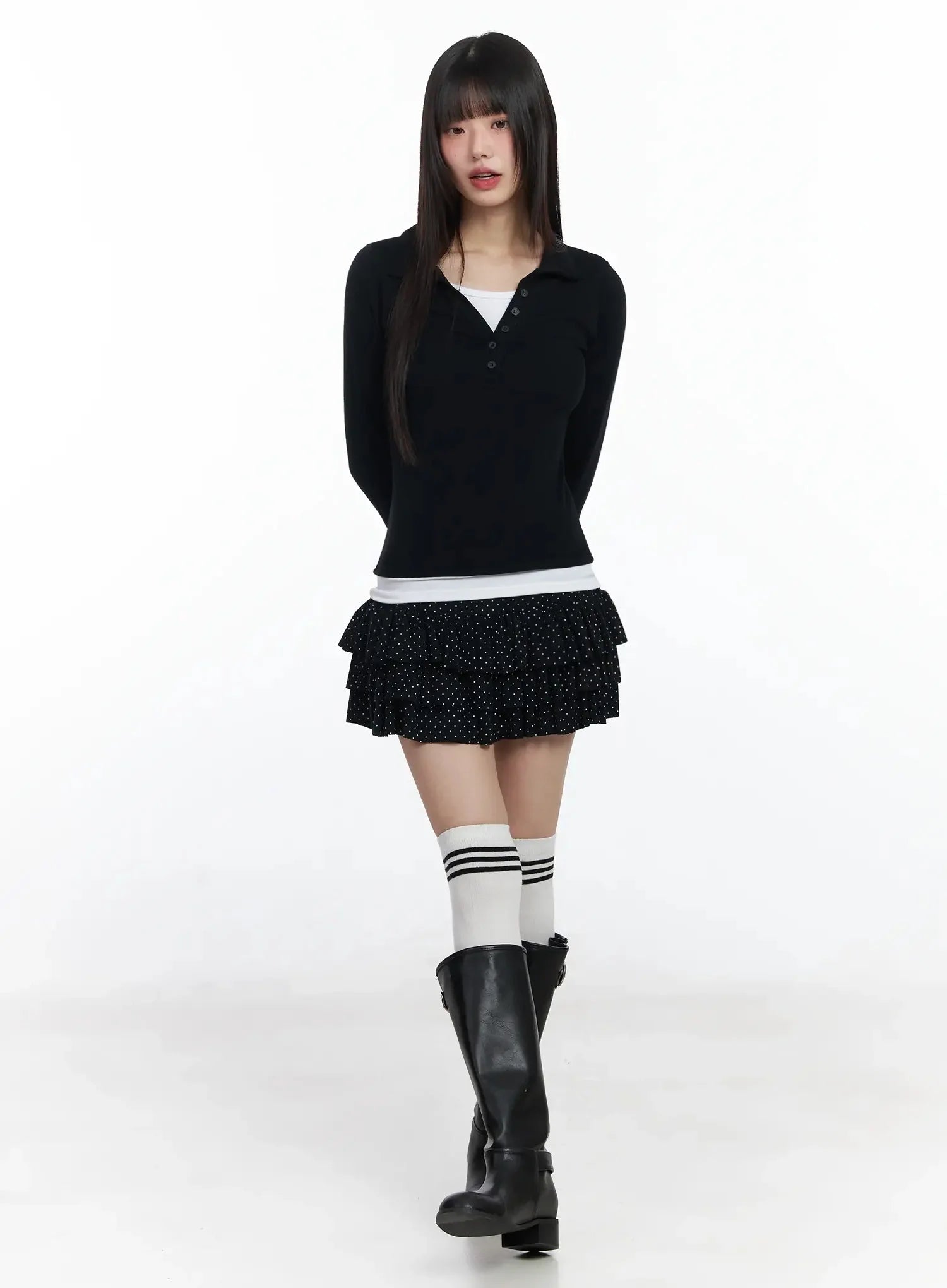 Polka Dot Ruffle Mini Skirt IF505