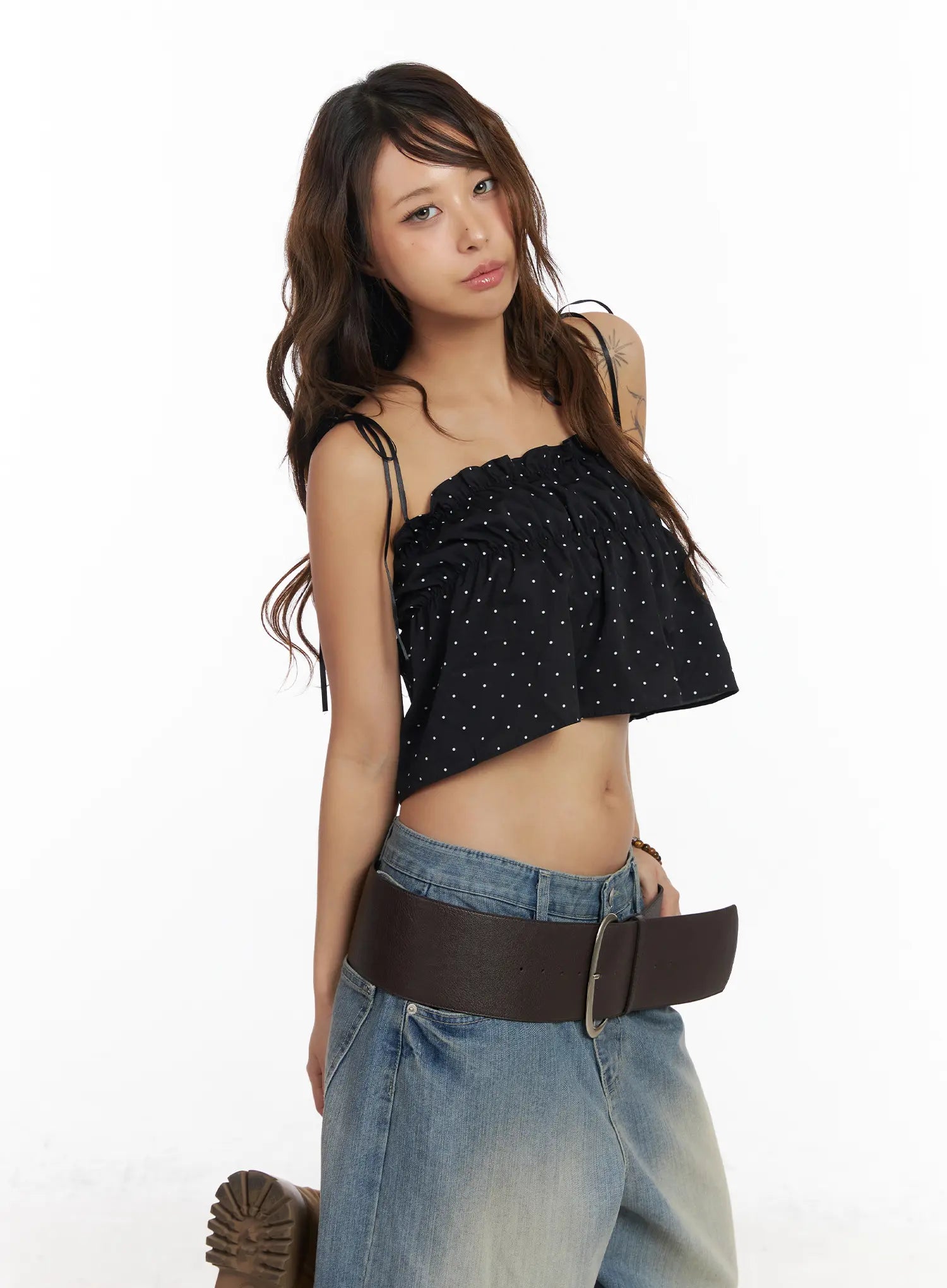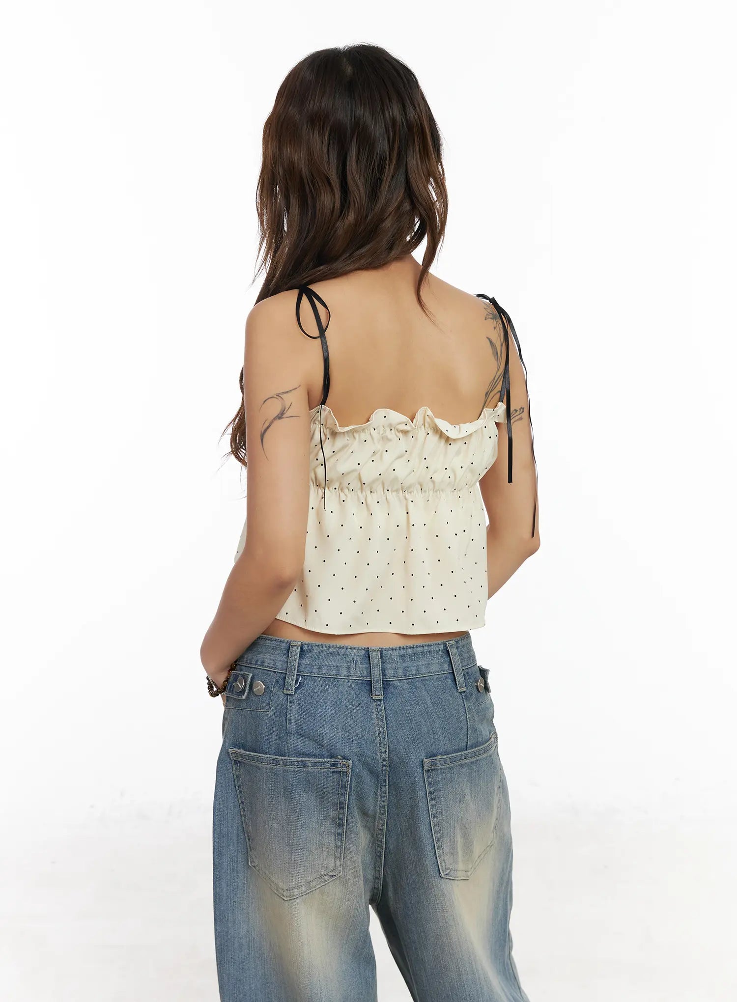 Polka Dot Shirred Ribbon Tie Cami Top CM520