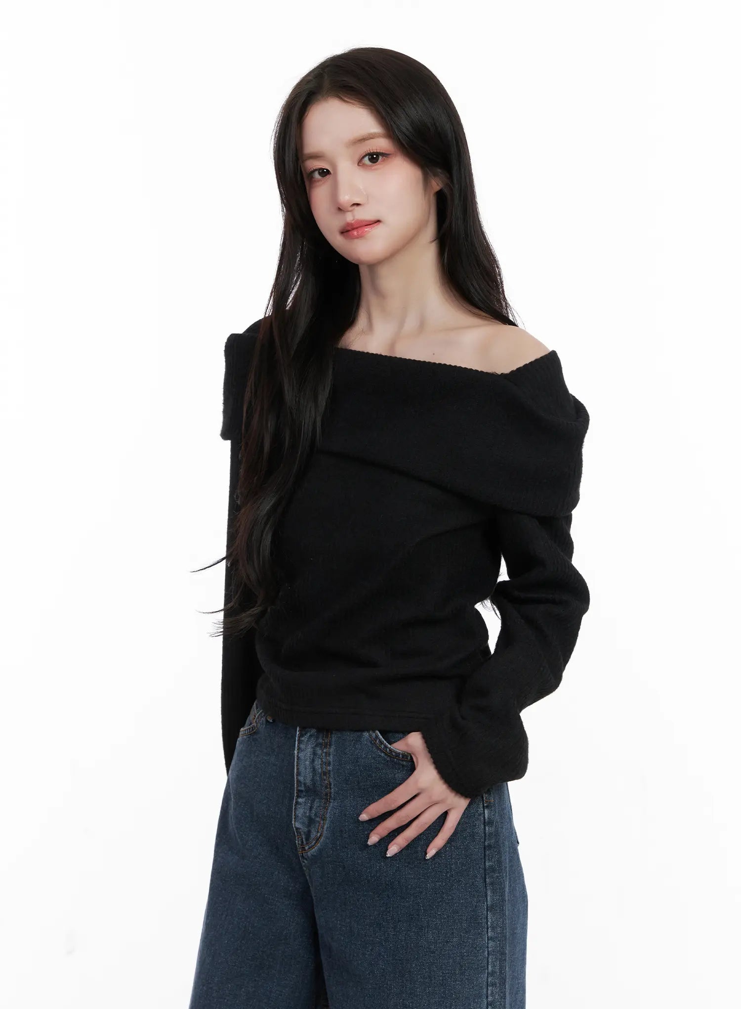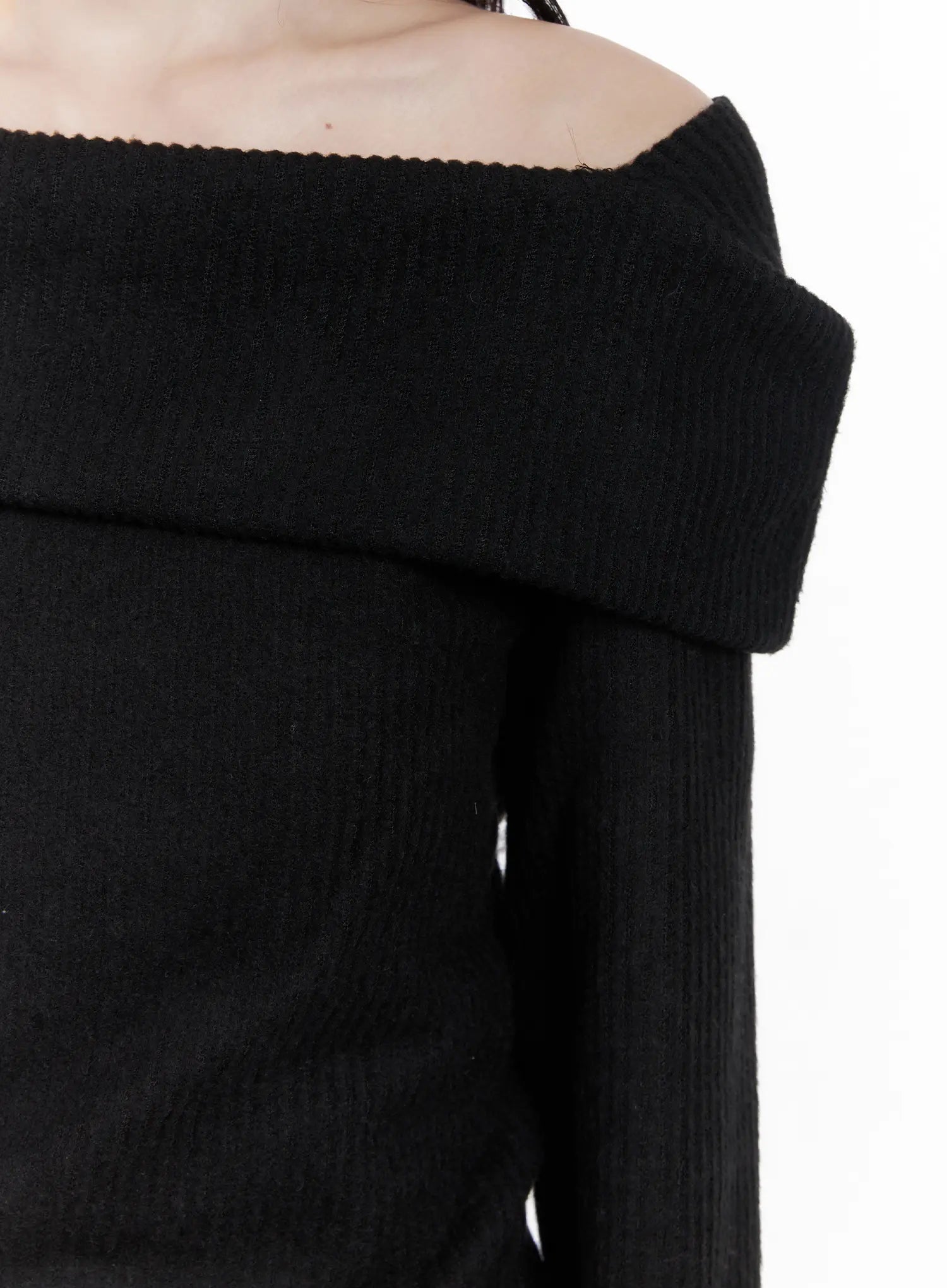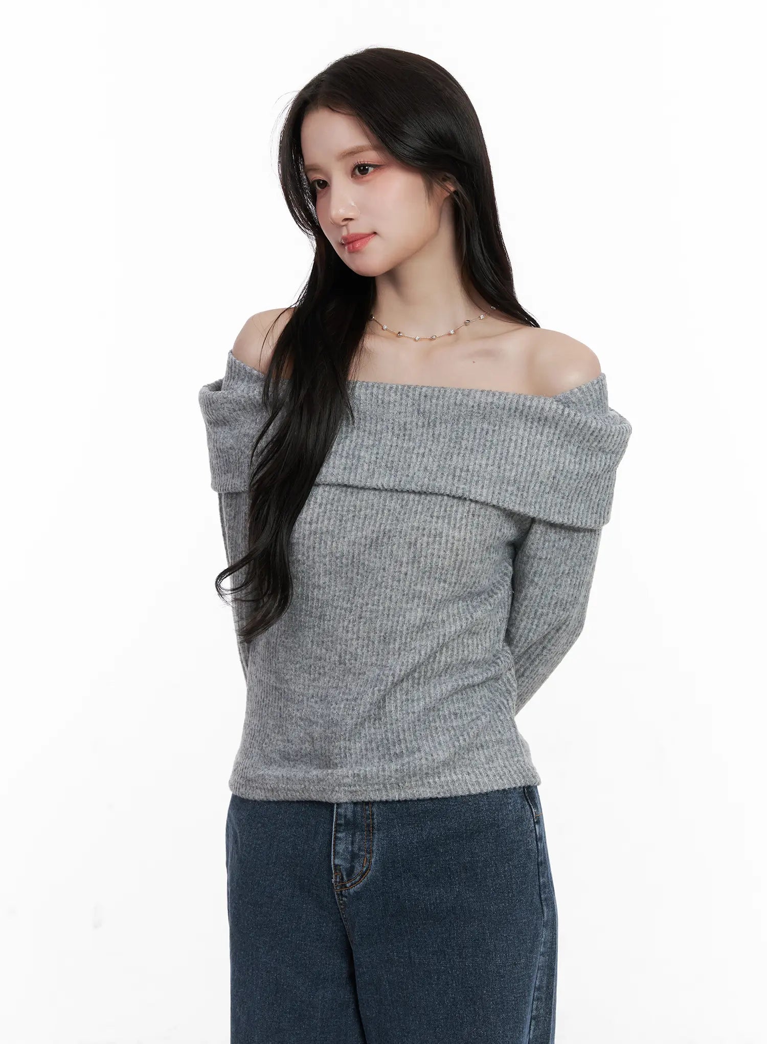 Ribbed Off-Shoulder Long Sleeve Top CN527