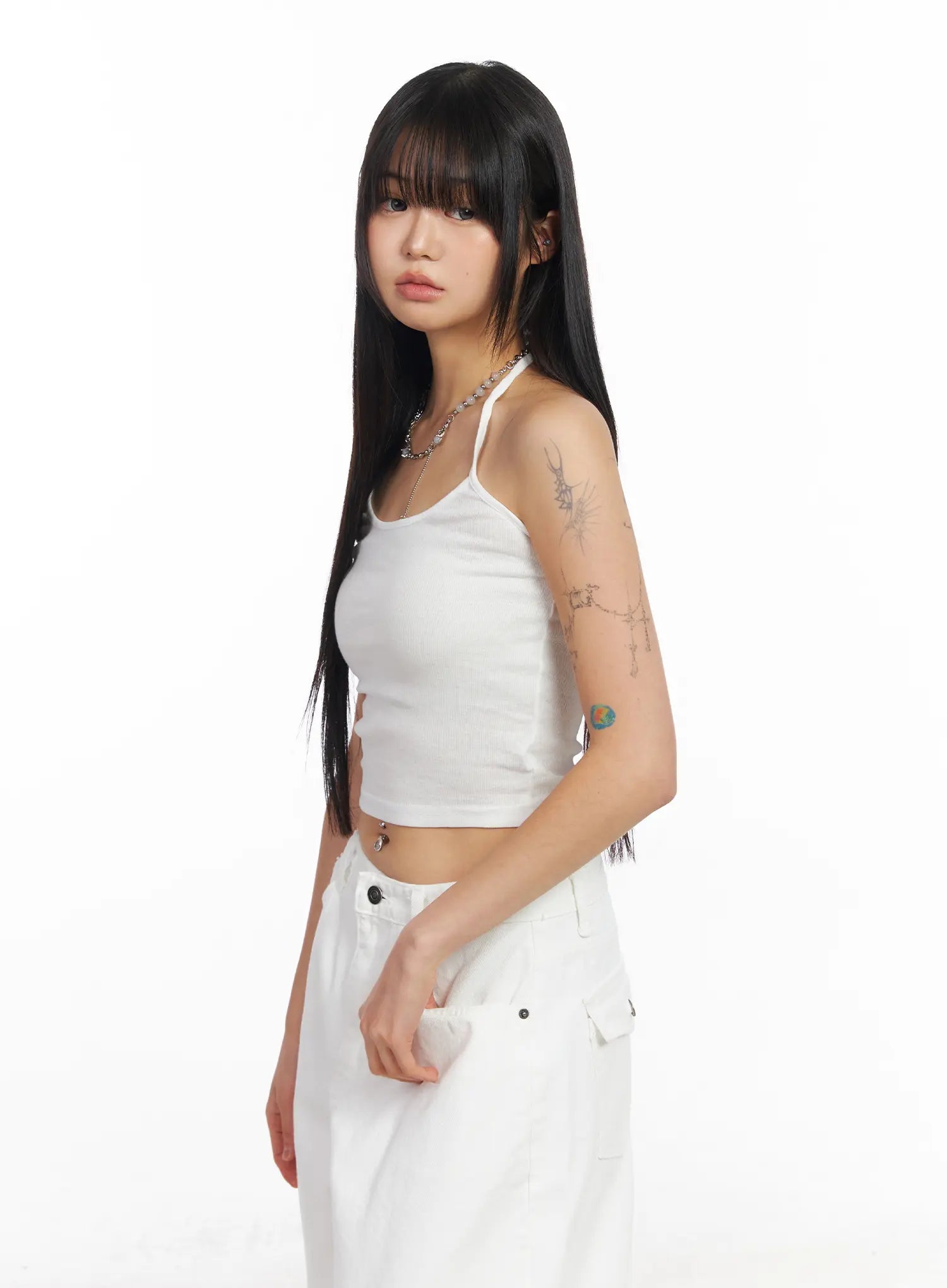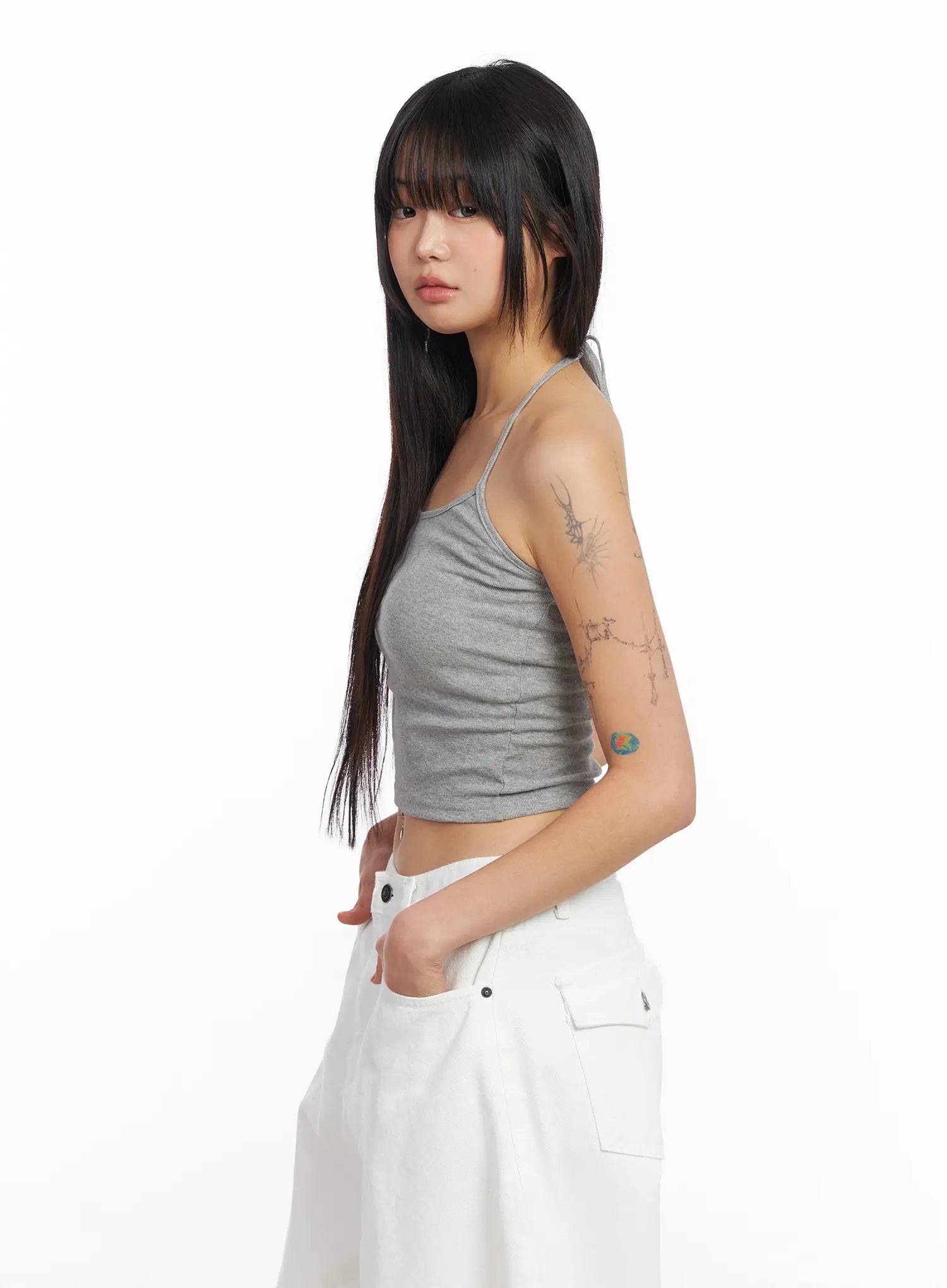Ribbed Tie Halter Neck Top CF504