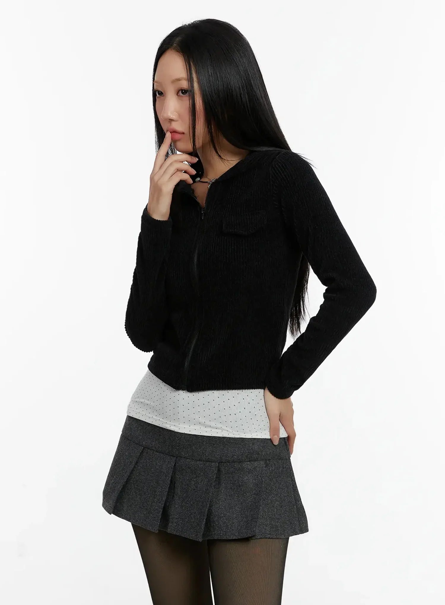 Ribbed Zip-Up Hoodie ID525