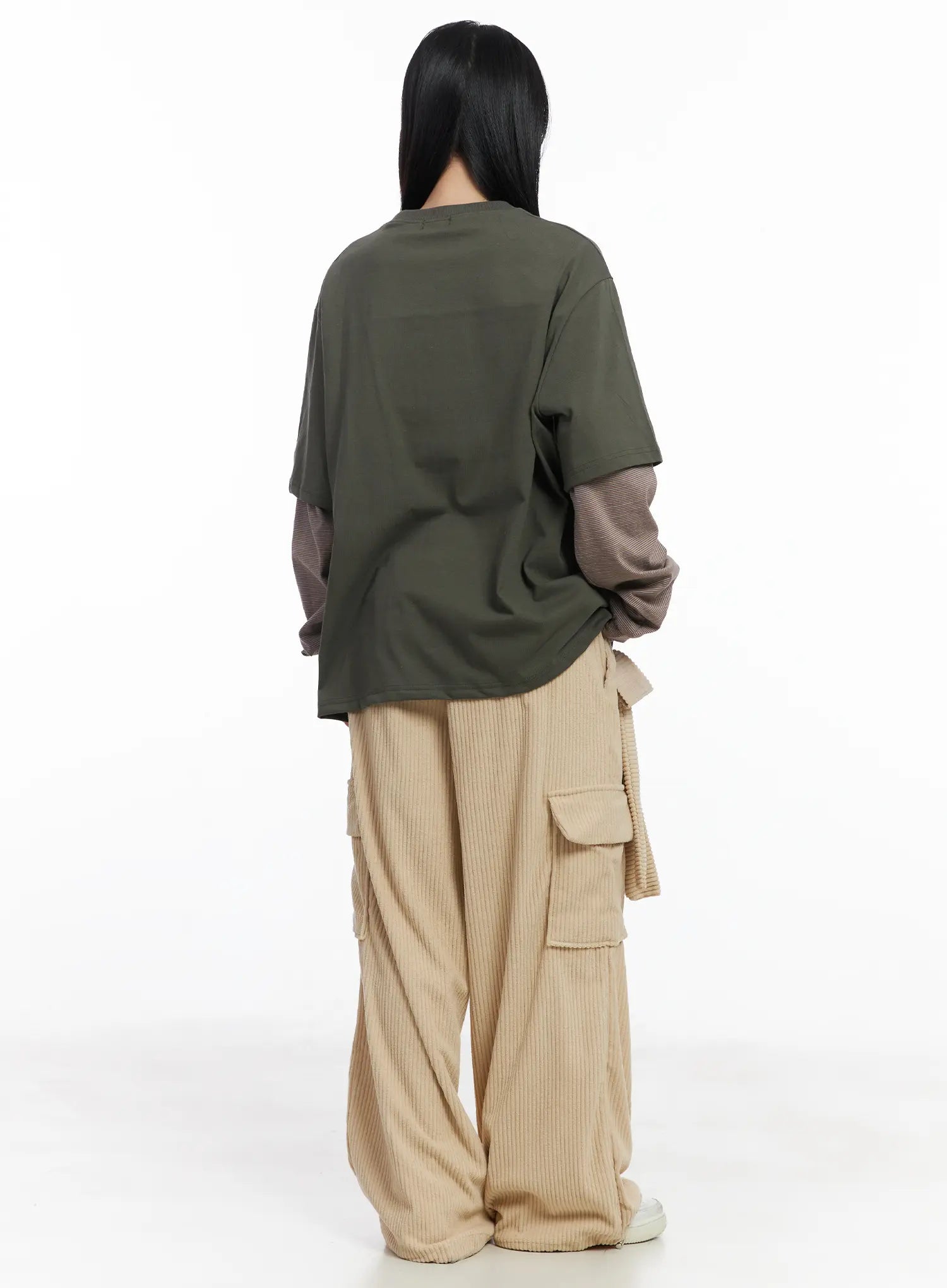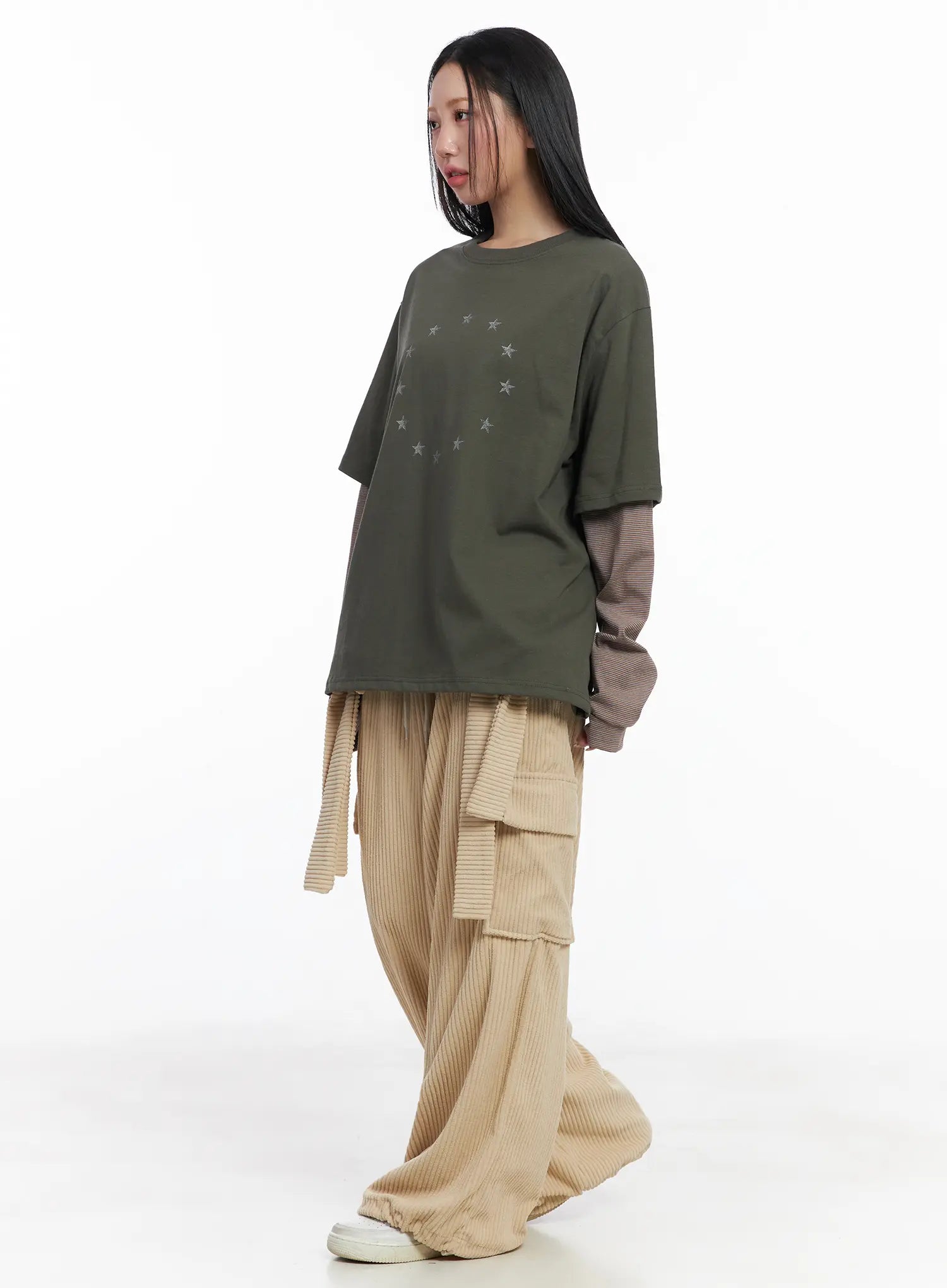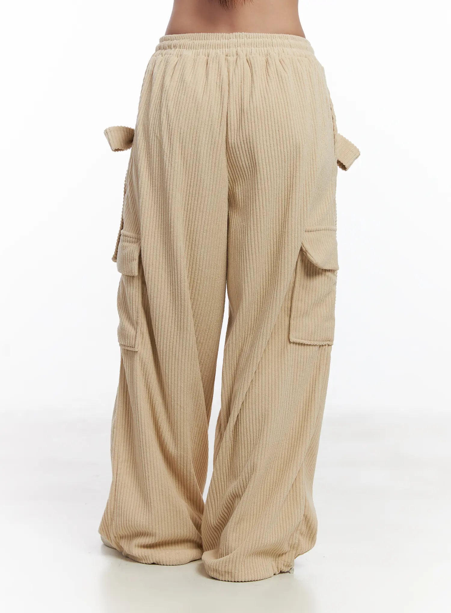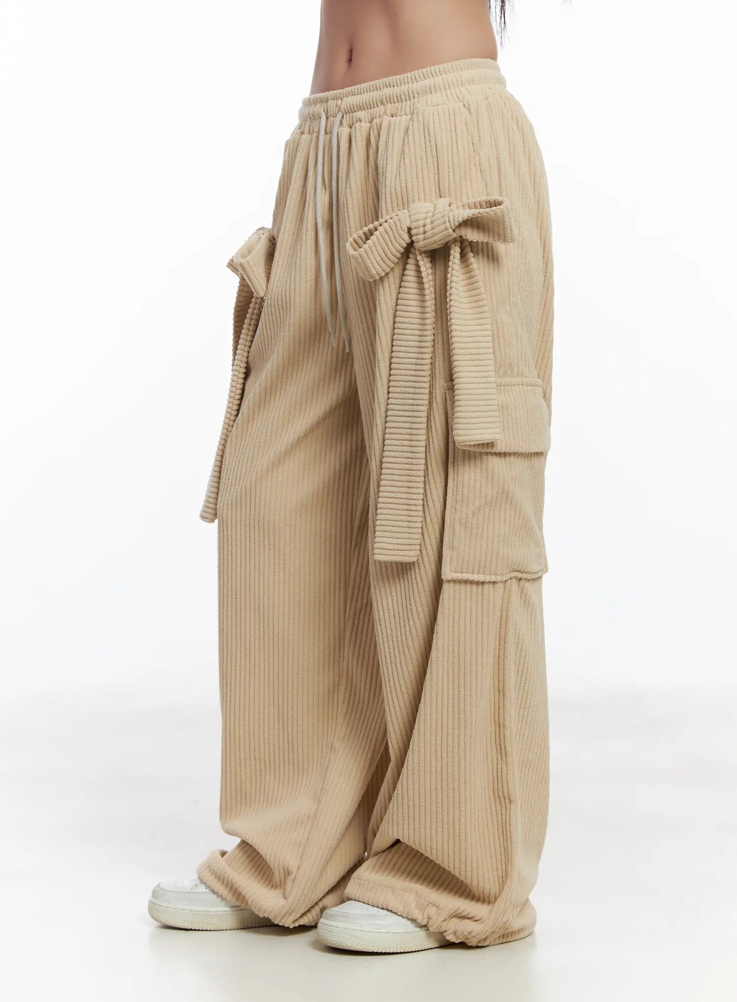 Ribbon Corduroy Wide-Leg Pants CJ514