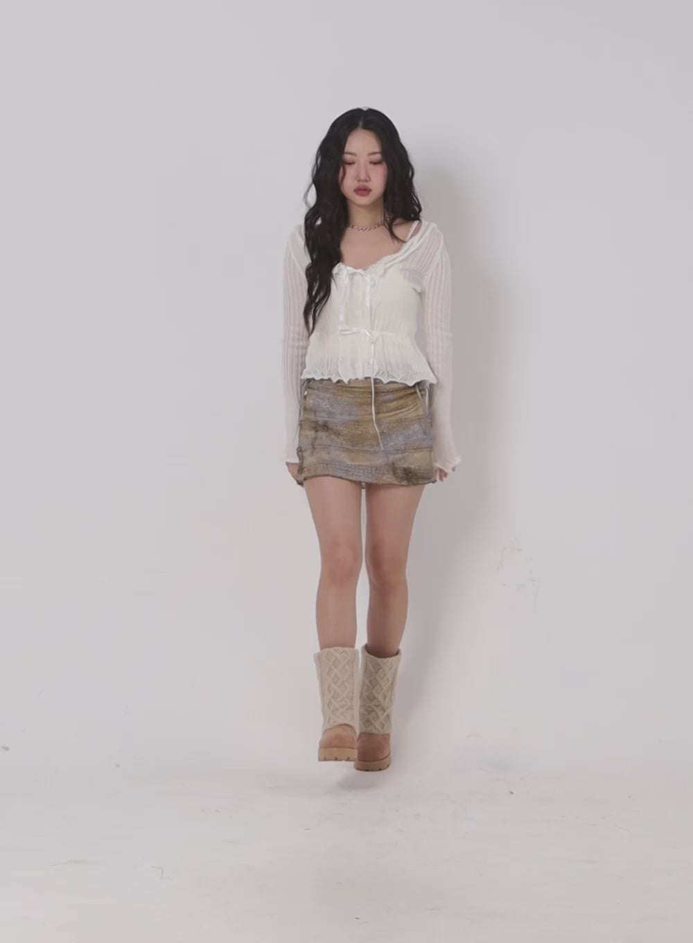 Model is wearing size S/M and the color Light beige.