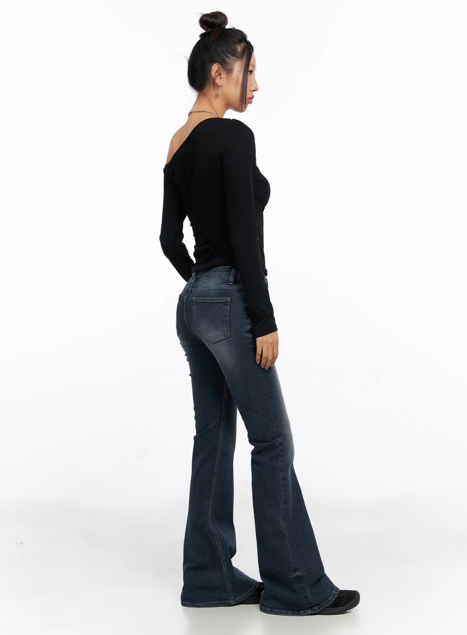 Ribbon One-Shoulder Long Sleeve Top CO514