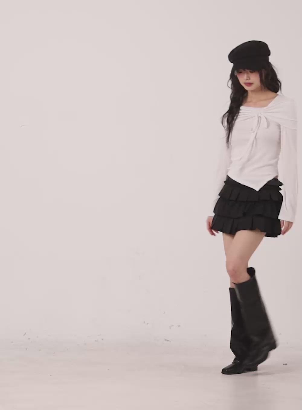 Ribbon Wrapped Asymmetric Long-Sleeve Top CJ523
