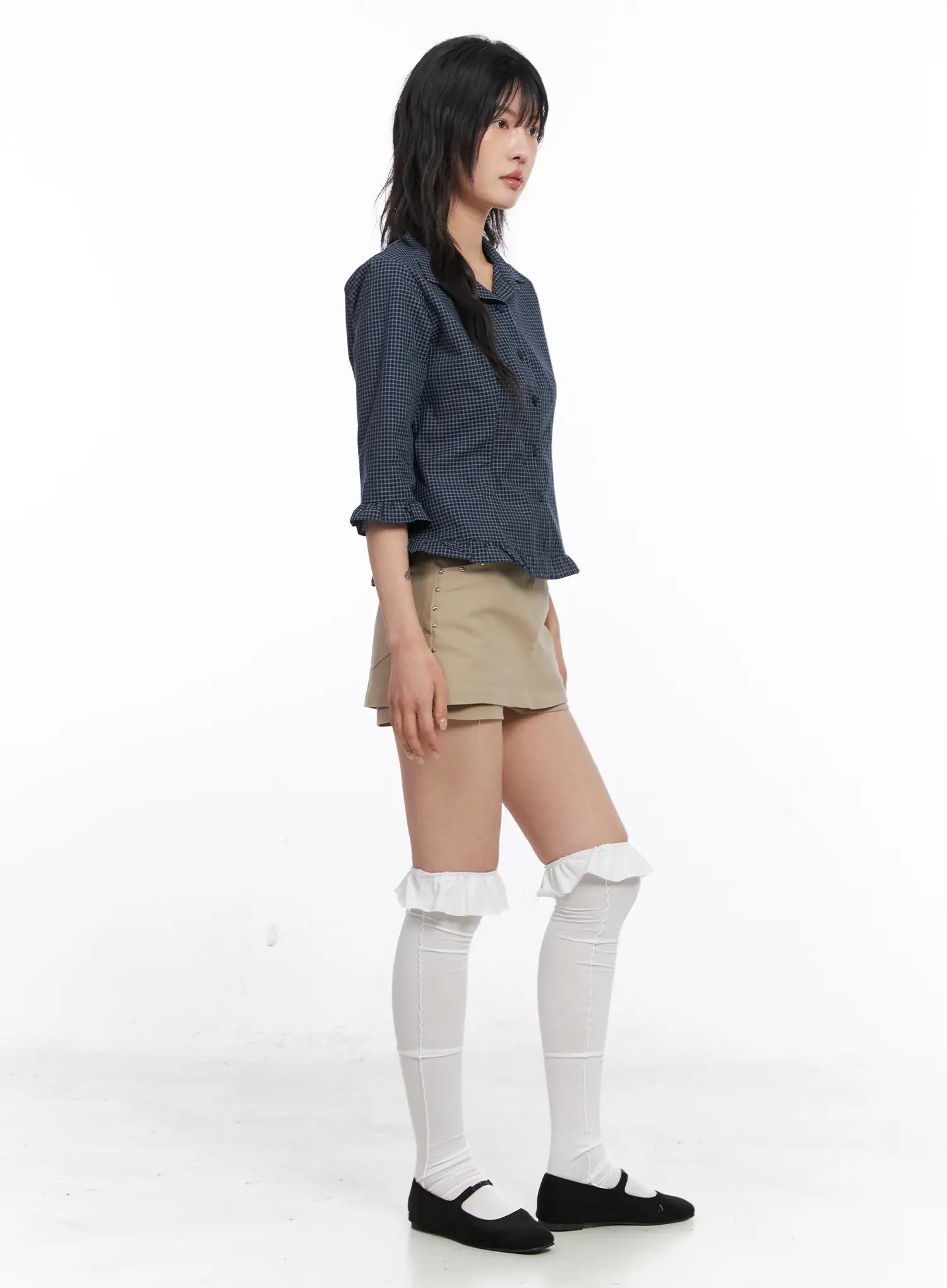 Ruffled Gingham 3/4 Shirt CO507