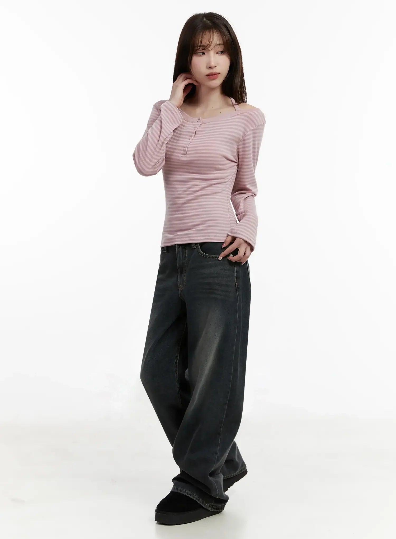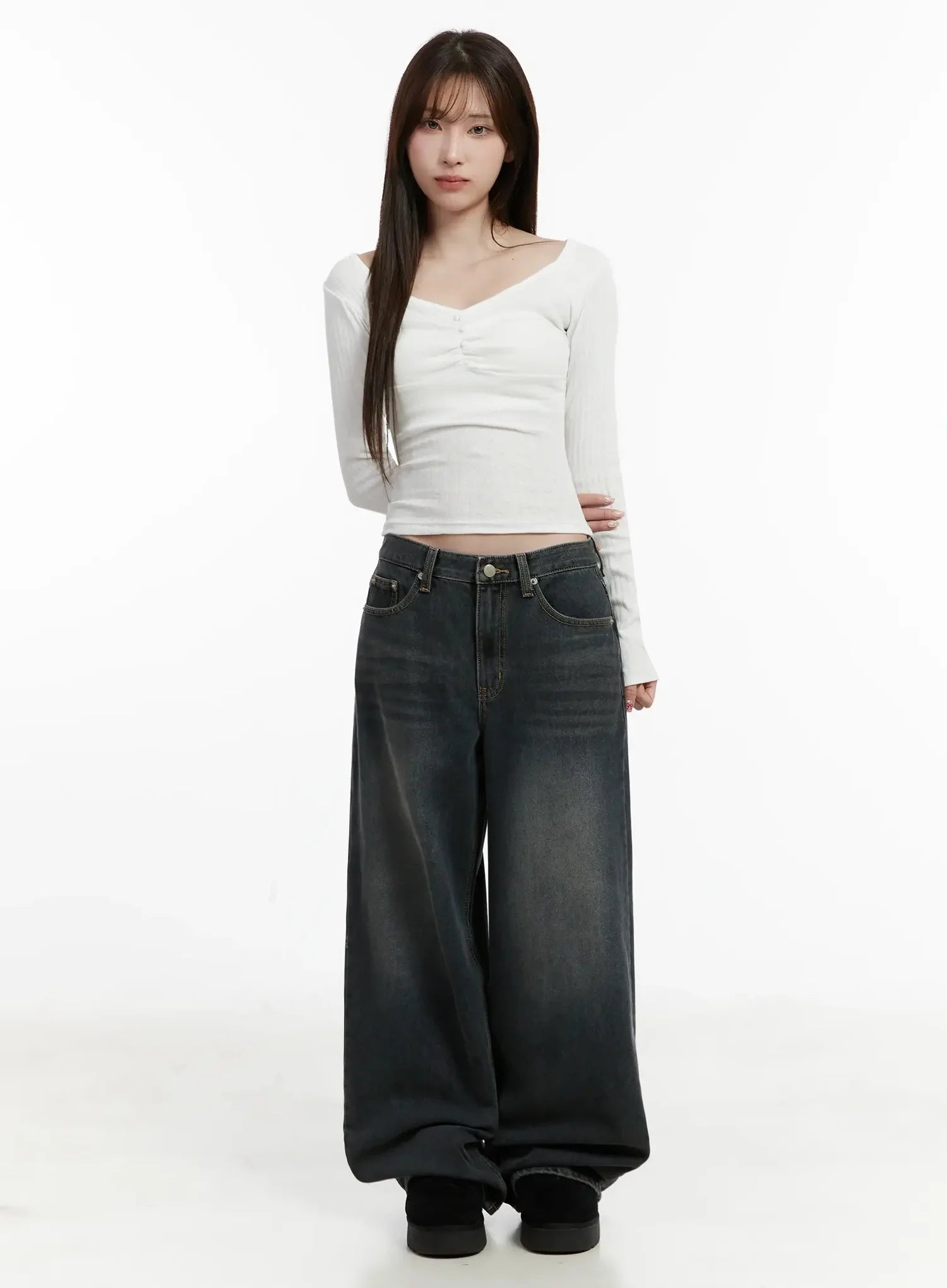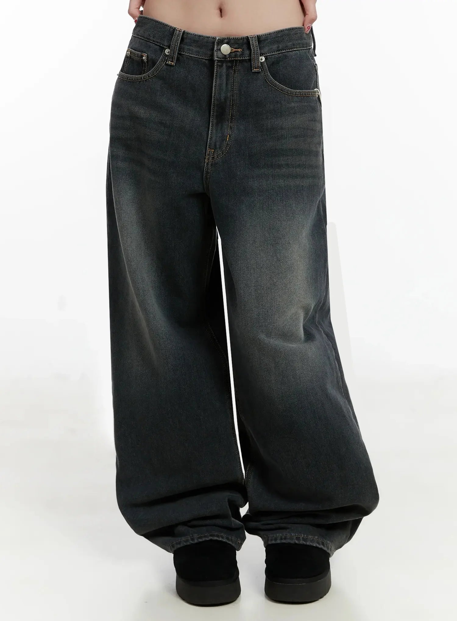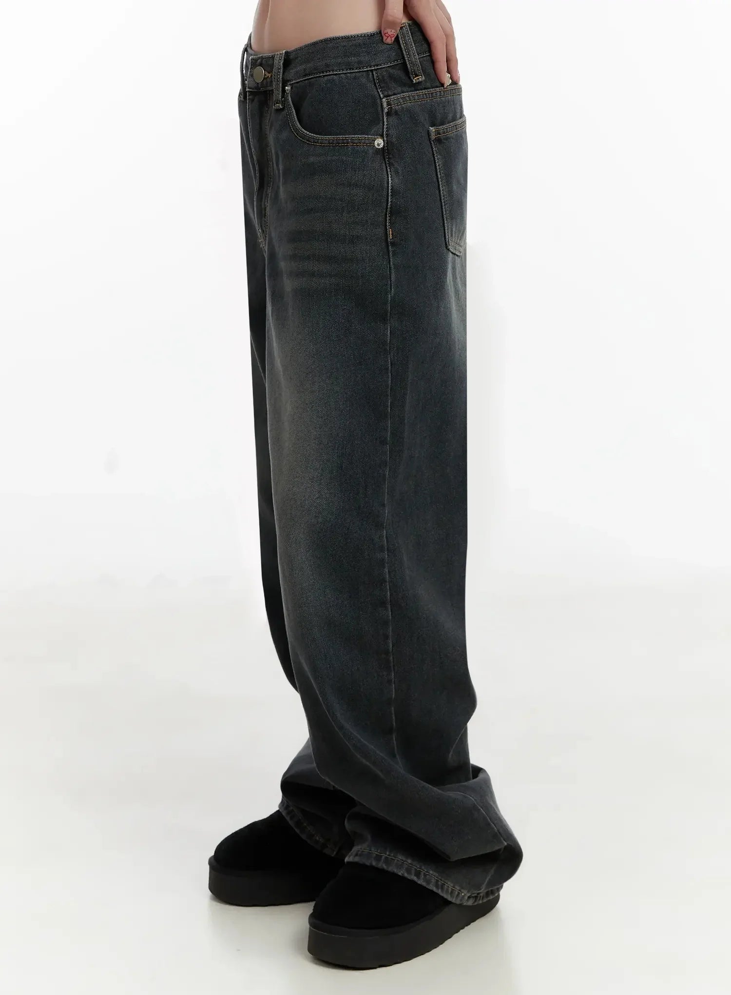 Saige Fleece-Lined Wide Leg Jeans IJ521