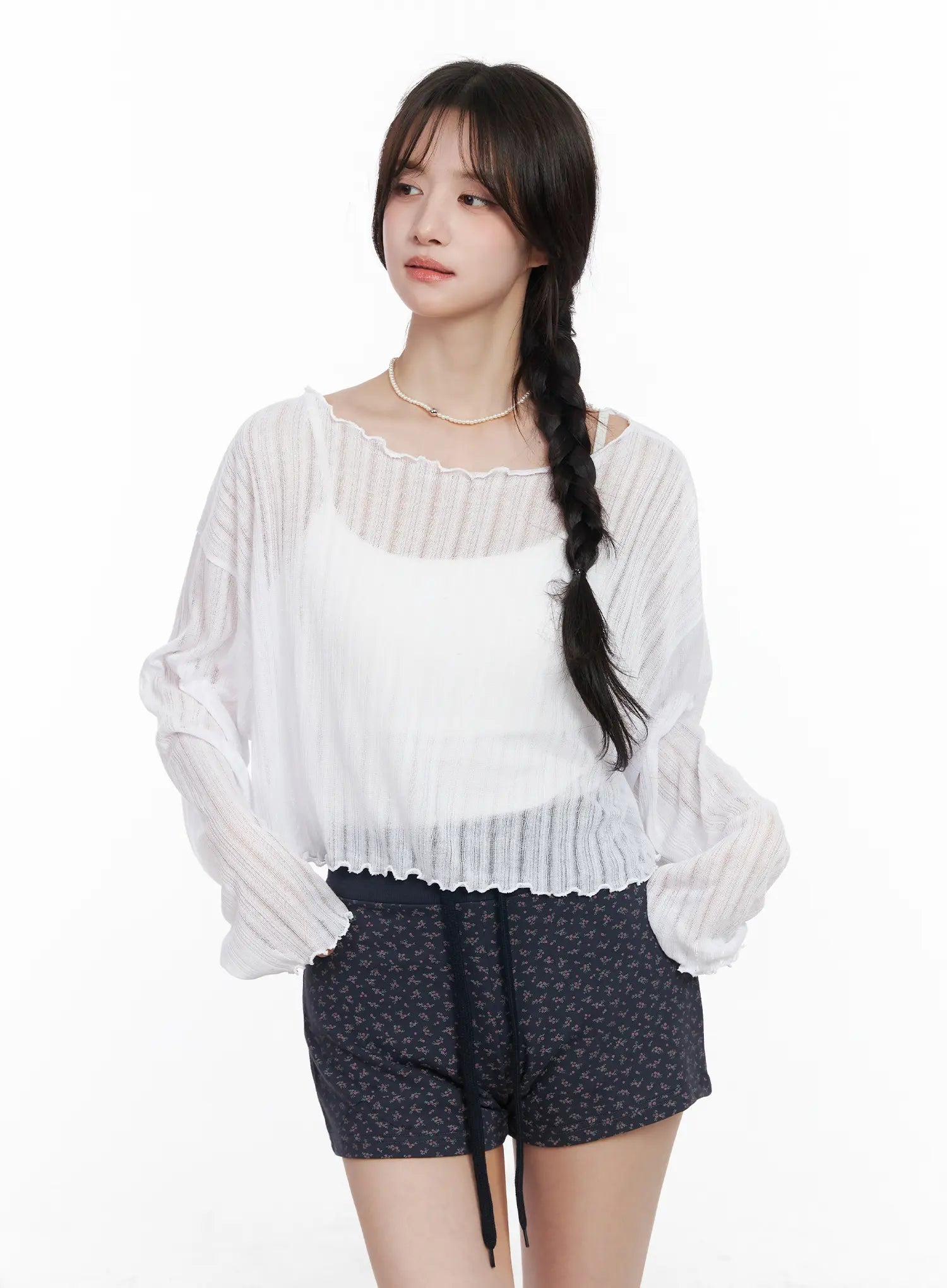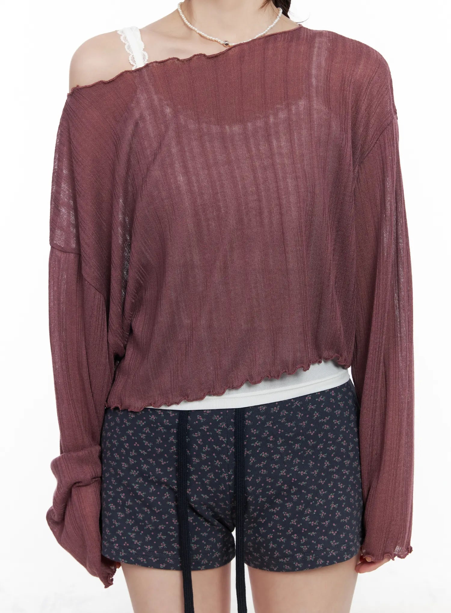 Sheer Off-Shoulder Long Sleeve Top CM527
