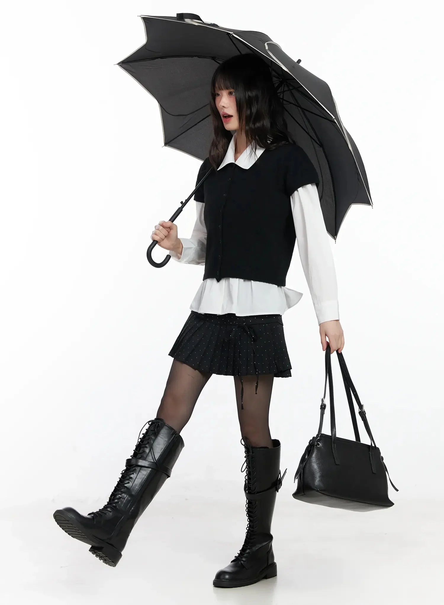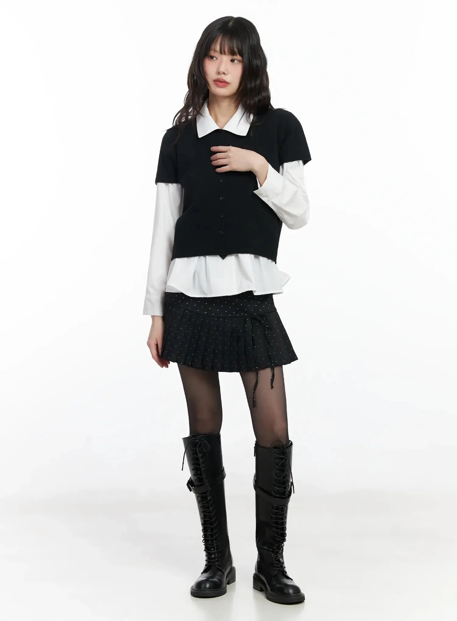 Model is wearing size S/M and the color Black.