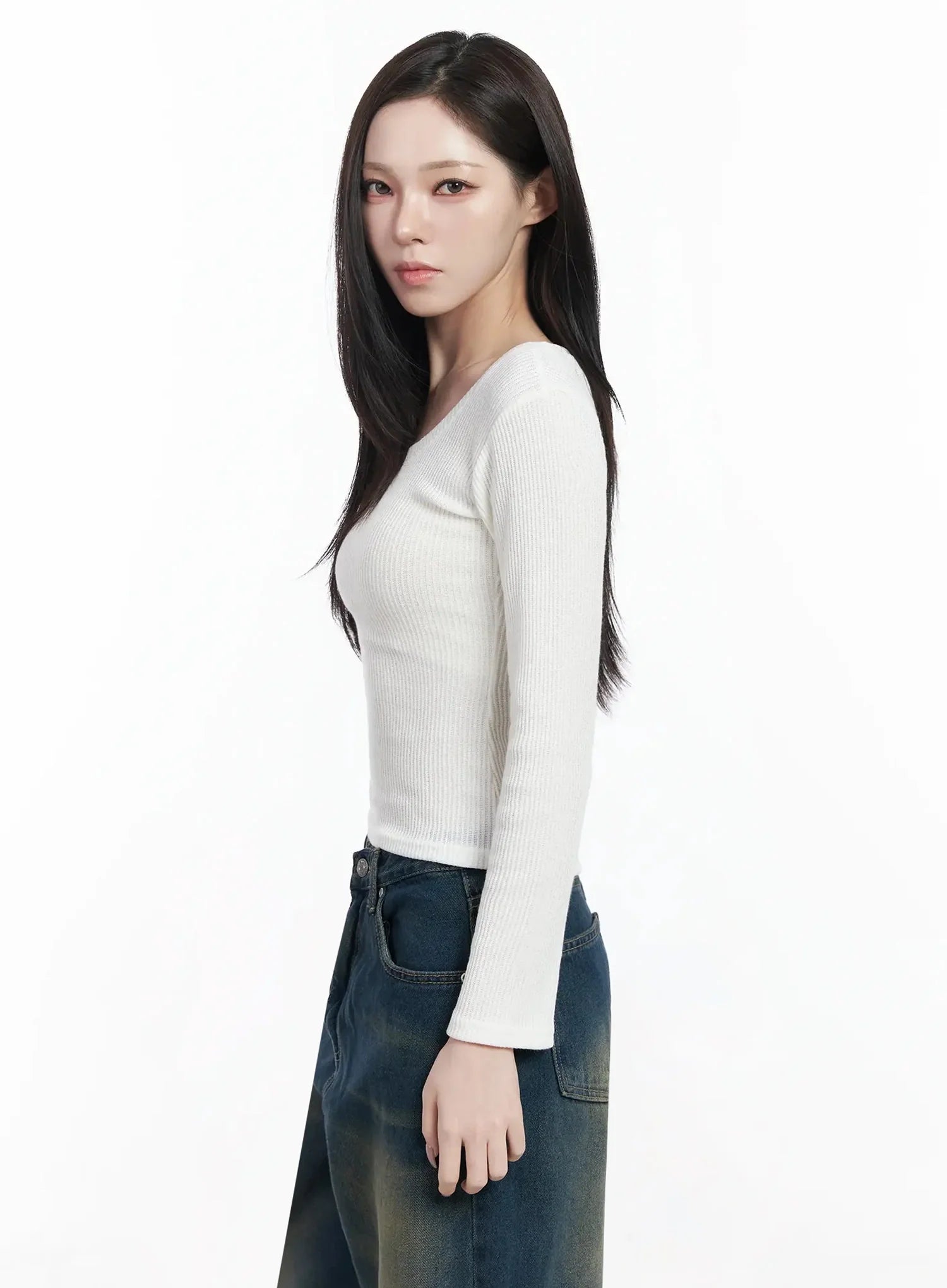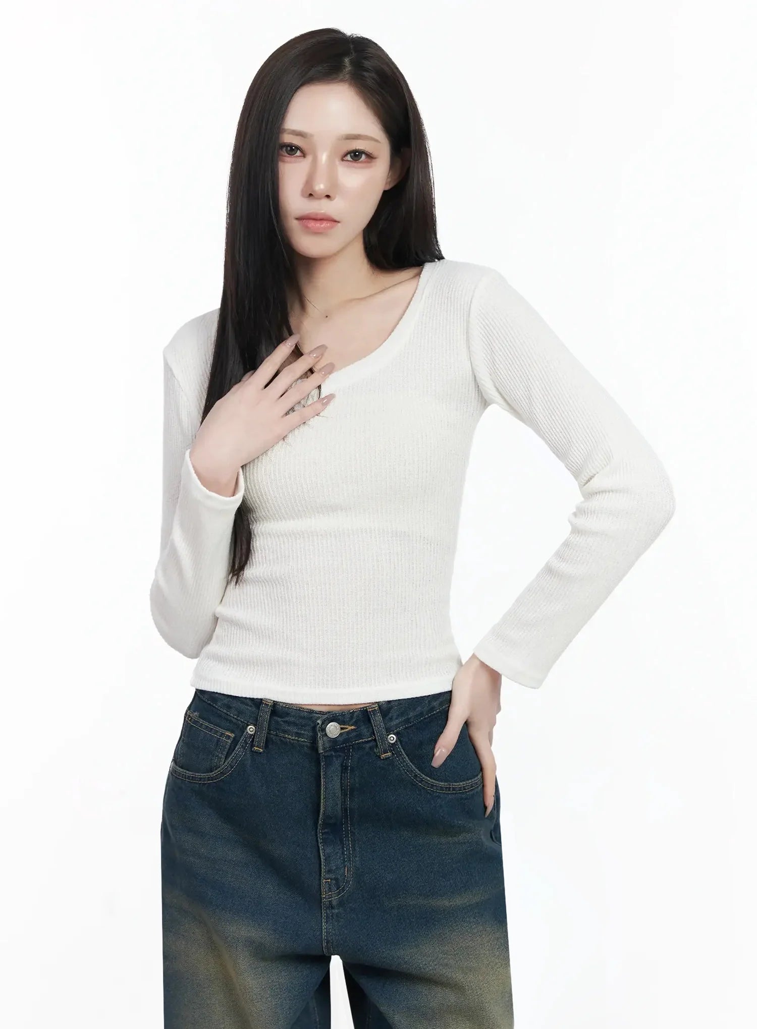 Simple Ribbed Round Neck Top IF502
