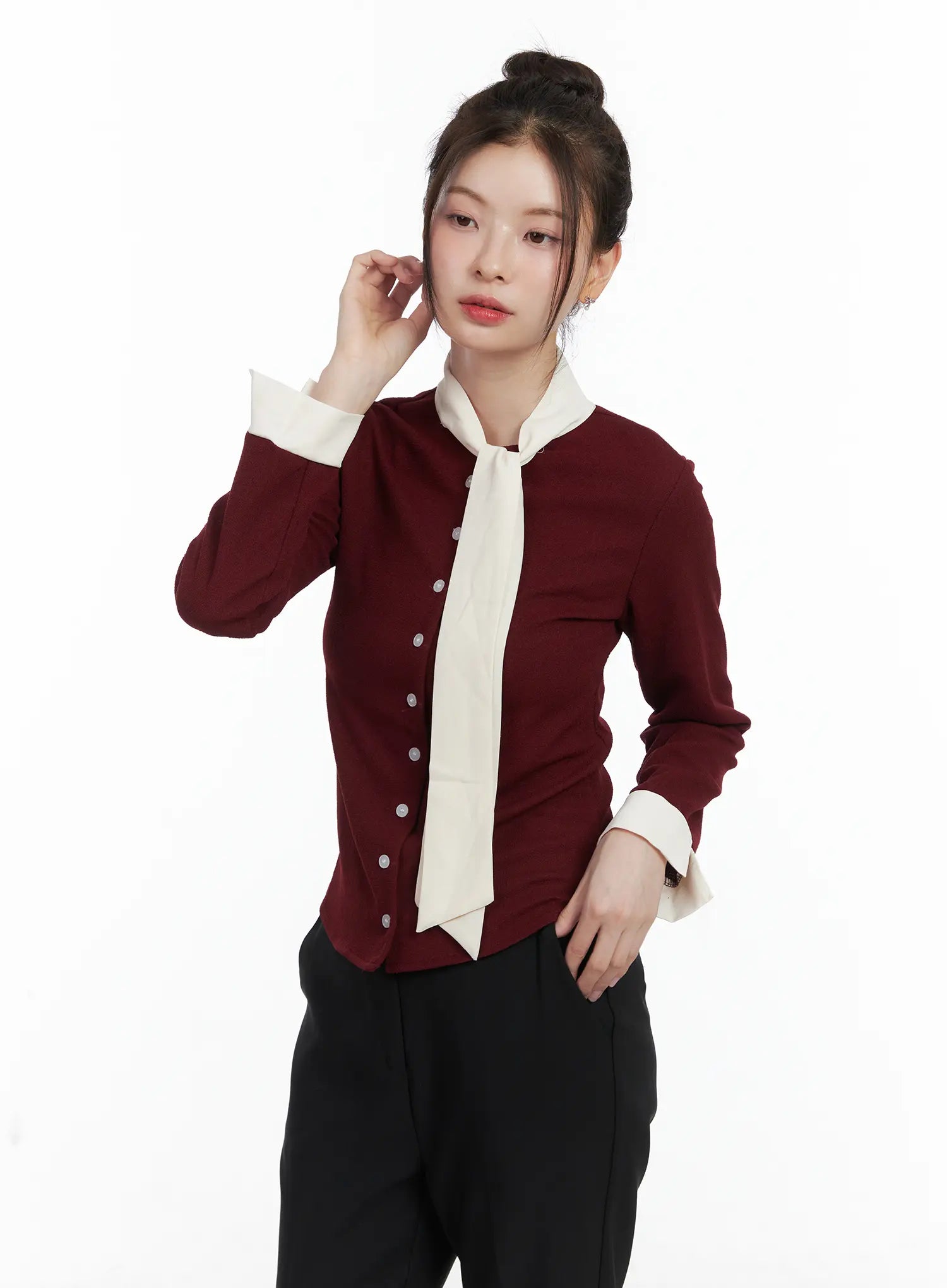 Slim-Fit Long Sleeve Scarf Blouse CN519