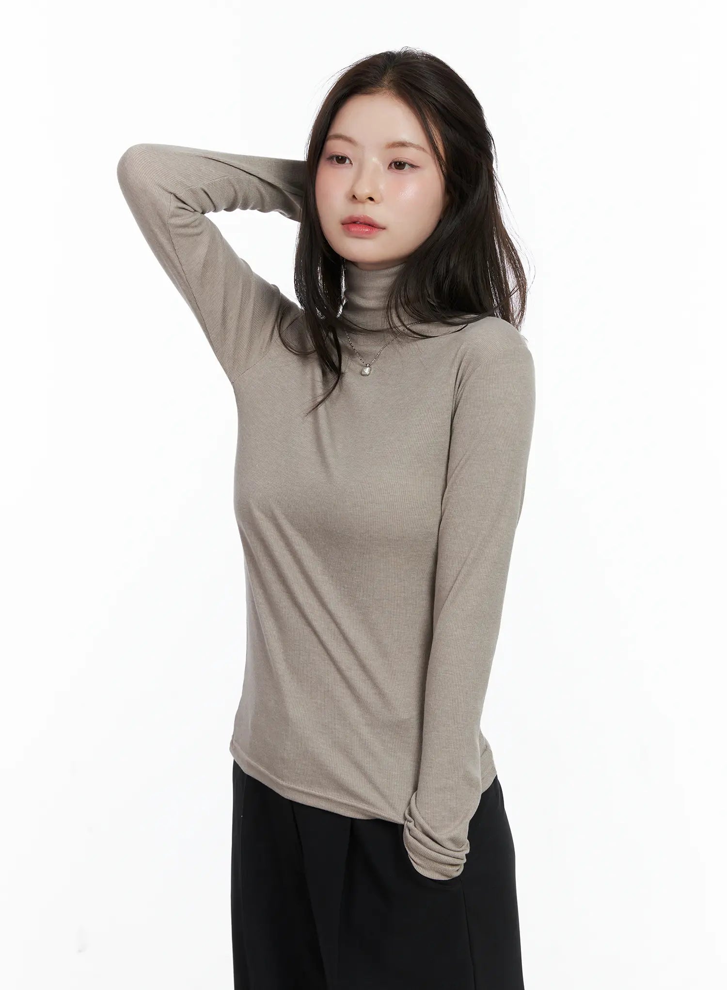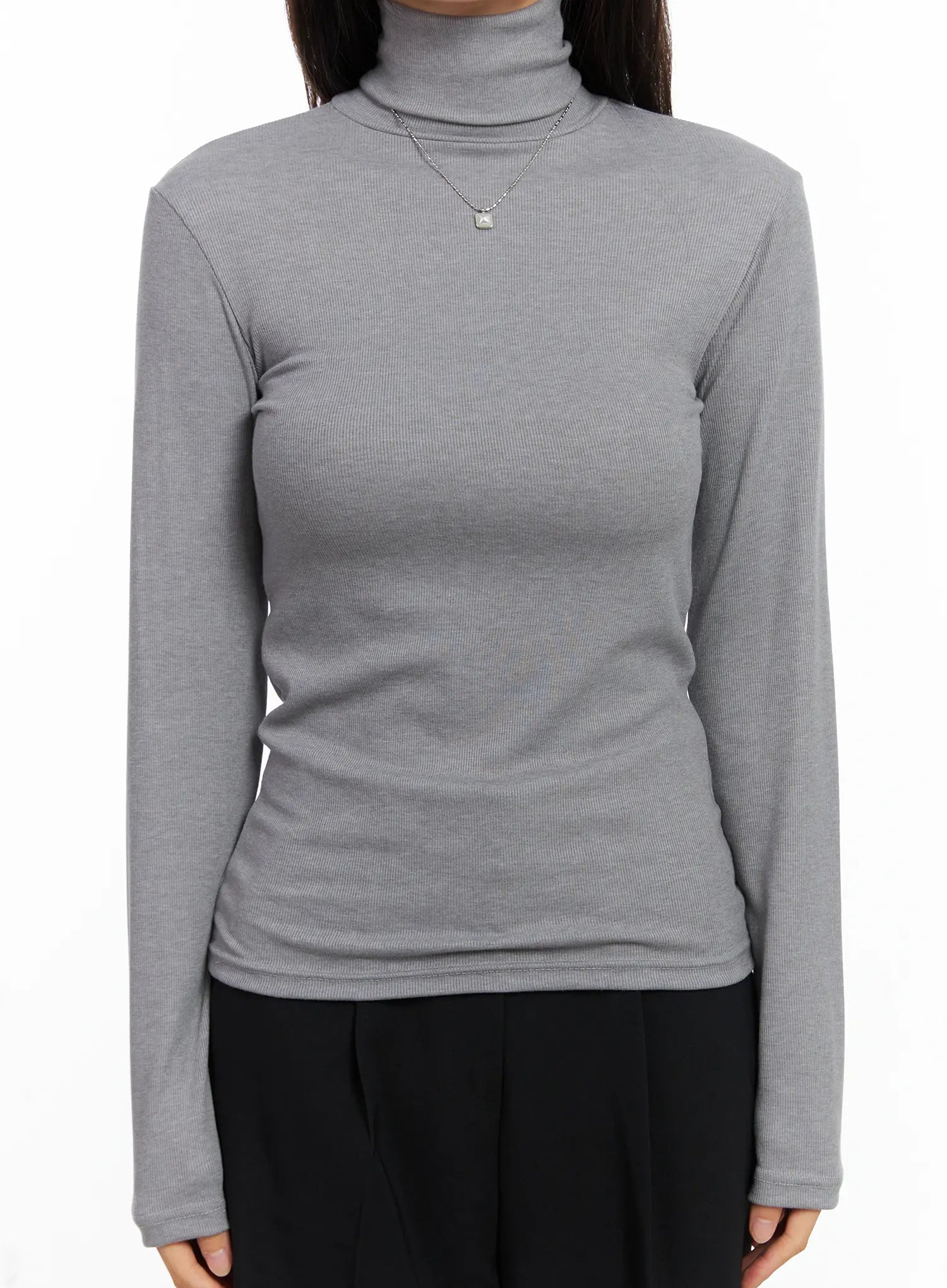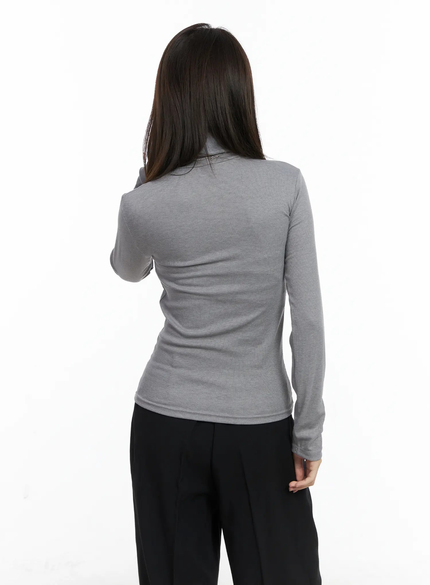 Slim Fit Ribbed Turtleneck Long Sleeve Top CN518