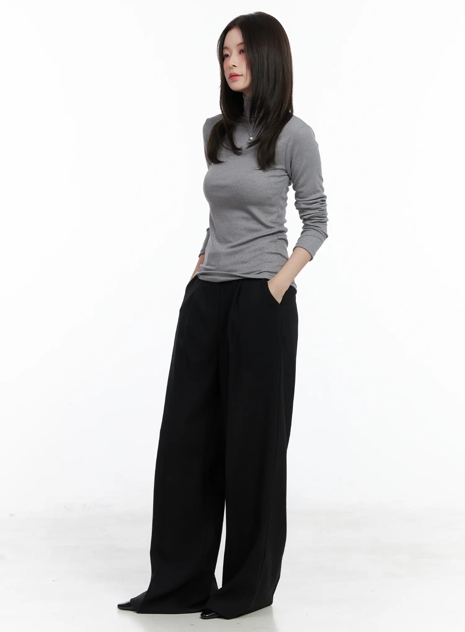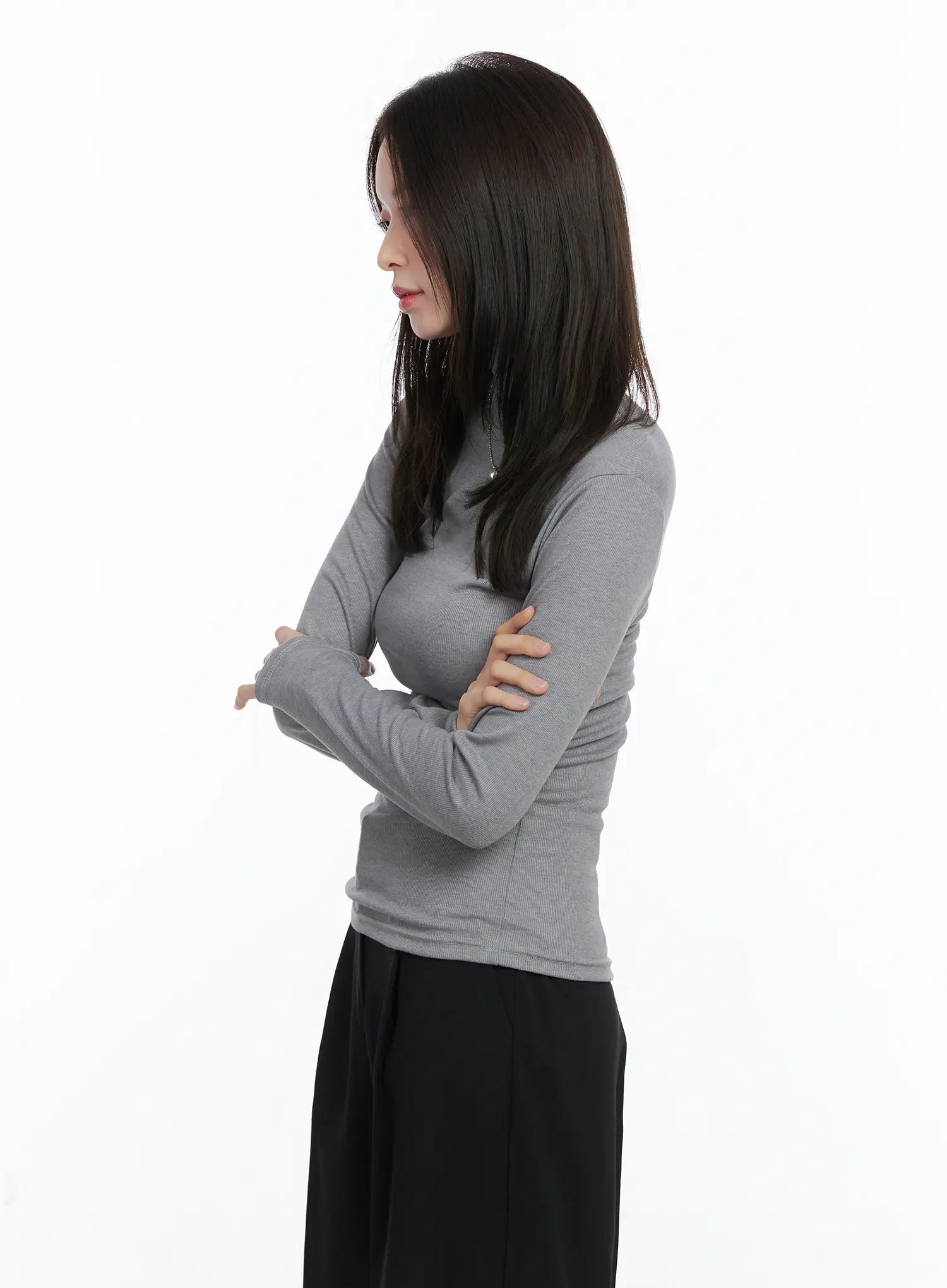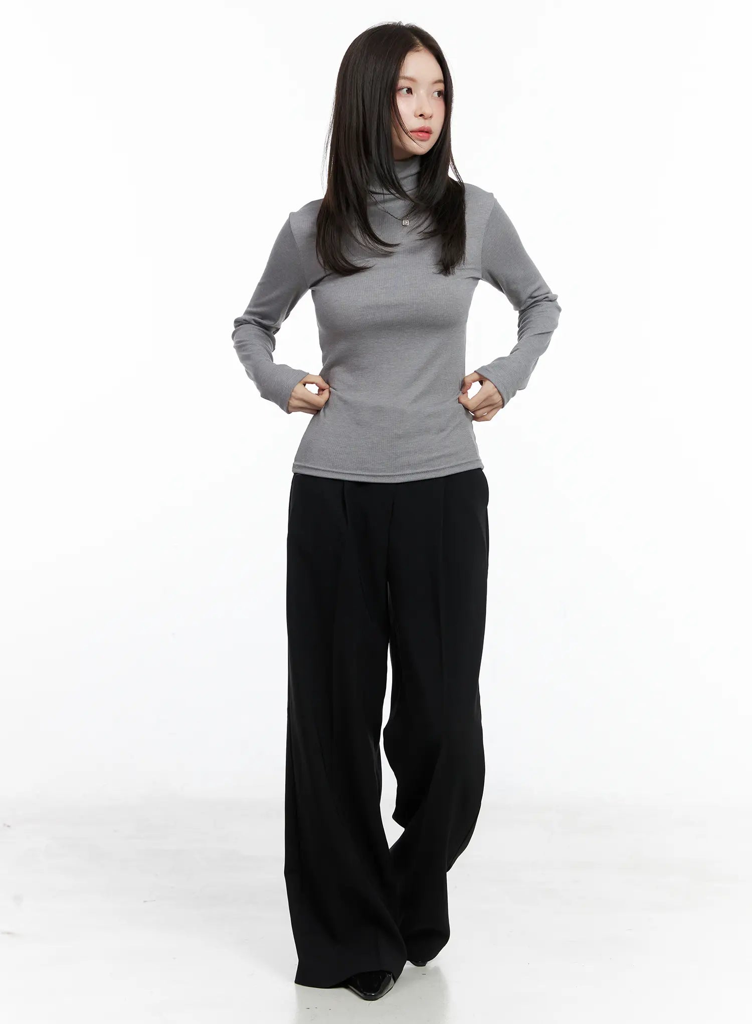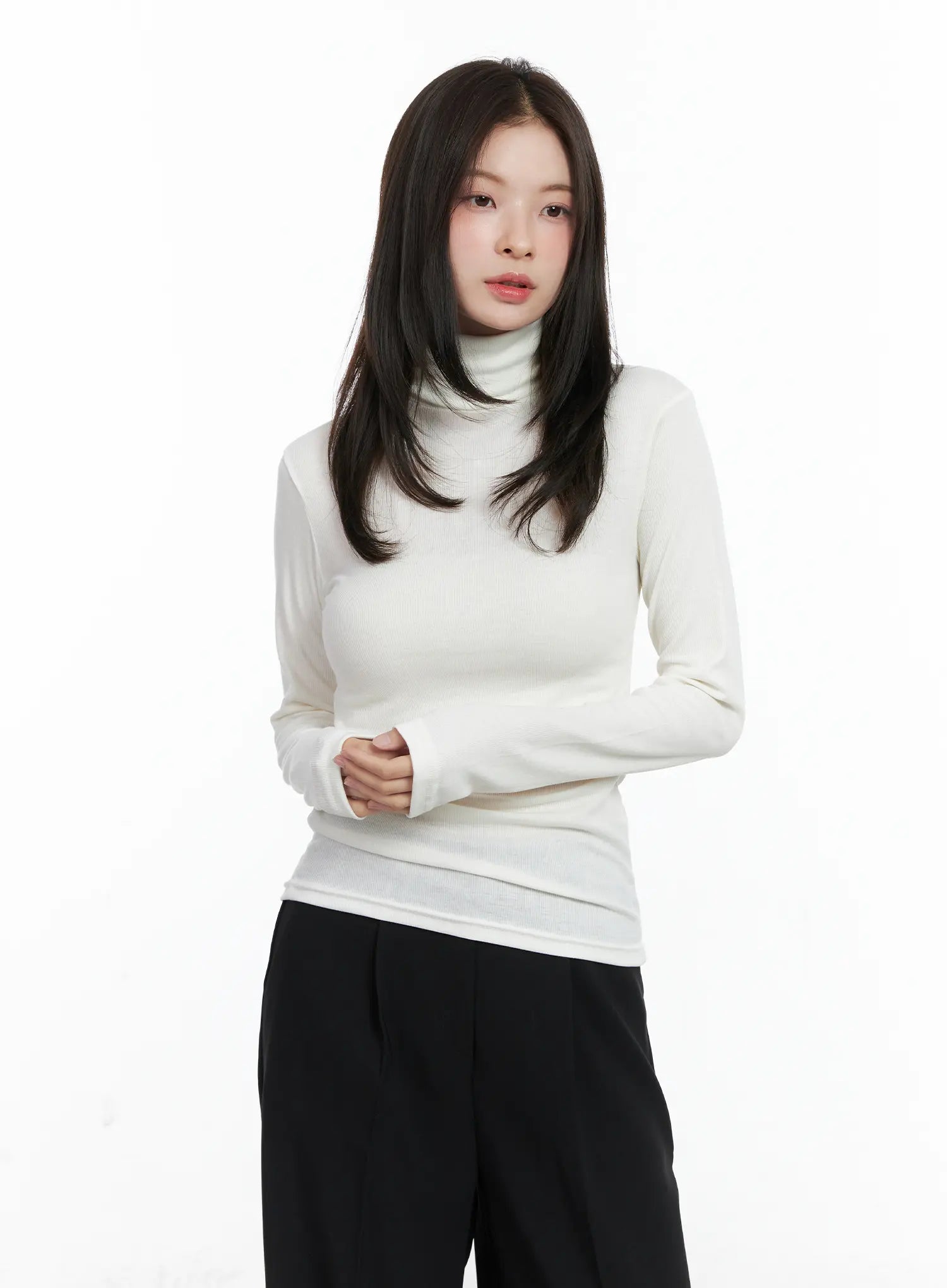 Slim Fit Ribbed Turtleneck Long Sleeve Top CN518