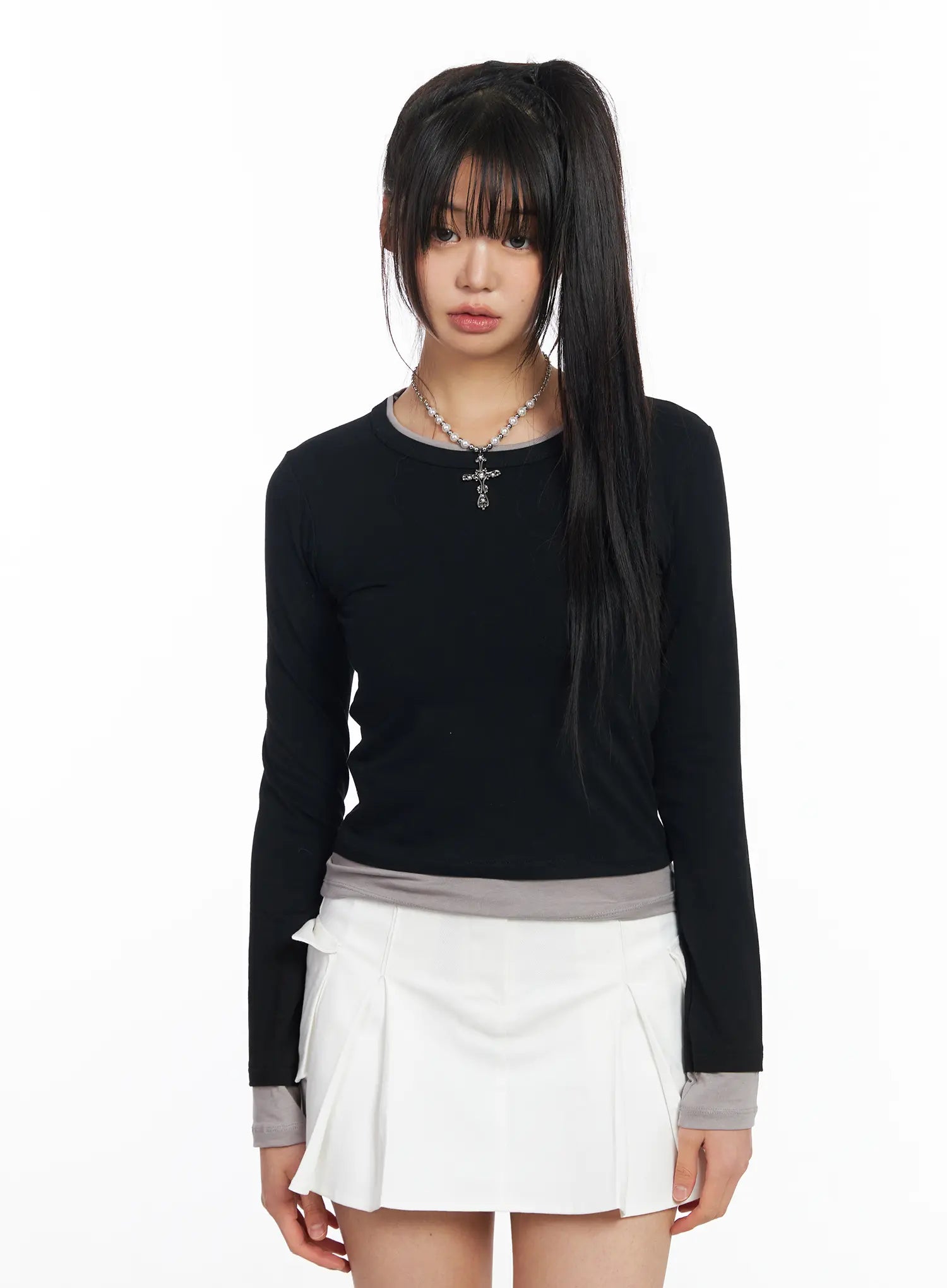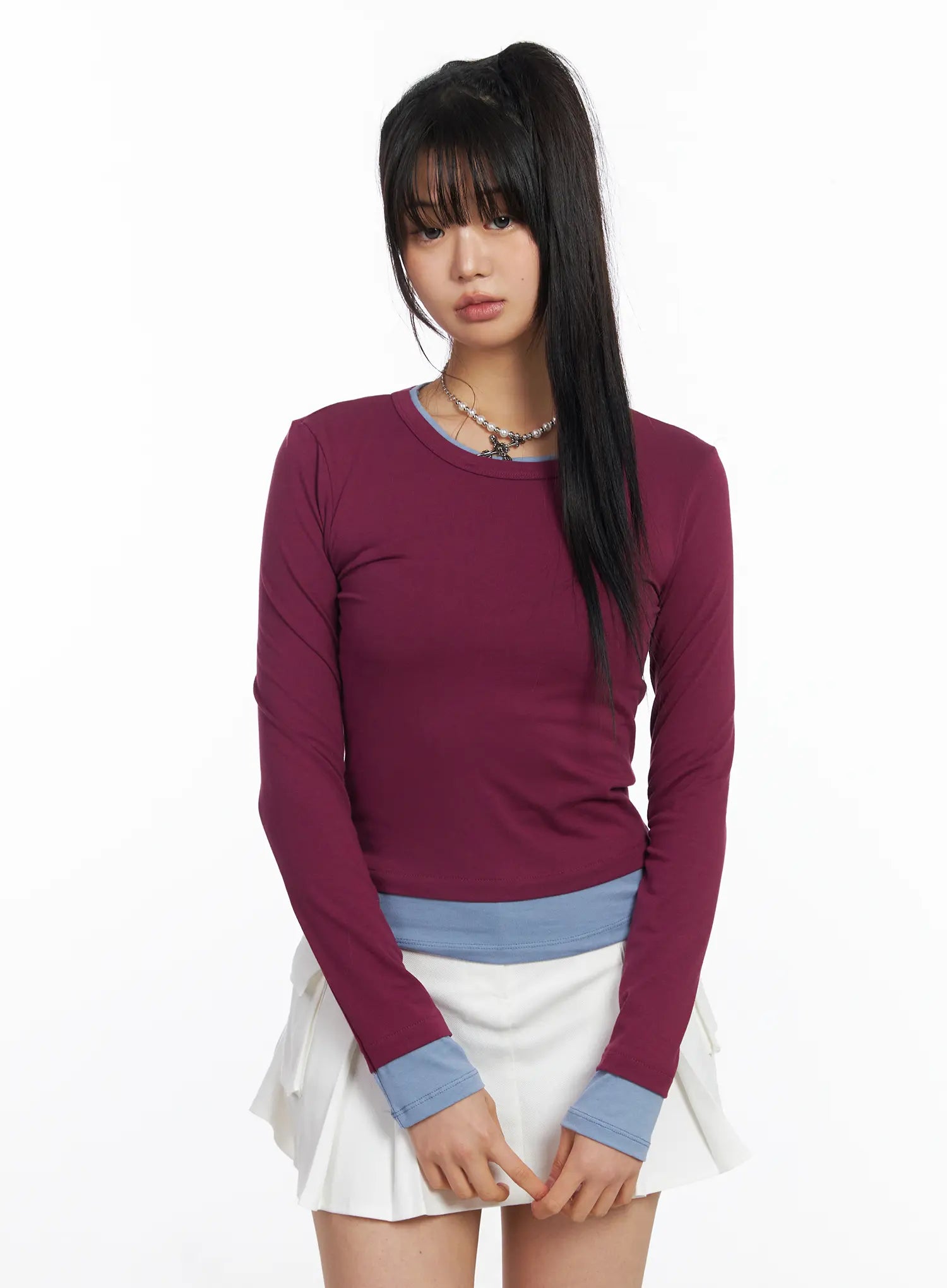 Slim-Fit Two-Tone Long Sleeve Top CF506